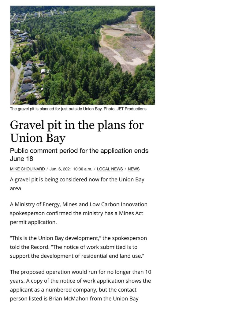 Thanks to Mike Chouinard for covering dysfunctional Union Bay https://www.comoxvalleyrecord.com/news/gravel-pit-in-the-plans-for-union-bay/