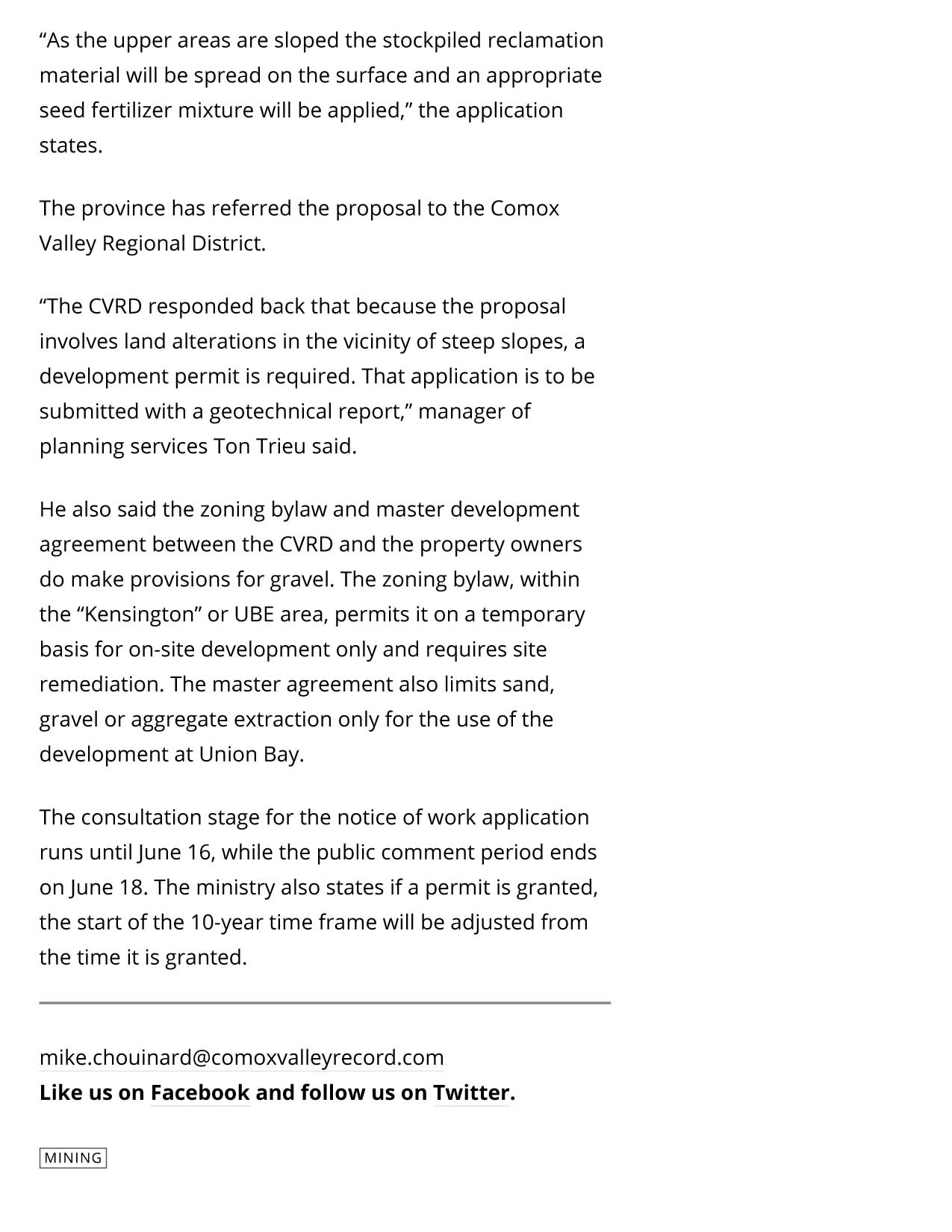 Thanks to Mike Chouinard for covering dysfunctional Union Bay https://www.comoxvalleyrecord.com/news/gravel-pit-in-the-plans-for-union-bay/