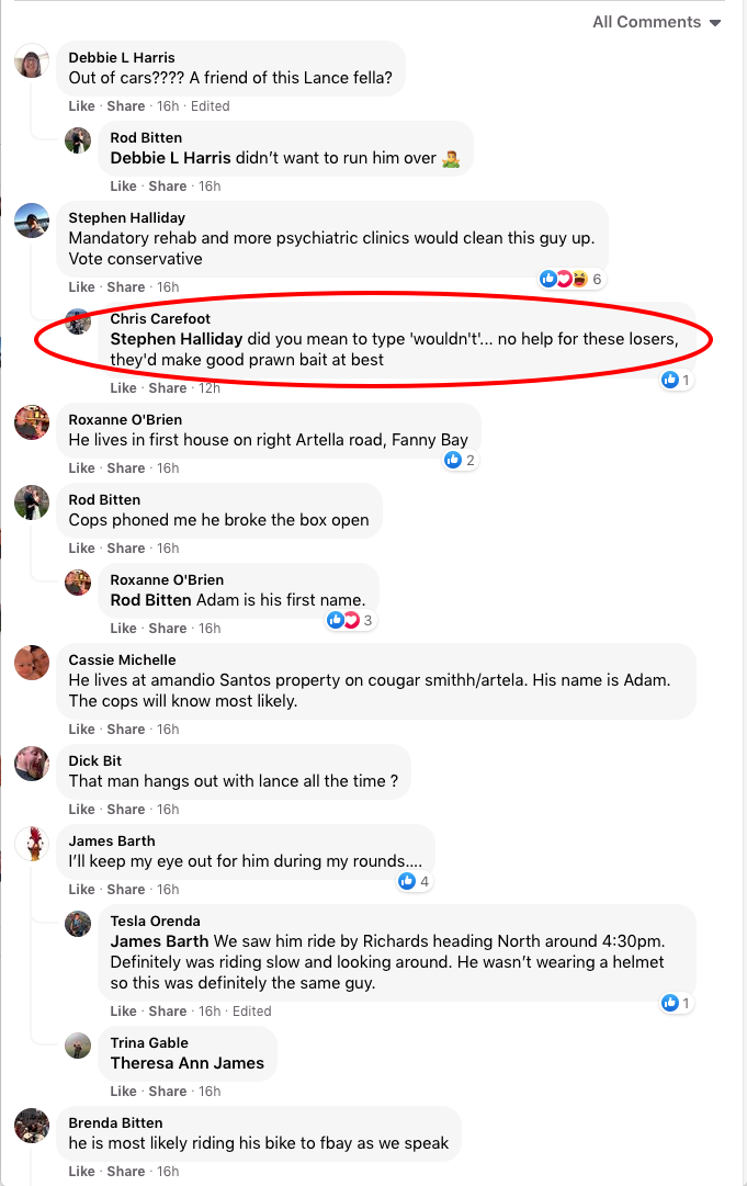 Interesting to see the mob attitude in Union Bay on full display. Those down and out, and especially if they have a mental problem are prime targets for the mob. They are more visible, so easy pickings.