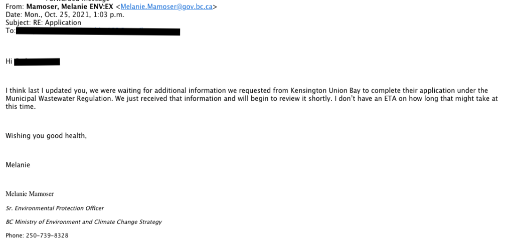 Follow up to this post: https://allthingsunionbay.com/2021/09/07/update-on-kensington-island-properties-aka-union-bay-estates-deficient-sewage-application-2/