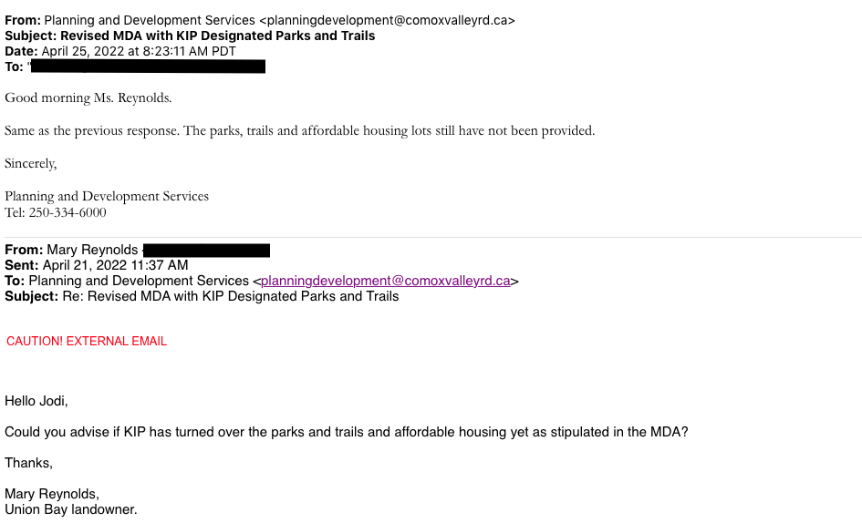 Thought it was time to check on the status of the MDA and whether KIP has provided the stipulations to proceed with construction. NOPE. Parks and trails plus affordable housing lots.
