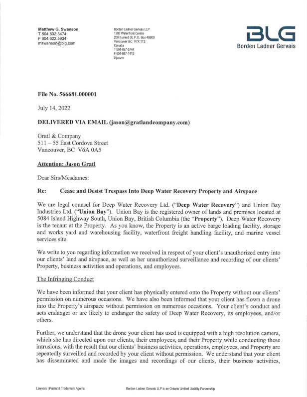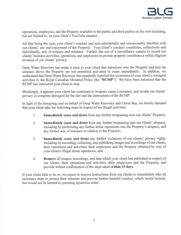 This is the cease and desist letter I received. This is the tactic used regularly to prevent people from speaking out. When you won’t bend to them, they hit you with a SLAPP suit hoping you’ll run out of money or cave. The Protection of Public Participation Act is meant to address these type of SLAPP suits from being brought. The judge looks at “what’s really going on here”.