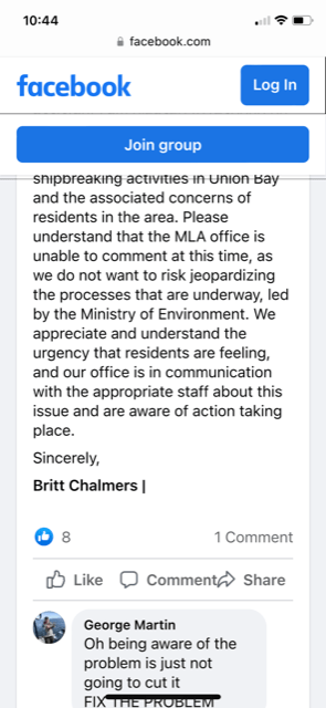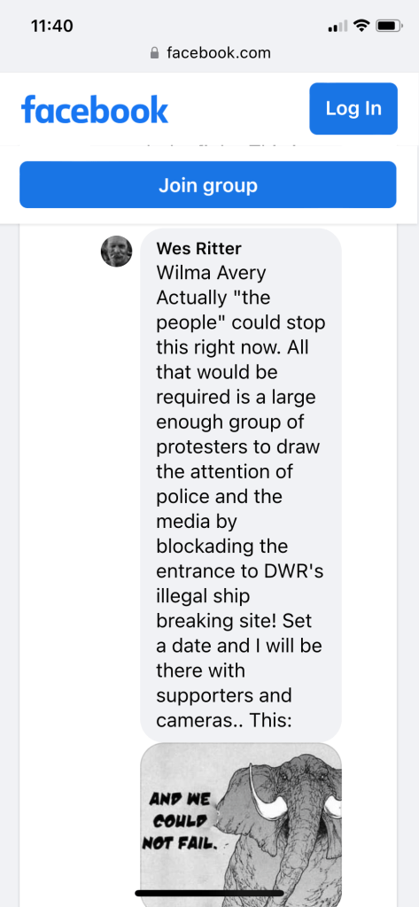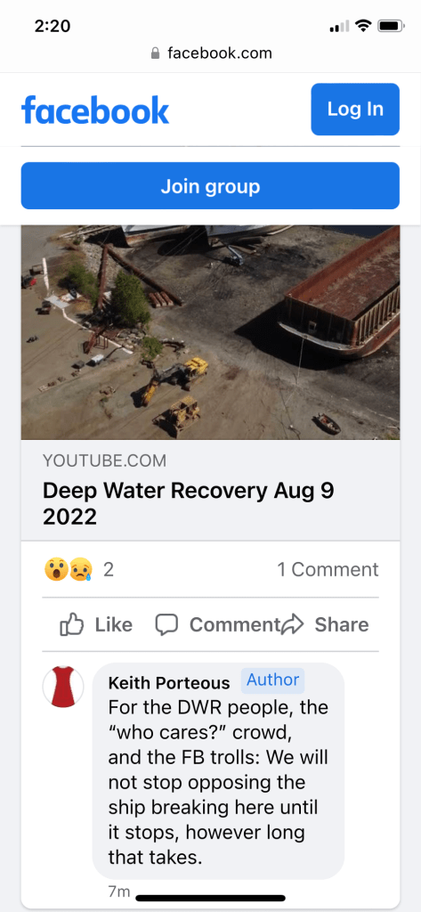 Some screenshots from this past week on Facebook Union Bay Bulletin Board discussing the Ship Breaking by Deep Water Recovery.