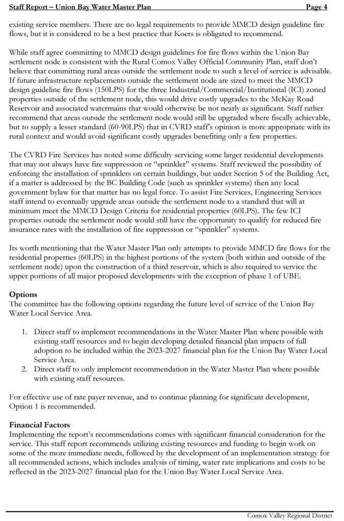 NOTE: The pdf in the link is 125 pages. I only posted the overview by Russell Dyson. https://cvrdagendaminutes.comoxvalleyrd.ca/Agenda_minutes/CVRDCommittees/EASC/19-Sep-22/z22%2020220915%20Dyson%20SR%20Union%20Bay%20Water%20Master%20Plan.pdf