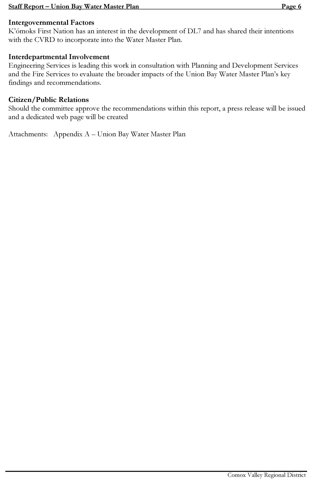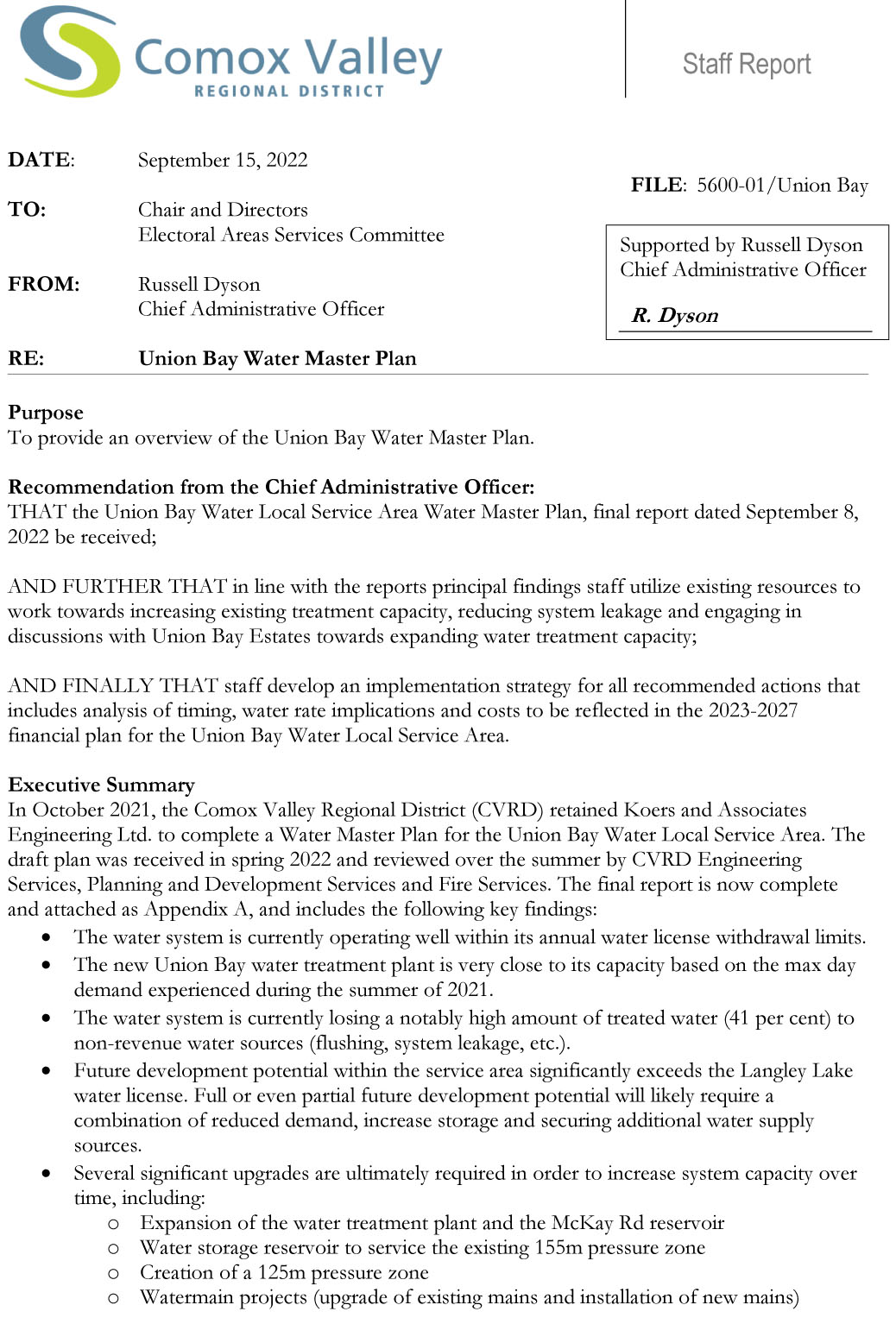 NOTE: The pdf in the link is 125 pages. I only posted the overview by Russell Dyson. https://cvrdagendaminutes.comoxvalleyrd.ca/Agenda_minutes/CVRDCommittees/EASC/19-Sep-22/z22%2020220915%20Dyson%20SR%20Union%20Bay%20Water%20Master%20Plan.pdf