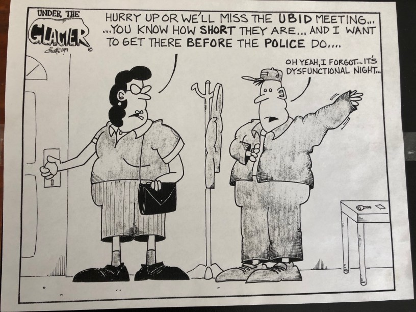 I fully realize it sounds flippant to talk of conciliation while using a term like “rhetorical guns” or “bullying” but, my gosh, Wednesday night I went to what was billed as an all candidates meeting to let Union Bay residents hear from and ask questions of candidates running to fill three vacancies on the UBID board. I was expecting differing opinions from the candidates and tough questions from the audience BUT I wasn’t expecting the near riot that broke out when the candidates representing the developer’s interests made it clear they were not there to participate in the discussion but were determined to commandeer the meeting in order to make inflammatory statements before a preemptory exit. Pushing shoving was well underway before the adroit moderator was able to separate the sides and convince members of the audience to return to their seats. I found a seat closer to the rear exit, took a deep breath, tried to remember if I had taken my blood pressure meds and recalled the words of one former UBID trustee who, on exiting the board, put his heart into his final words to the board and community, “Let us pray for resolution so the community may heal and move forward.”