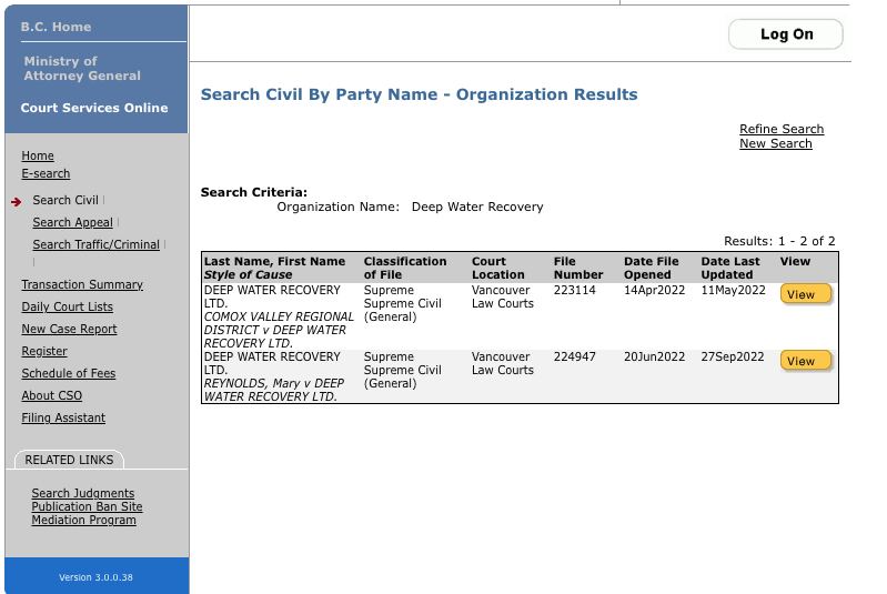 - Deep Water Recovery Ship Breaking – Arbour stated why the CVRD has initiated legal action when DWR refused to take any steps to rectify the situation such as applying for a Temporary Use Permit. Nothing is happening. DWR lawyers are dragging this out and succeeding. Here is the status and you will note that no documents have been submitted since May 2022. WTF? You will also note my lawsuit initiated in June 2022 has had activity since that time because I have a lawyer that won’t let them pull this shit. We await the judges decision on DWR’s pathetic application to dismiss our Protection of Public Participation Act application. All they can do is try to delay because Terrance Ruttan will be examined on his affidavit – there is no way out buddy – you swore the information was true and signed your name. Also, thug Jurisich who was so quick to taken action against landowners by chasing, spitting at them and then robbing of my drone, hasn’t provided an affidavit – why is that? Maybe throwing Terrance Ruttan under the bus? Did they tell Terrance Ruttan when he signed that affidavit that he could be examined on the words he claimed to be true? I think they found someone to take the heat off Jurisich, for a while. A flunky easily manipulated. Jurisich is scared because the video evidence proves the robbery, so what’s he going to claim as a defense? Again, stalling will only work so long, at some point Jurisich is going to have to provide an affidavit and will be examined on the words he swears to. I can hardly wait to watch Jason in action again.