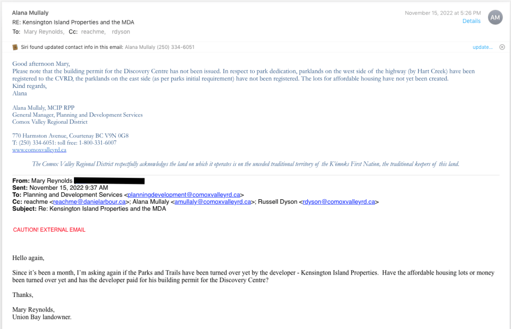 The green below is the first phase of Parks and Trails – so the green to the West of the highway is now owned by the CVRD. KIP hasn’t turned over the green east of the highway, so ole slick can still kick you out of there on your way to the coal hill.