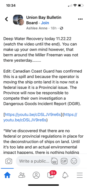 CVRD, Deep Water Recovery LLC Union Bay, Deep Water Recovery Ship Breaking in Union Bay, Government, Union Bay Ship Breaking