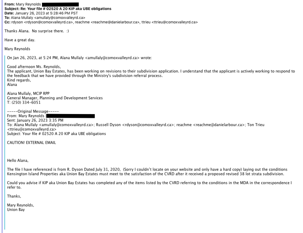 Waiting for word back from the CVRD as to how many of the conditions have been met to date.