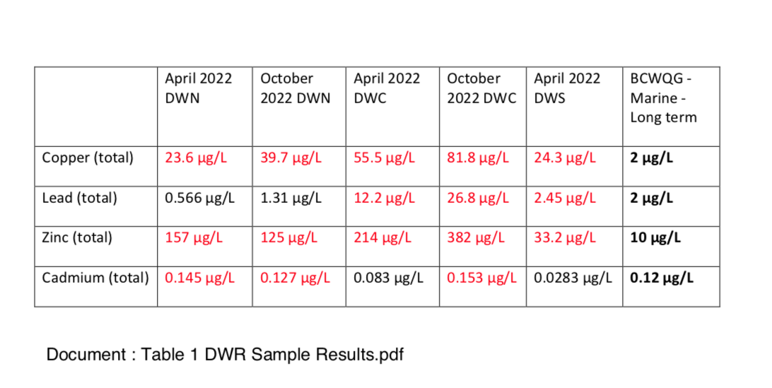 The company received three warnings for improper discharge of waste, and one advisory for improperly labelling containers used to store waste oil. Raw sewage and heavy metals like copper, lead, zinc and cadmium that exceeded what’s allowable in B.C. waters were being discharged on site and ending up in the ocean.