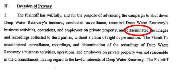 They fear the evidence in the drone videos and pictures. I’m going to continue flying over DWR documenting what they are doing and disseminating the video and pics – the very word they used in their countersuit. The PPPA came into play – they don’t want me sharing the video and pics because then everyone will see what they are doing.