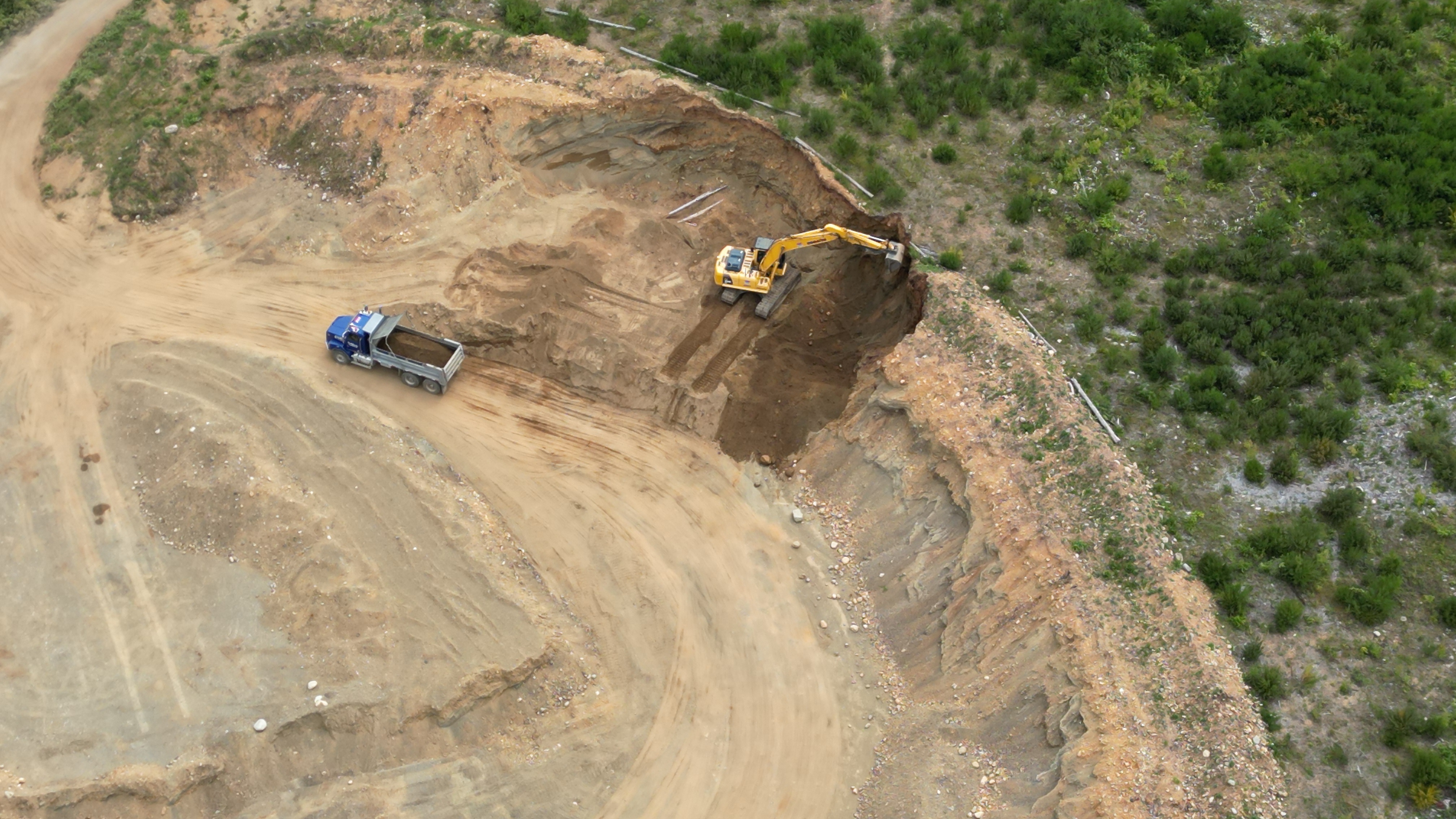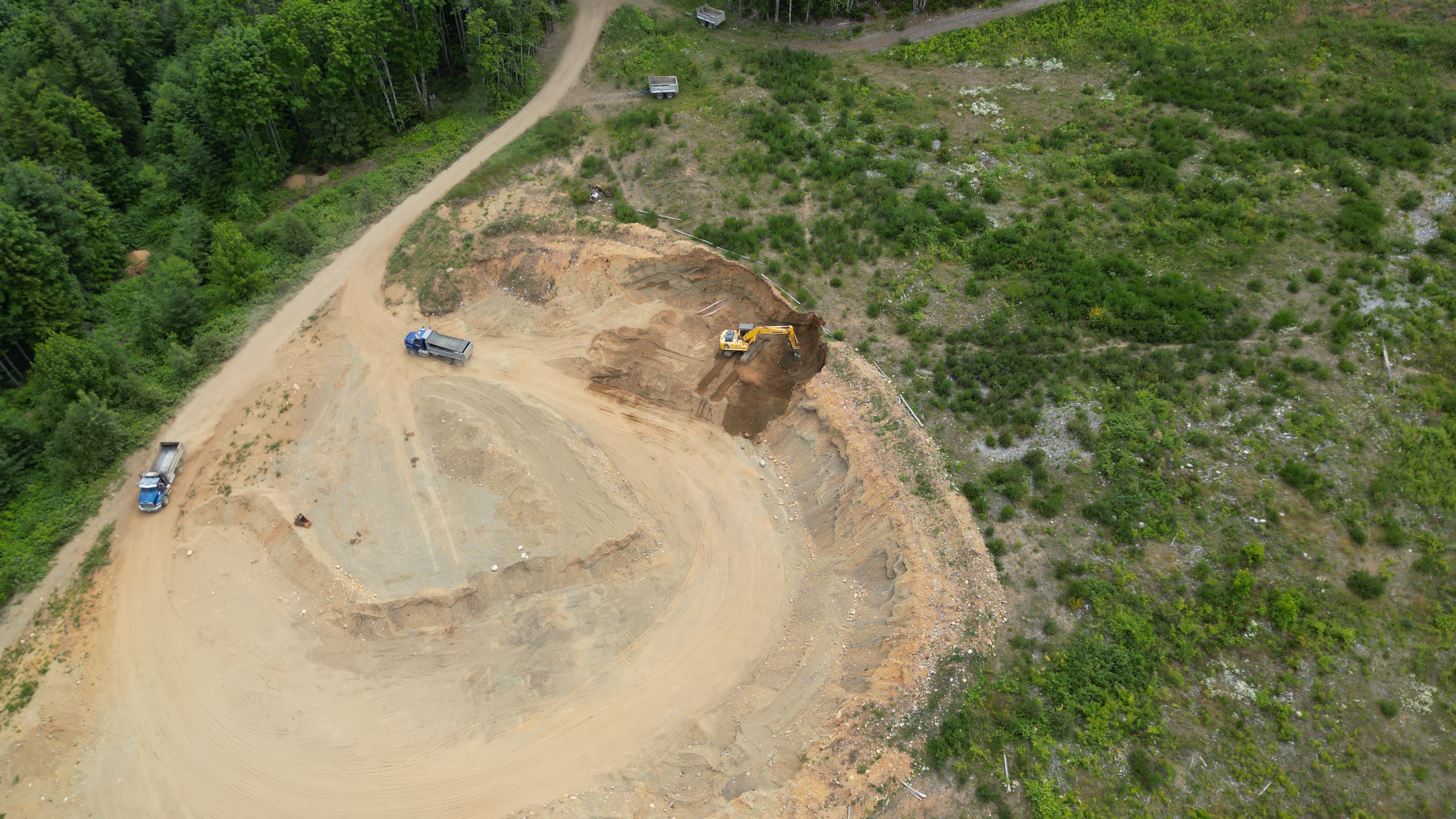 Steady stream of dump trucks hauling material from the gravel pit off McLeod Rd. to behind Washer Road. Wetting down the soil being dumped but not the dust on the road.