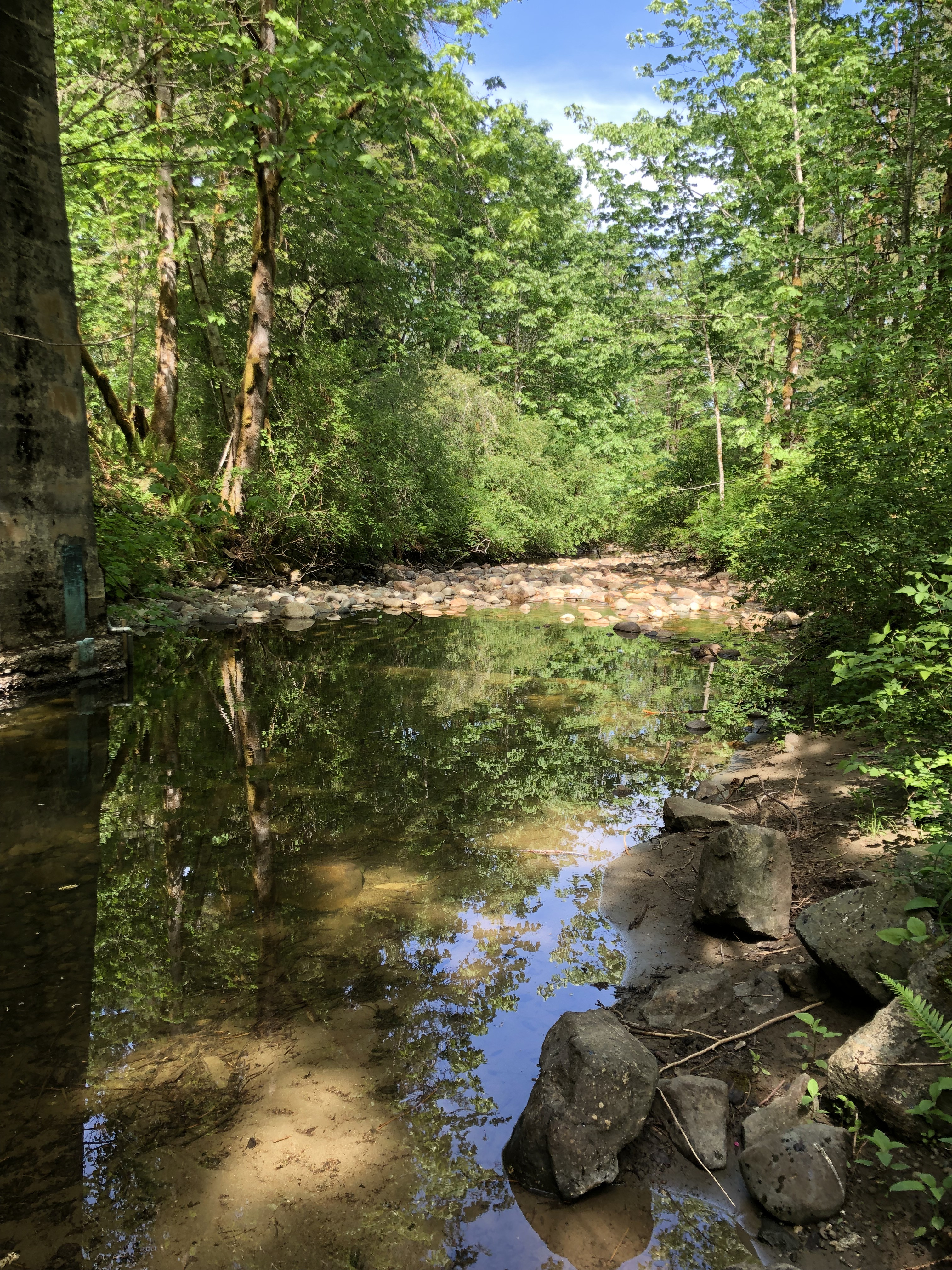 Pic below is from May 19, 2023, facing downstream towards the ocean. Look at how little water is in the creek and this is under the train trestle which is the deepest part of the creek. Doesn’t even cover the rocks. How can the gov’t approve Kip’s application to dump daily from Oct. through May?