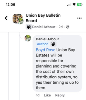 How fitting, instead of Union Bay and Royston being able to hook into Kip’s sewage system at landowners costs, it turns out landowners are now bringing the sewer down so Kip can hook into it. How great is that?