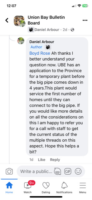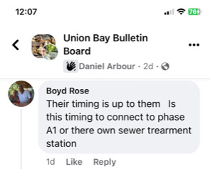 Some comments from Area A Director Arbour on Union Bay Bulletin Board.