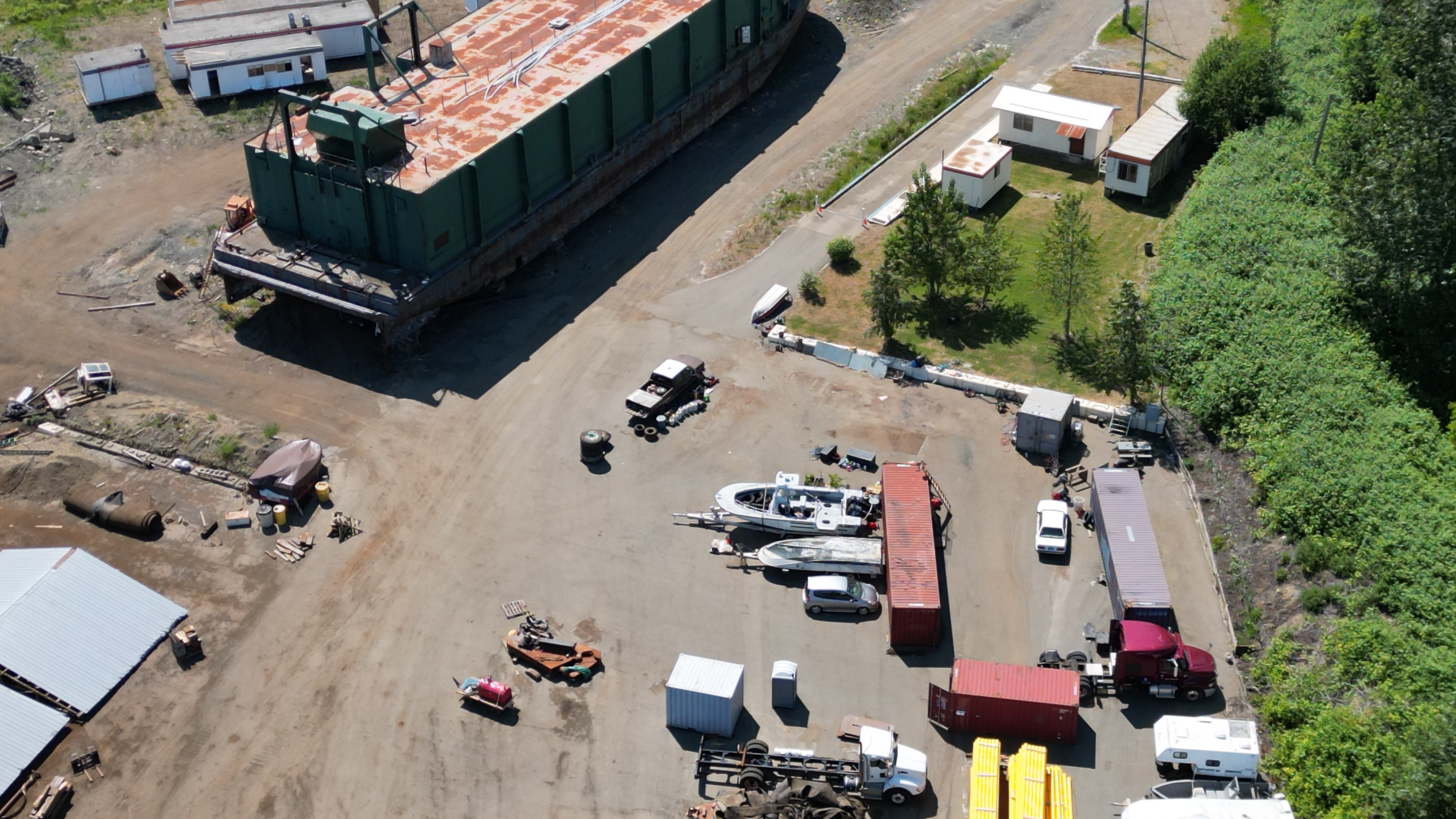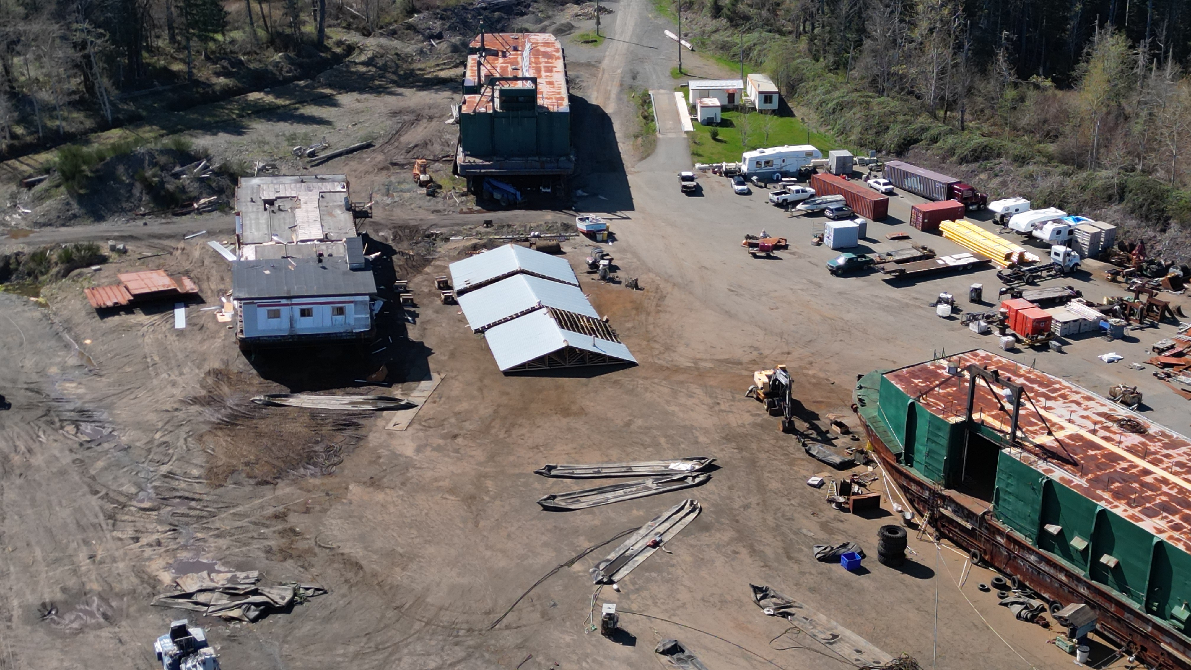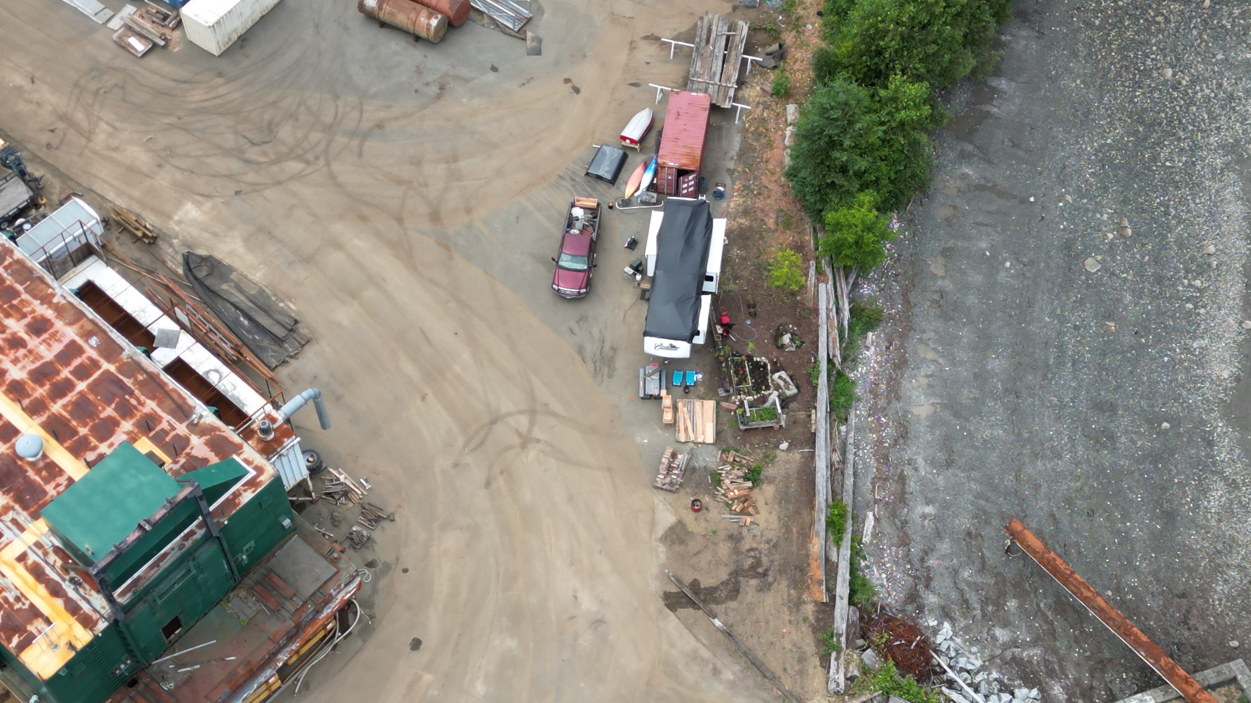 Motor home moved. Always noticed a large pipe running from that motor home and apparently there was a washer and dryer operating in that little metal building to the right of the trailer.