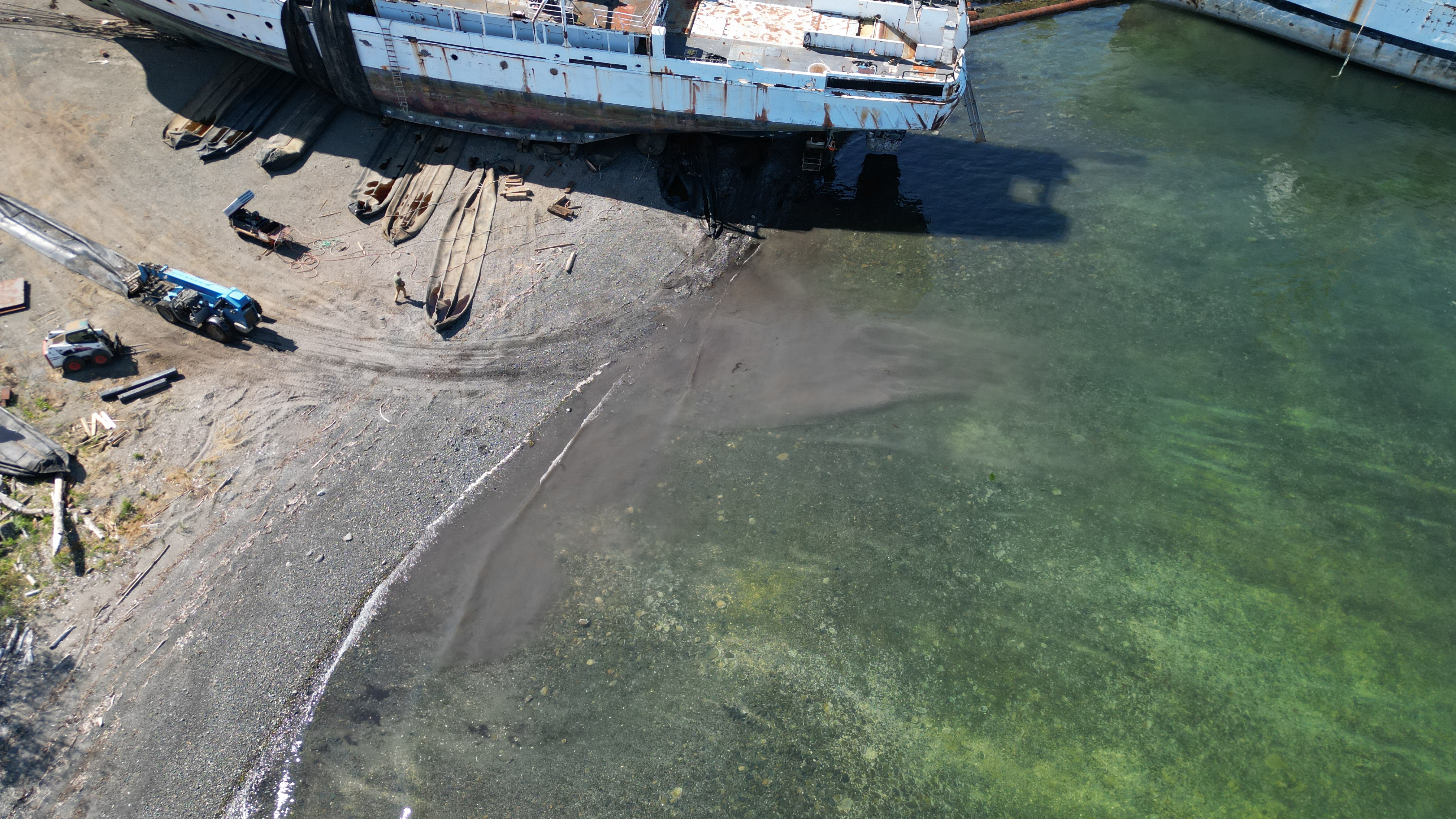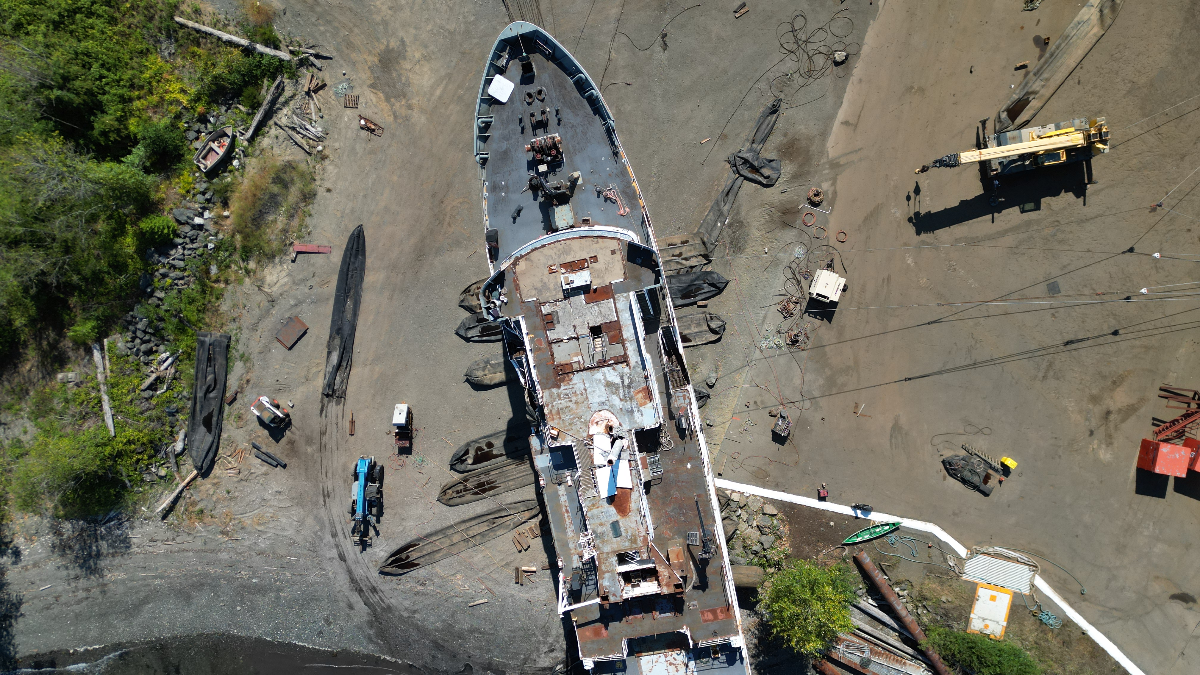 I changed the setting to allow in more light in some of the video clips so you can see what they are doing in the shade of the Miller Freeman. Most of the videos are just hanging watching DWR trying to figure out how they are going to get that ship on to land.