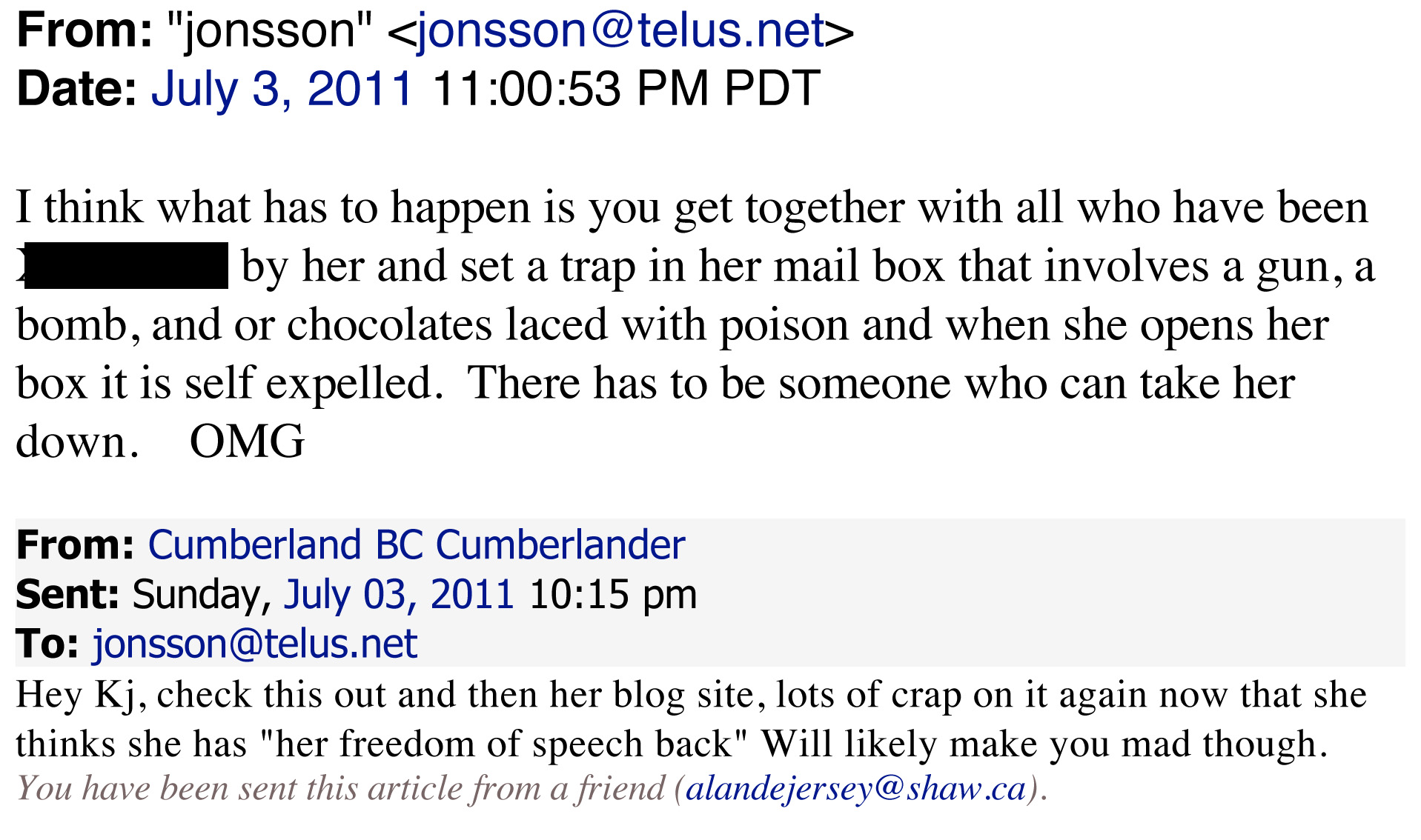 So you can see from the date of the image above is from July 5, 2011. Carol Molstad and Anne Alcock were elected in Apr. 2011, joining trustees Bruce Livesay and Cleve Goldswain to make a majority of the board of five. UBID had to agree to pay me in order for me to allow them to withdraw from the lawsuit as I was running up a legal bill defending it with my fantastic lawyer, Jason Gratl. When you initiate a lawsuit, you can’t go – my bad – nevermind. The UBID Board of trustees prior to Apr. 2011 initiated the lawsuit and paid the legal bills for it out of the taxes paid by all Union Bay landowners. Trustees Bruce Livesay and Cleve Goldswain who were elected in 2010 were not party to the lawsuit and never approved of funds being spent to sue a landowner as they were aware of the Powell River case. What do you think would be the total of taxpayers (your) money spent on lawyers fees for this lawsuit initiated by trustees without the consent of the landowners prior to initiating it? Word I heard was that it was at least $130,000. and that didn’t include the monies paid to me. Also heard at the time Edda Grant said she didn’t care if they spent $200,000.