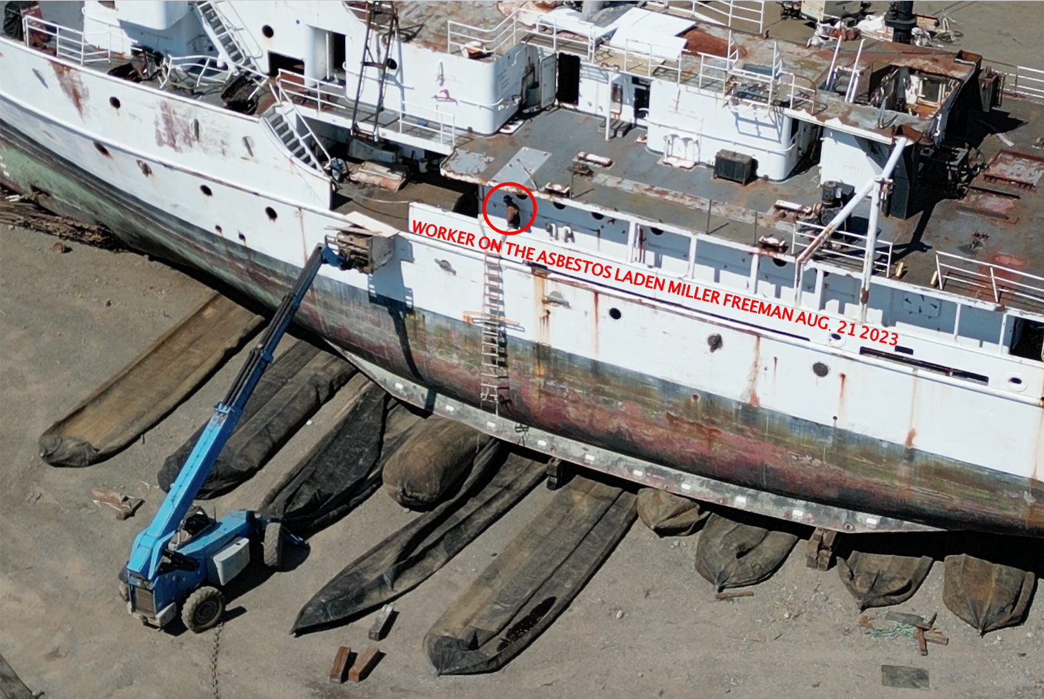 The above comment was left a few minutes ago and thought it might be missed at the end of the post.Certified fall protection required over 10 feet in BC per Worksafe BC and OH&S. The worker in the video does not have a Fall Protection harness on, on Industrial sites rope ladders are not allowed (it looks to be rope from the video. If using an AWP (aerial work platform) for access worker is still required to have a Fall arrest harness on and attached to the basket when operating or in of the AWP which obviously is not happening. As well the opening on the ship must be an approved fall restraint or barricade not a piece of rope. And all workers must be , by a certified trainer, adequately trained in the use of fall protection systems. As well, as it is documented that the old vessel is asbestos laden, all workers should be wearing masks and proper PPE which if the owner knows this it is a major safety violation. Bill C-45 was developed for these types of owners and Marystown has the history of what happens when workers are not adequately protected by the owners.