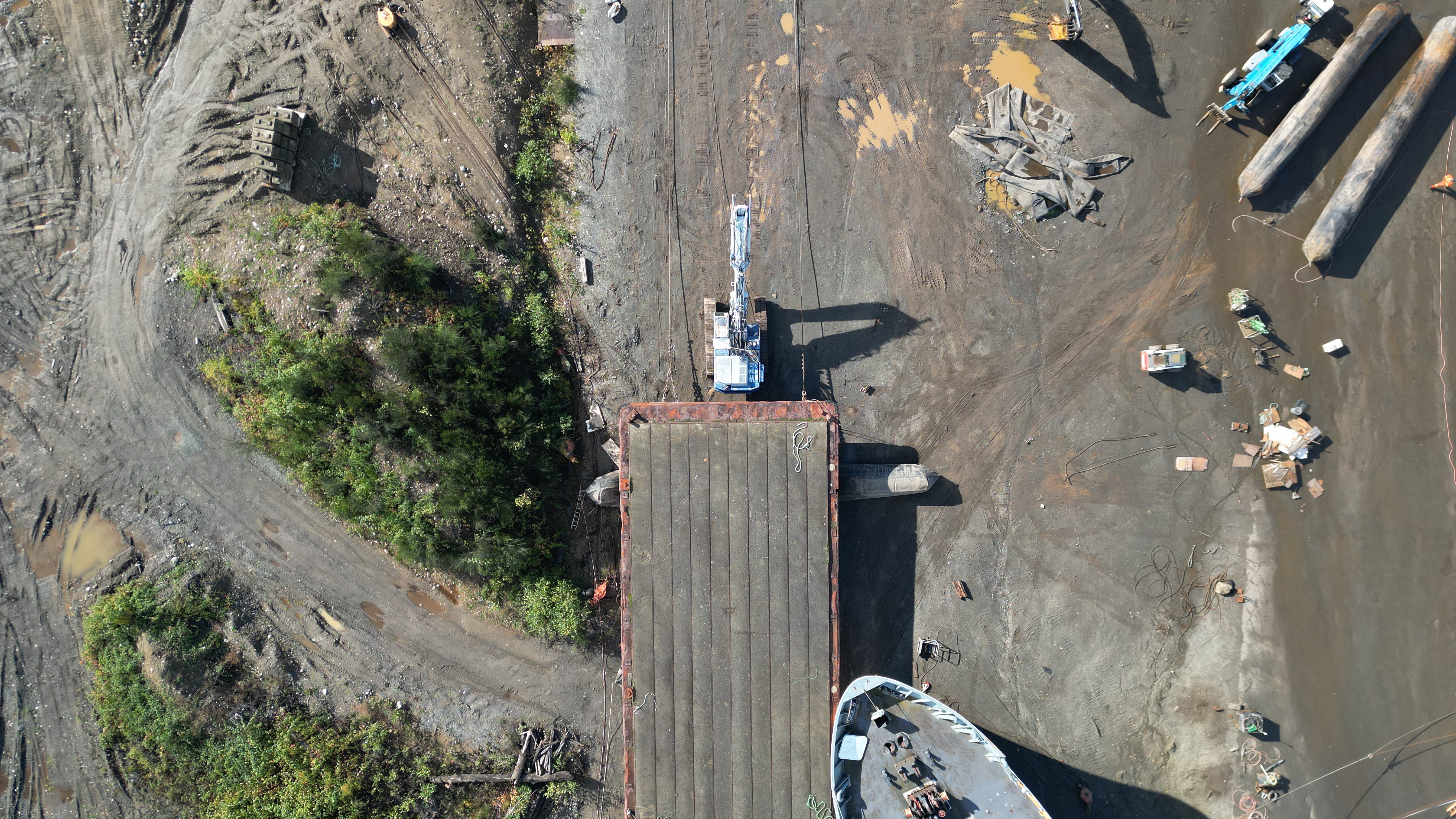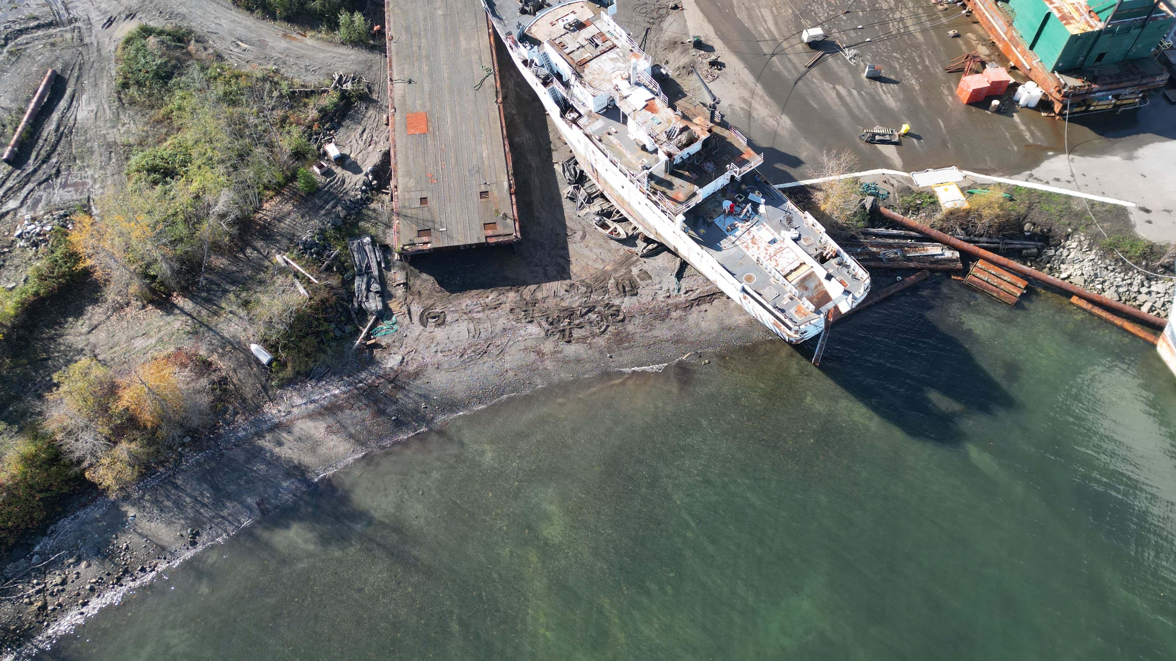 Our MLA, Josie Osborne is under the impression a filtration system is in place to prevent detritus from entering the ocean. There is nothing in place on the soil portion, which is extensive and the area most used by DWR to torch/dismantle barges. It all runs downhill straight into the ocean.