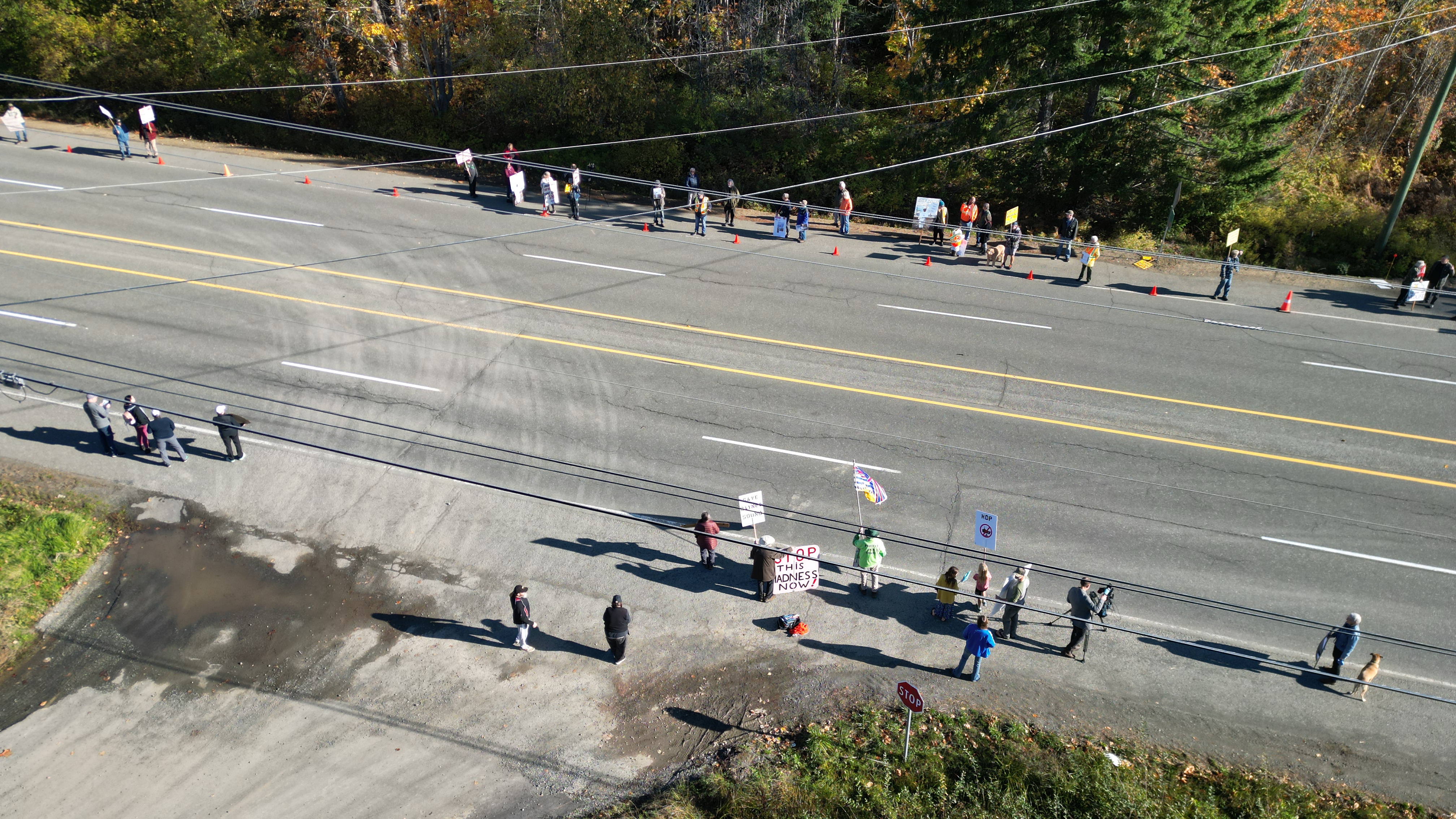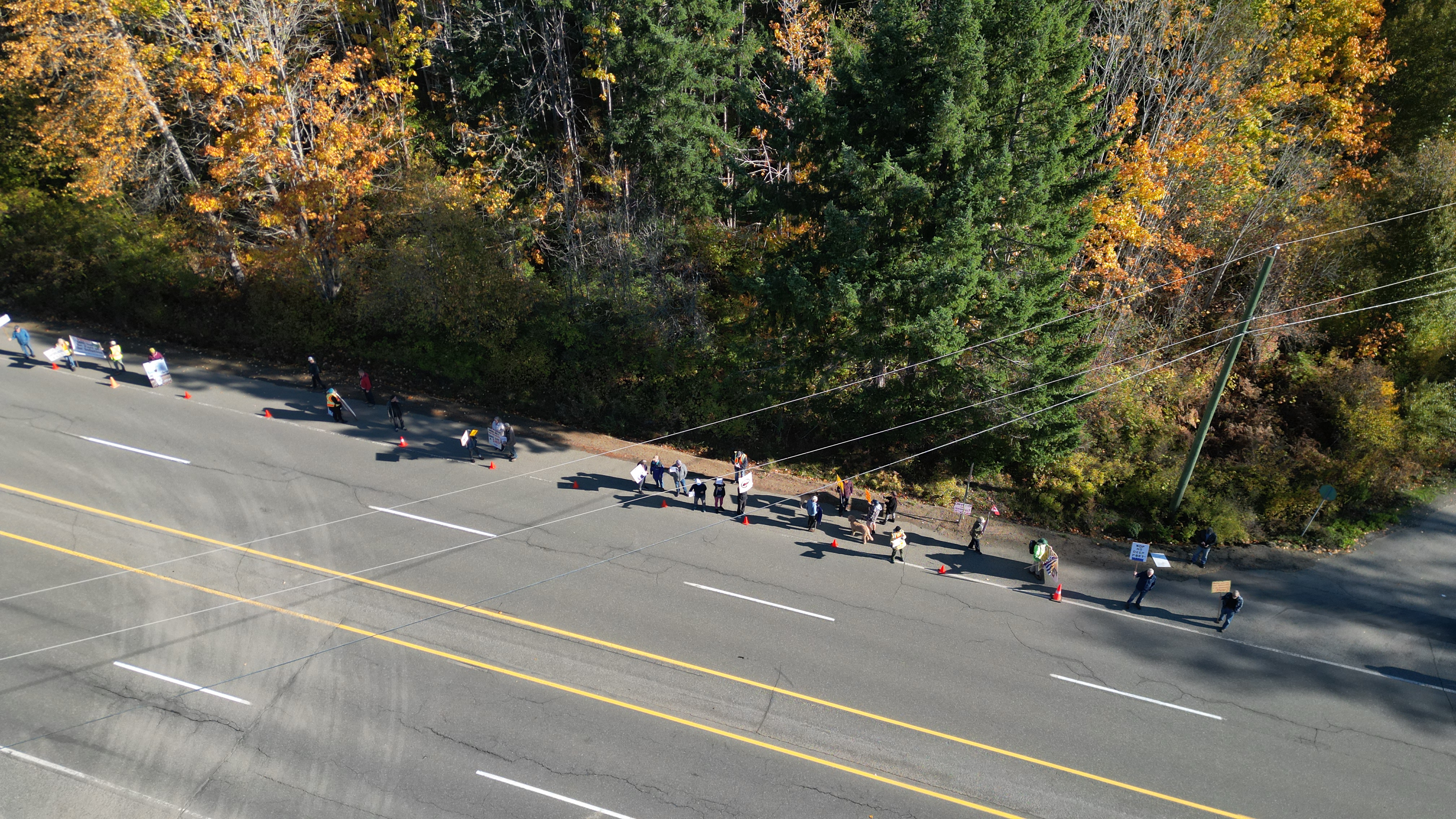 Some asshole was flying a drone very low over people and the highway. They may not have realized the RCMP also saw that drone. It appeared to come from Deep Water Recovery.