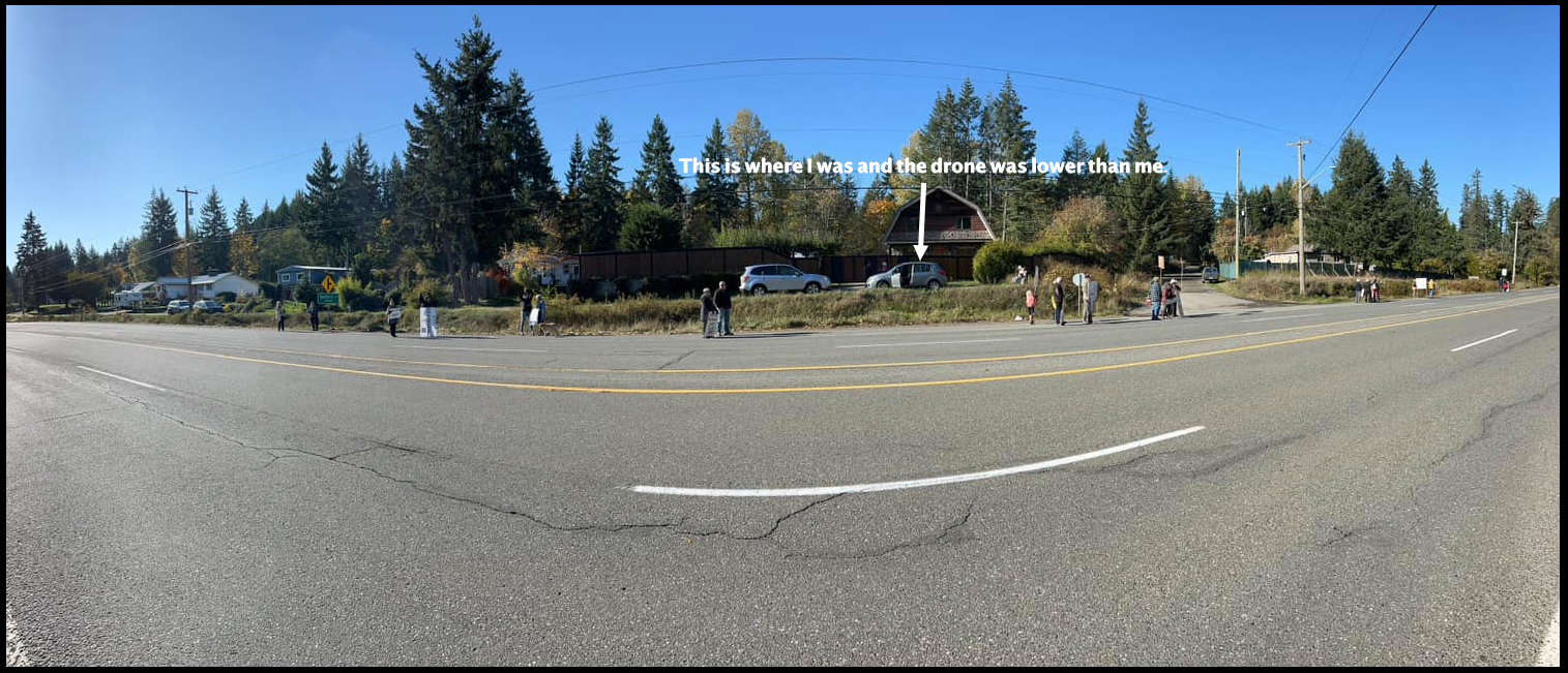 Another landowner captured the drone flying just above the vehicles on the highway – starts around the 12 second mark. The pilot violated all kinds of drone rules today.