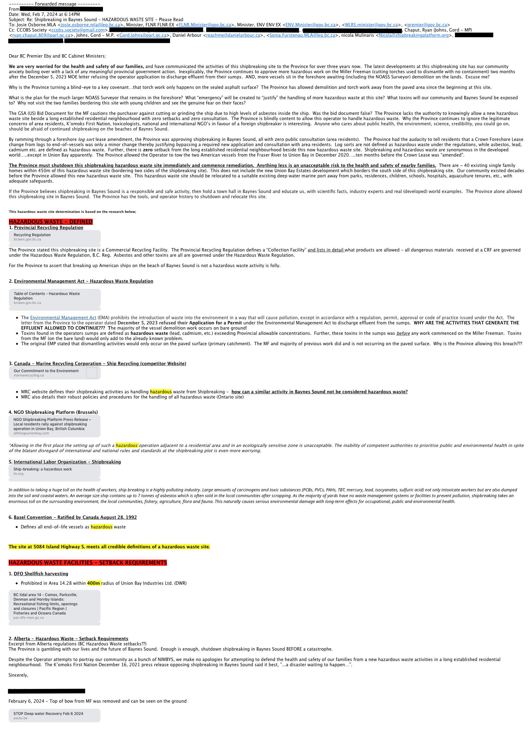 Once word gets out about the contamination freely flowing into the ocean and permeating the soil at DWR site – how many people are going to want to eat the famous oysters from Baynes Sound? I’d certainly advise against it.