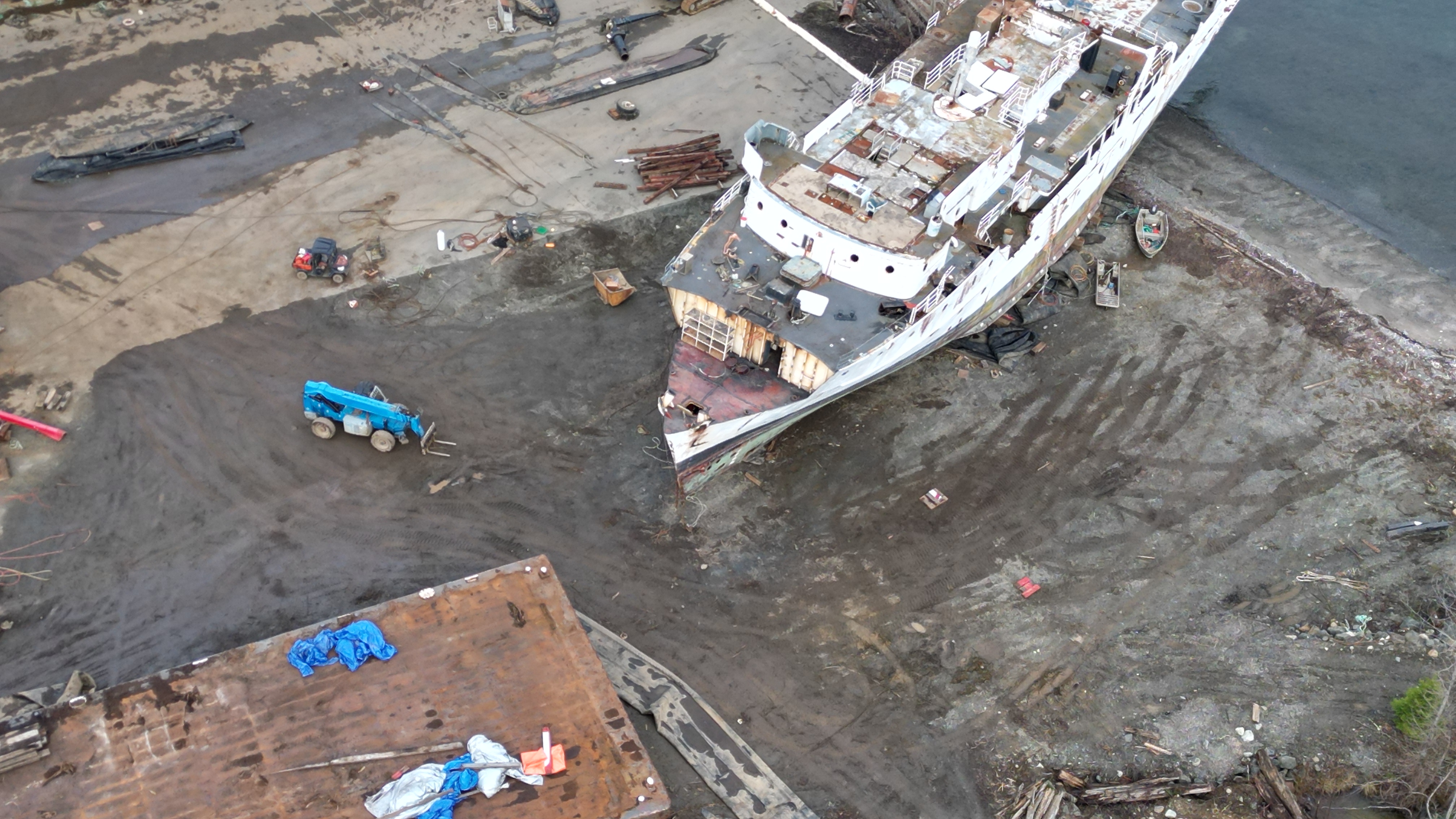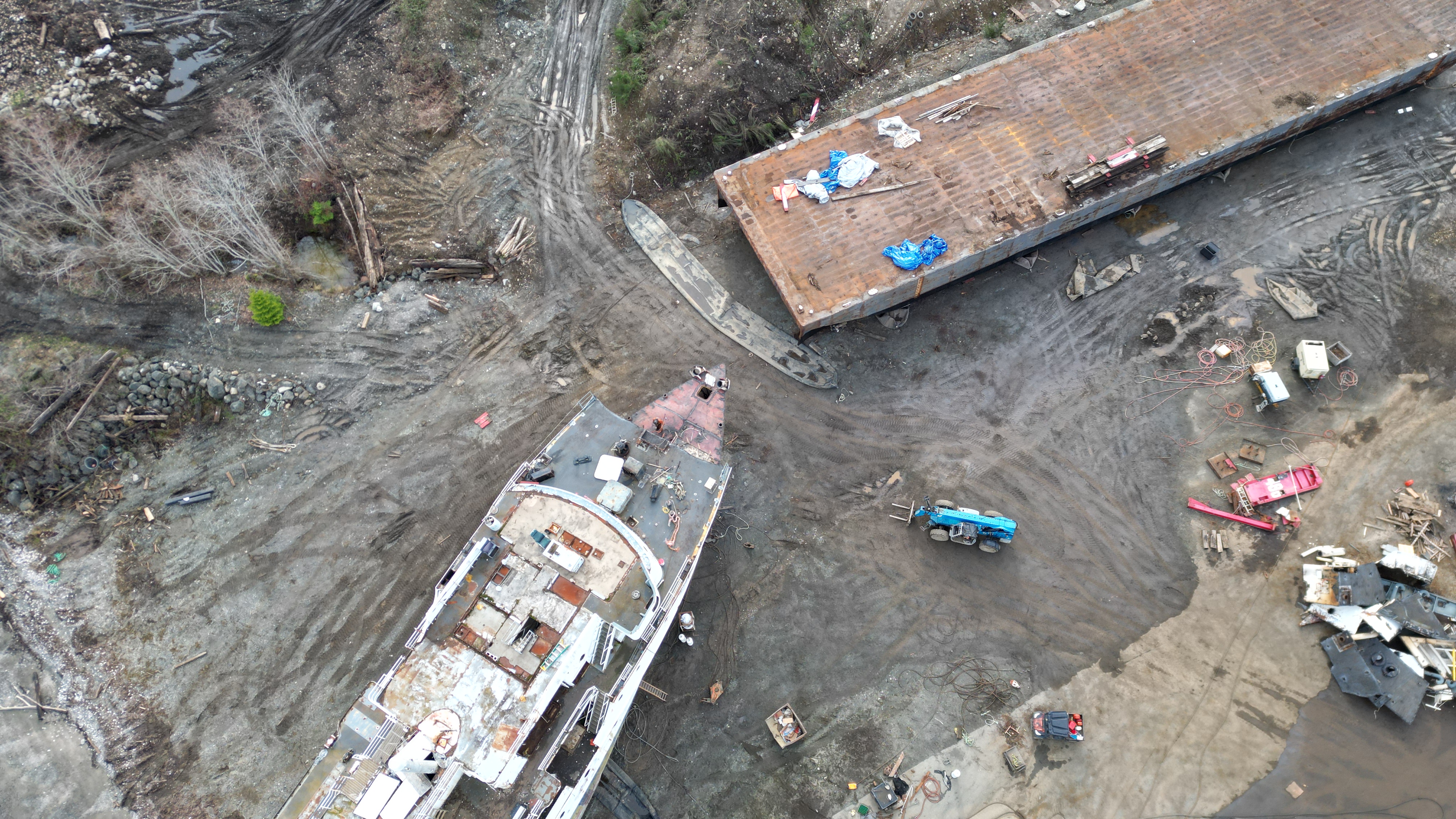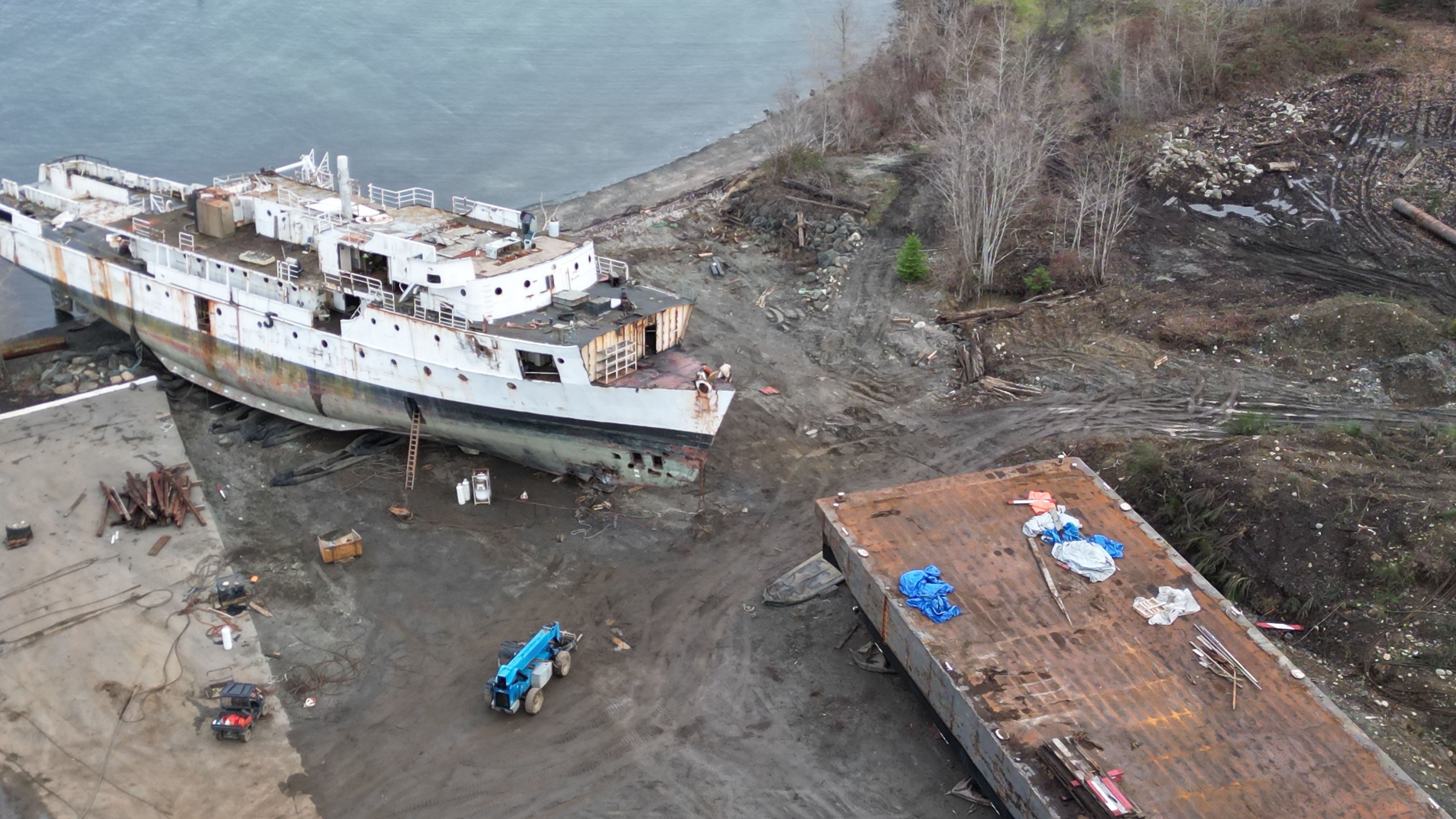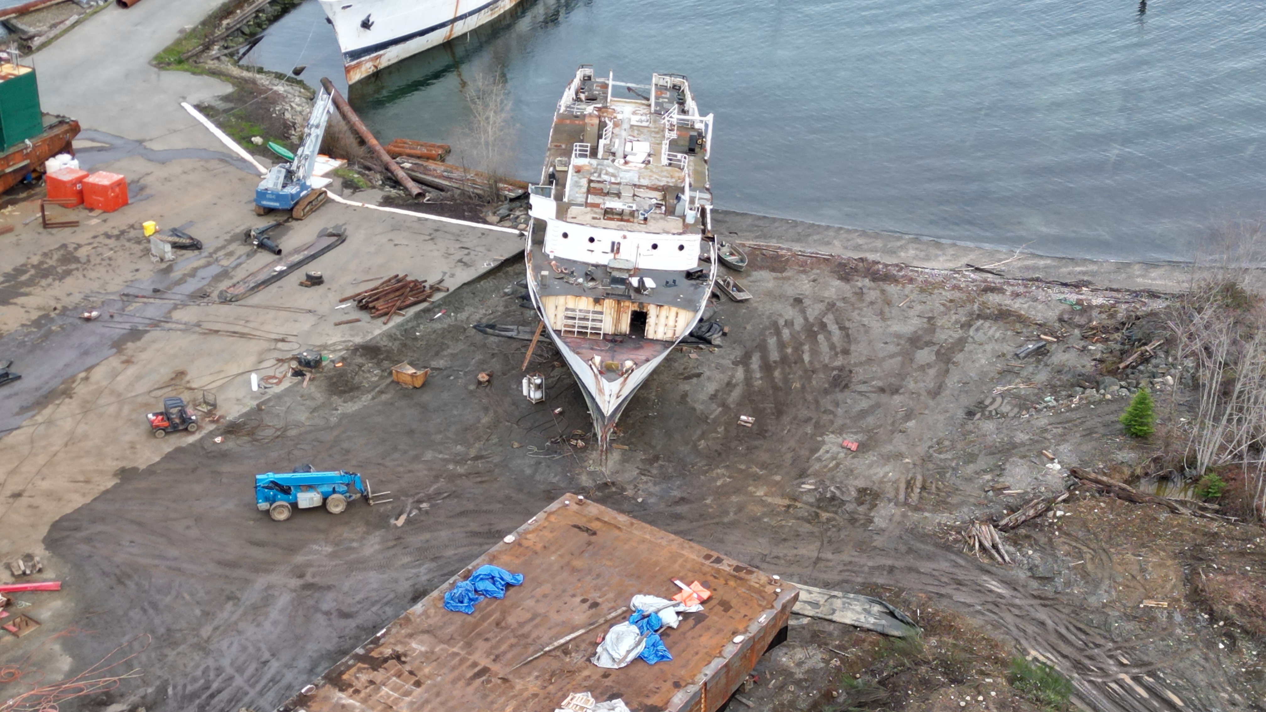This wasn’t some accident that DWR set up shop here – it was planned. The Miller Freeman and the Surveyor were already purchased before they purchased the existing property. Those ships were brought here specifically to be broken apart on the shores of Baynes Sound.