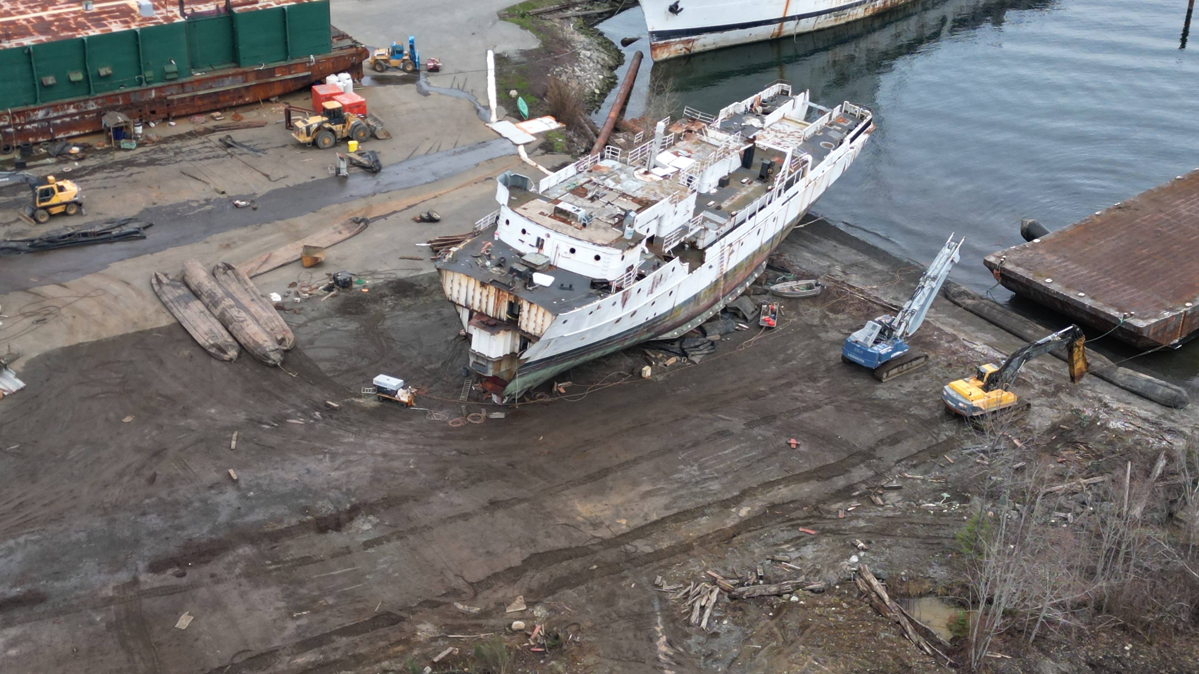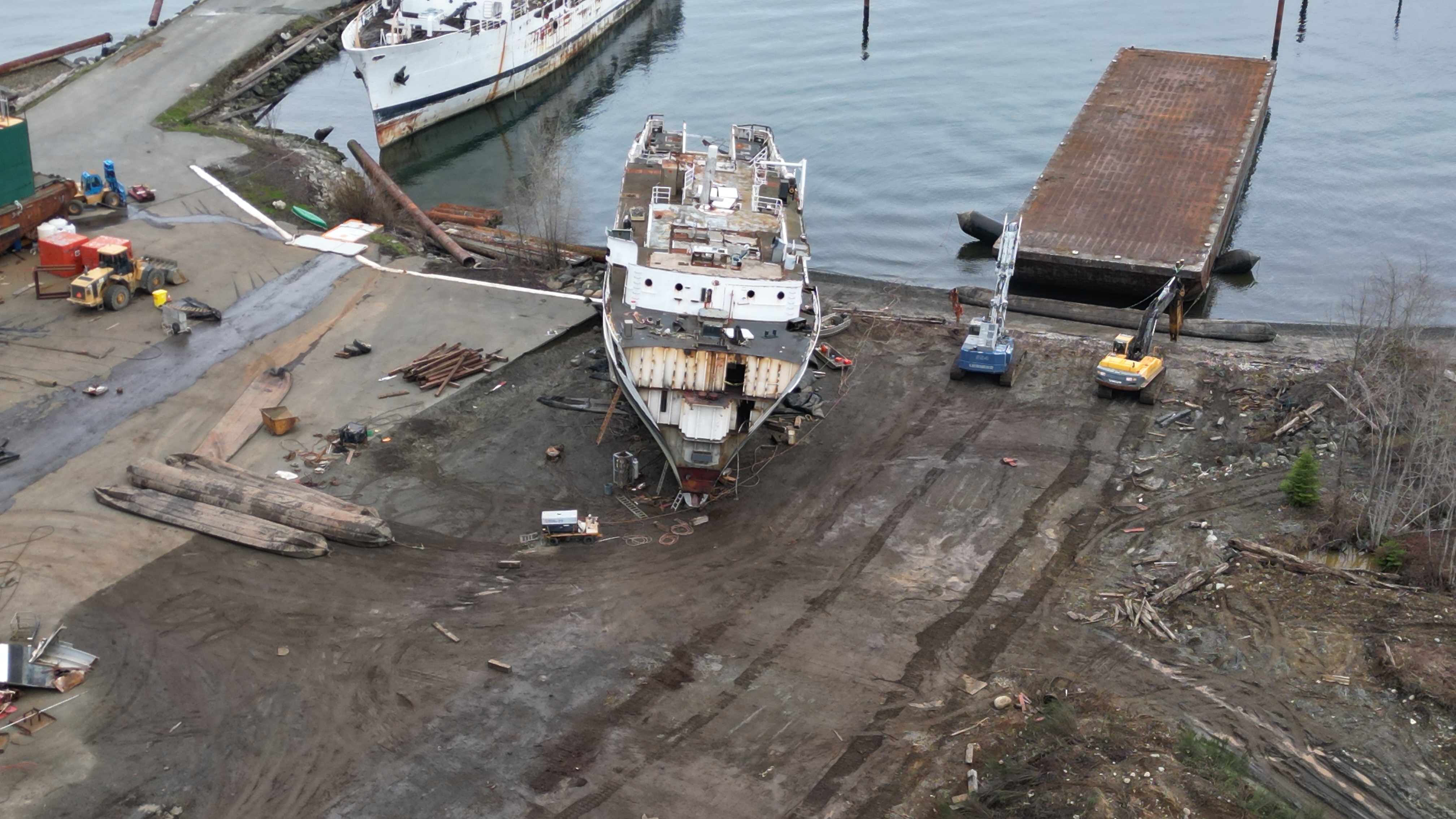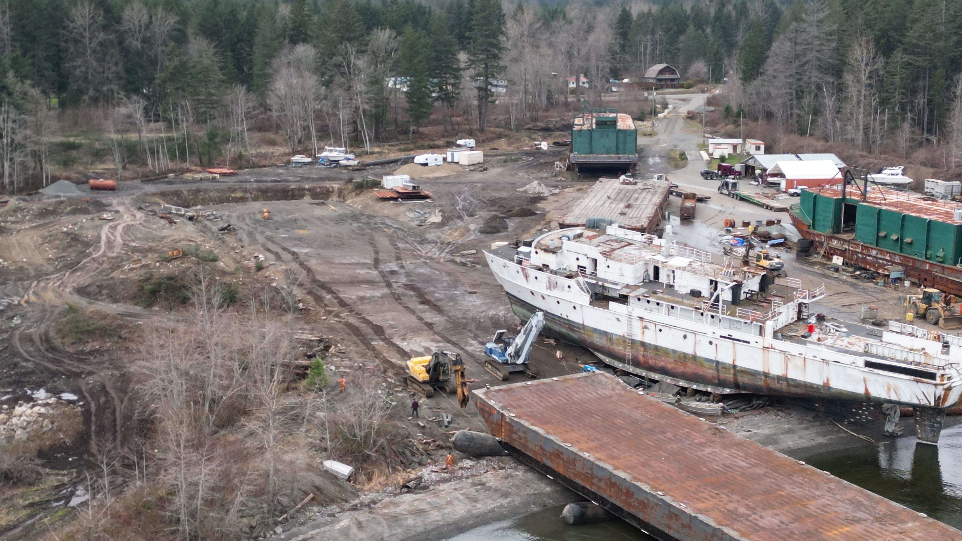 Why does the gov’t allow this shitshow to continue on the shores of Baynes Sound? These dolts don’t know what they are doing. They don’t have the equipment, facilities or expertise to be shipbreaking. The gov’t KNOWS they don’t and yet here we are. Thug Jurisich is the one dressed in all dark clothing.