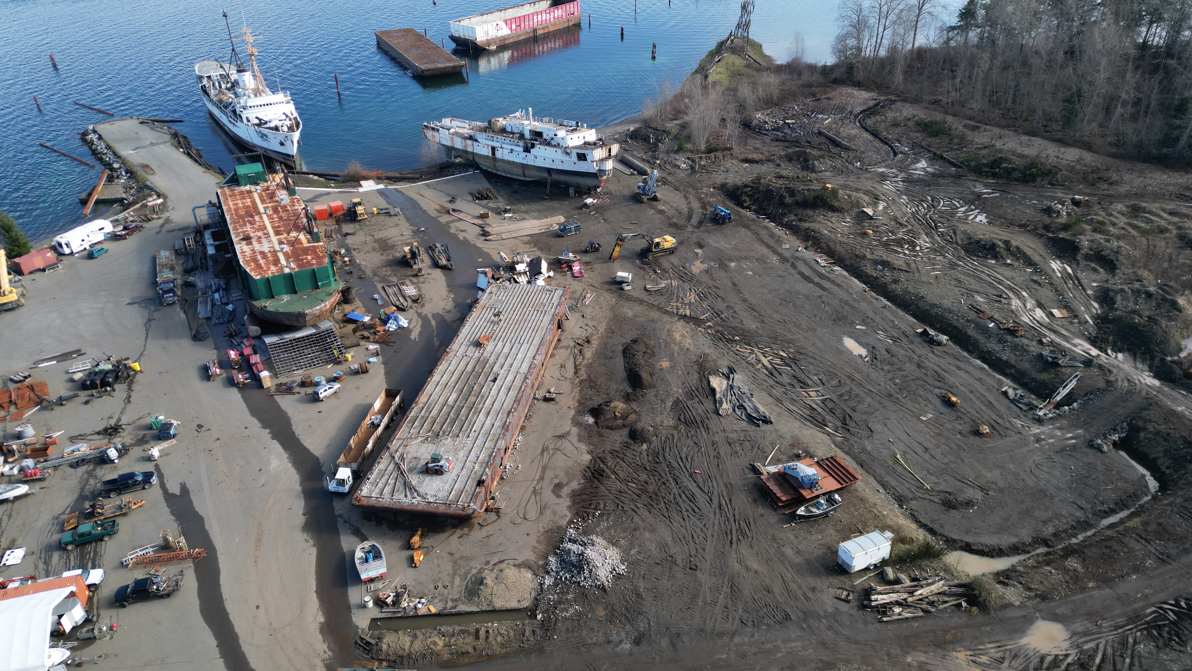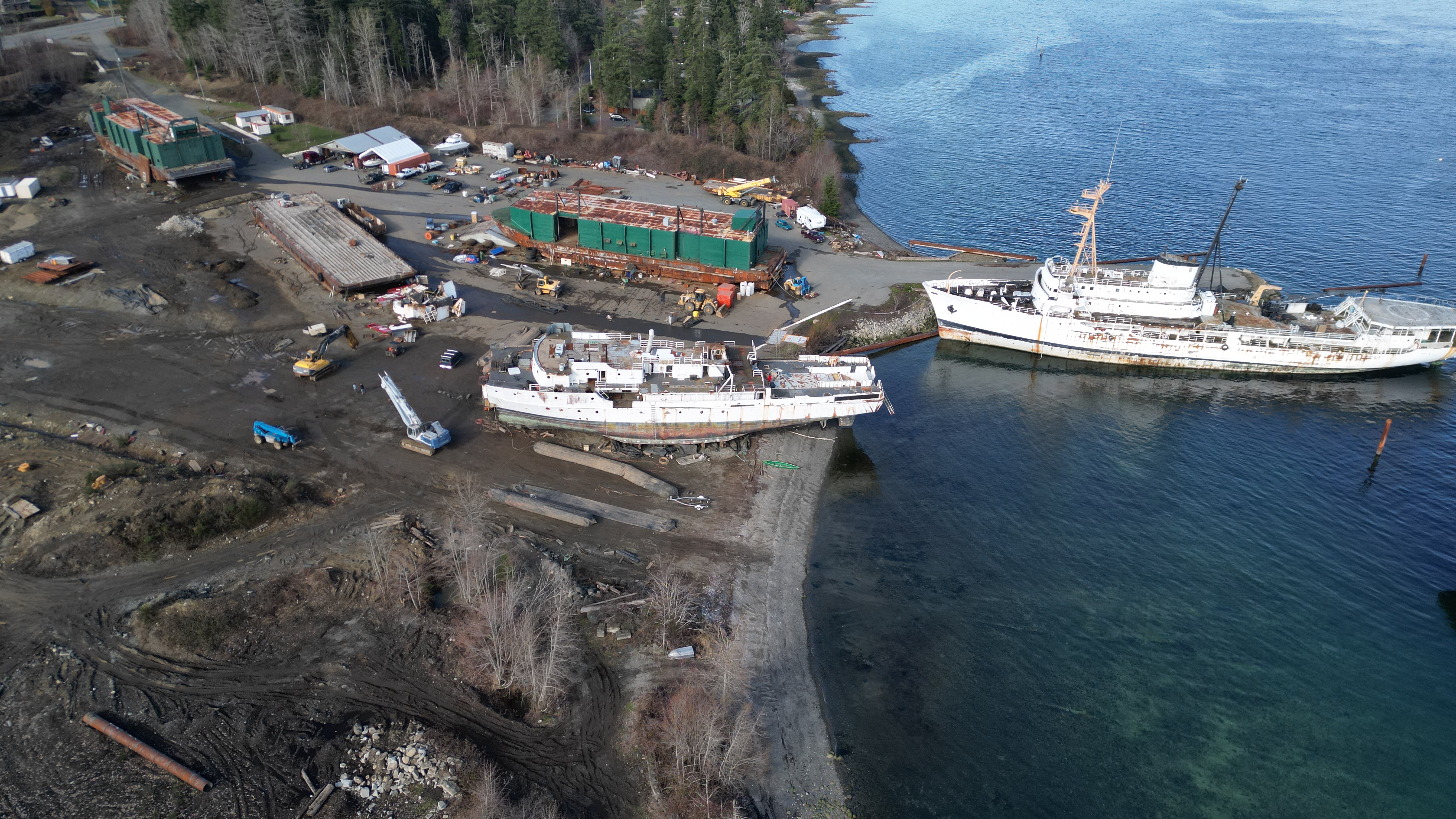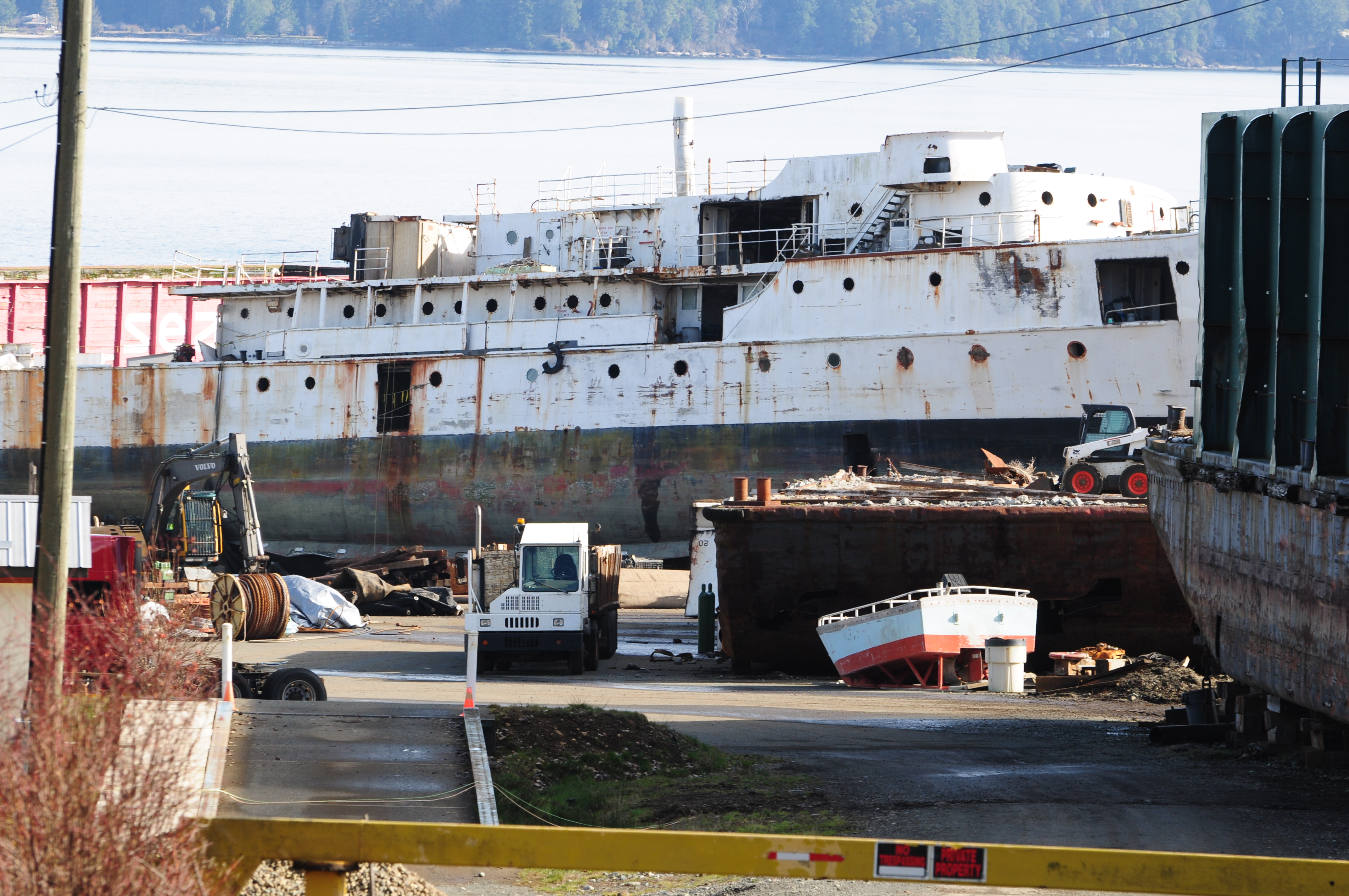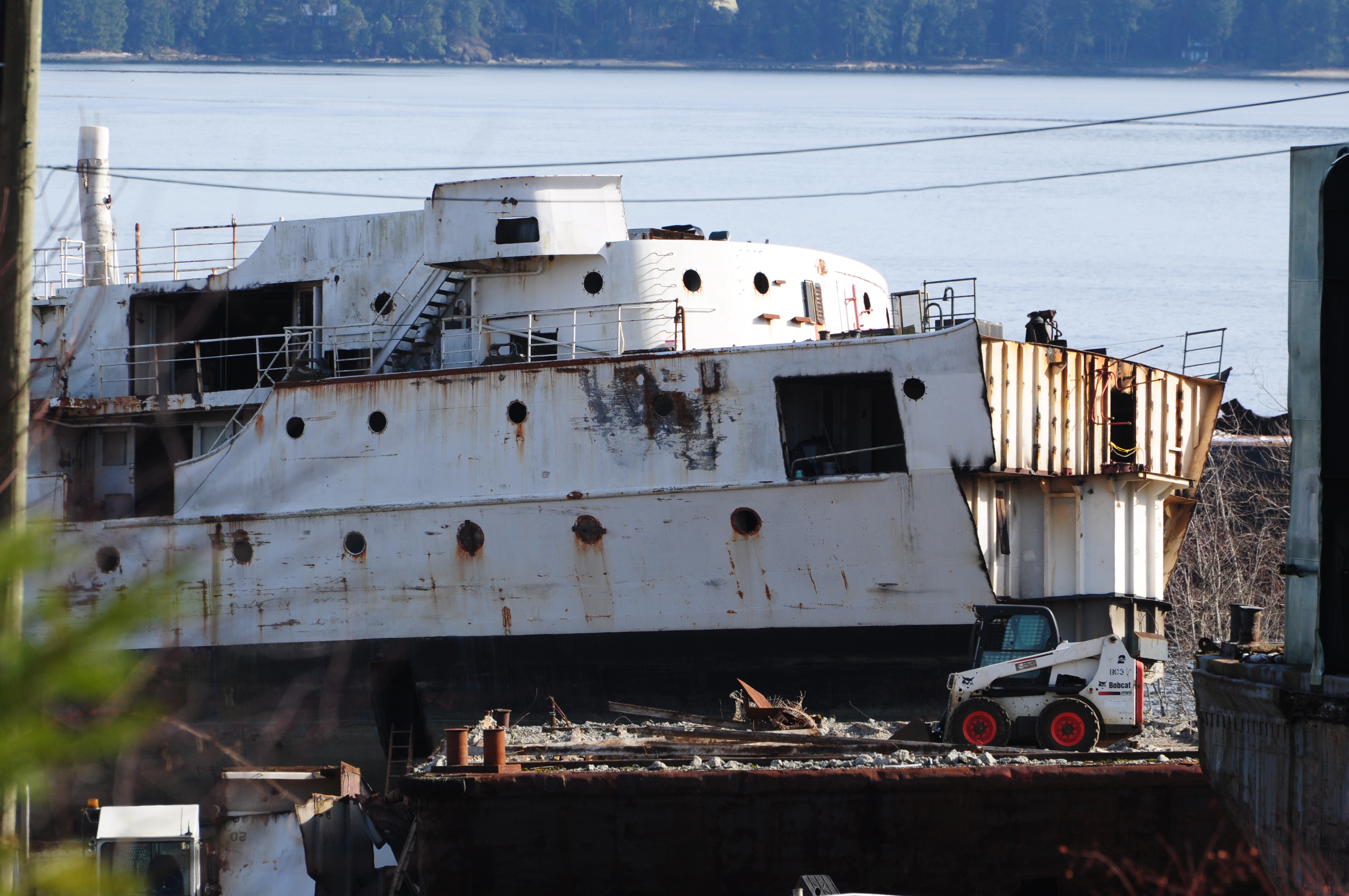 So DWR brought a Seaspan barge onto land and torched it apart down to the deck. Every bit of torching was performed while the barge was on soil – metres from the high tide line. All done with zero precautions in place to prevent contaminants entering the soil and/or the ocean as it’s washed down hill when it rains. Now they have put the “new version” of the barge back in the ocean. The “new version” looks all clean now that all that crappy stuff was removed on the foreshore.