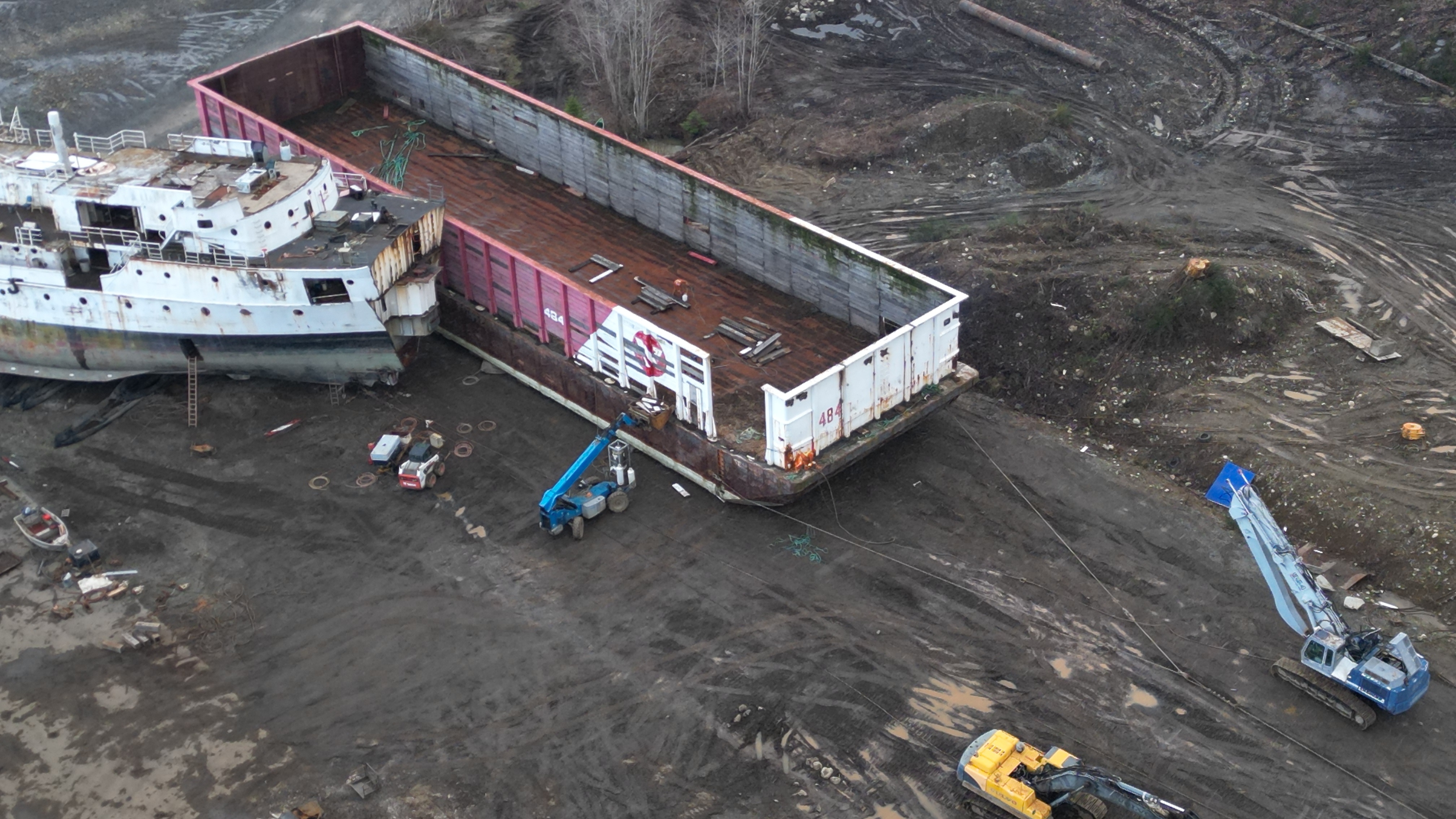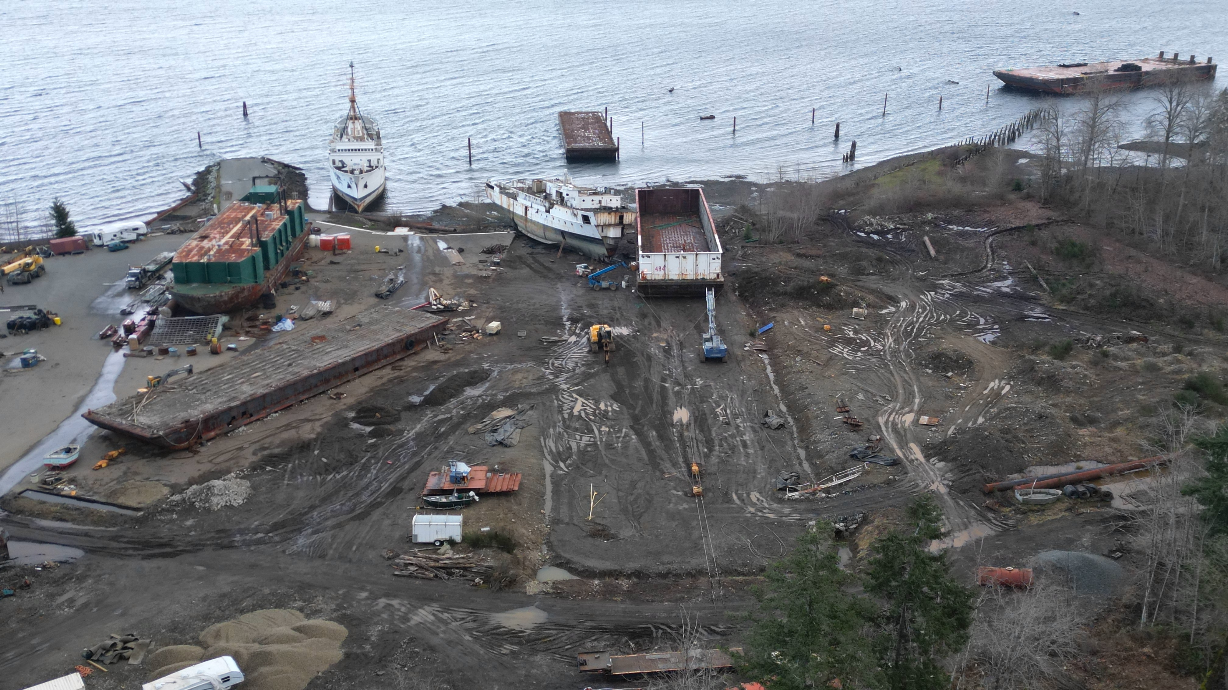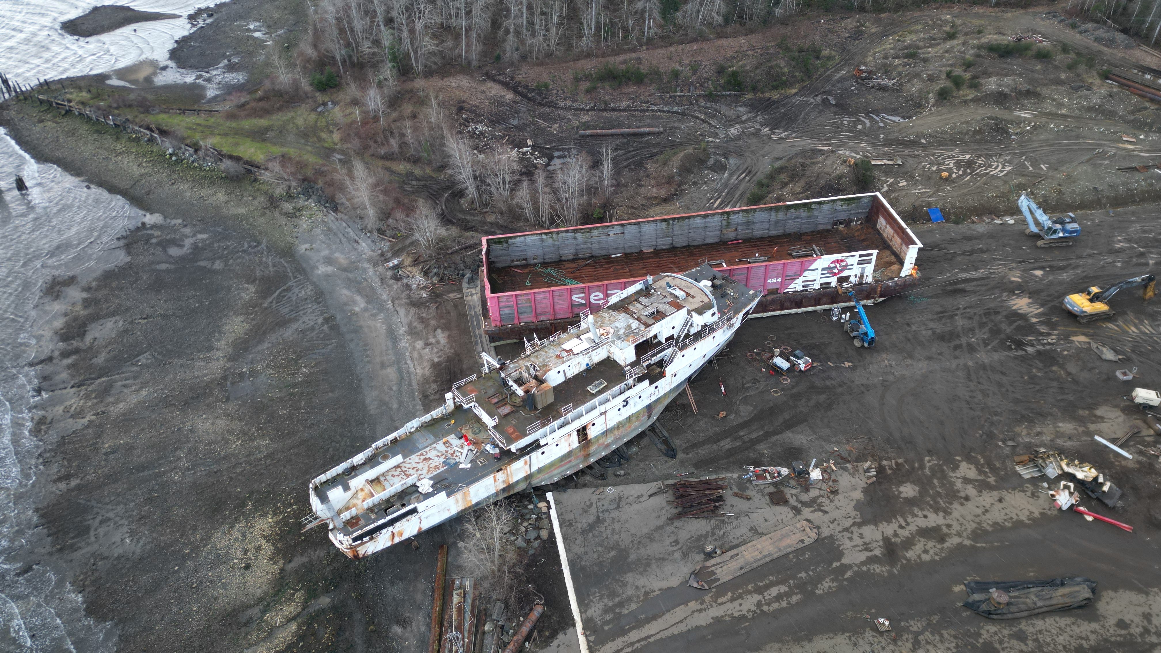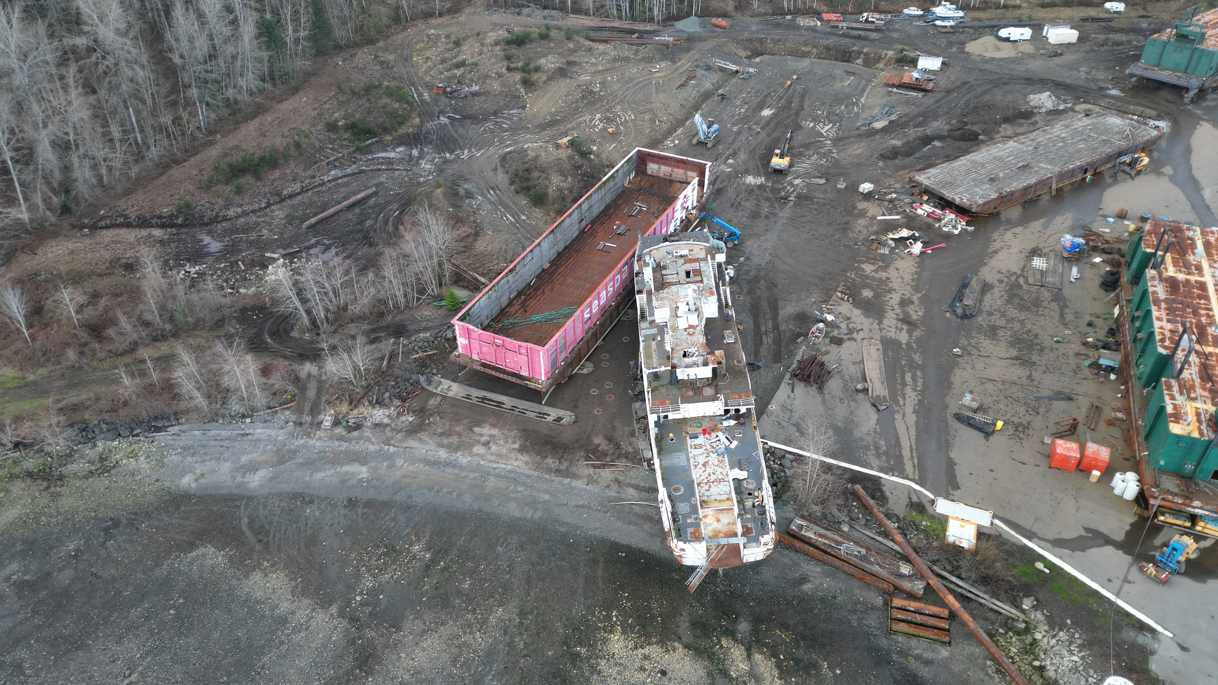 Area A Director, CVRD, Deep Water Recovery LLC Union Bay, Deep Water Recovery Ship Breaking in Union Bay, Government, Union Bay Ship Breaking Barge barely above the high tide mark and Deep Water Recovery is torching it apart where it sits on soil beside the beached asbestos laden Miller Freeman Date: February 26, 2024Author: allthingsunionbay 0 Comments Short flight as it started to snow. Share this: Click to share on X (Opens in new window) X Click to email a link to a friend (Opens in new window) Email Click to share on Facebook (Opens in new window) Facebook Click to print (Opens in new window) Print Like Loading...