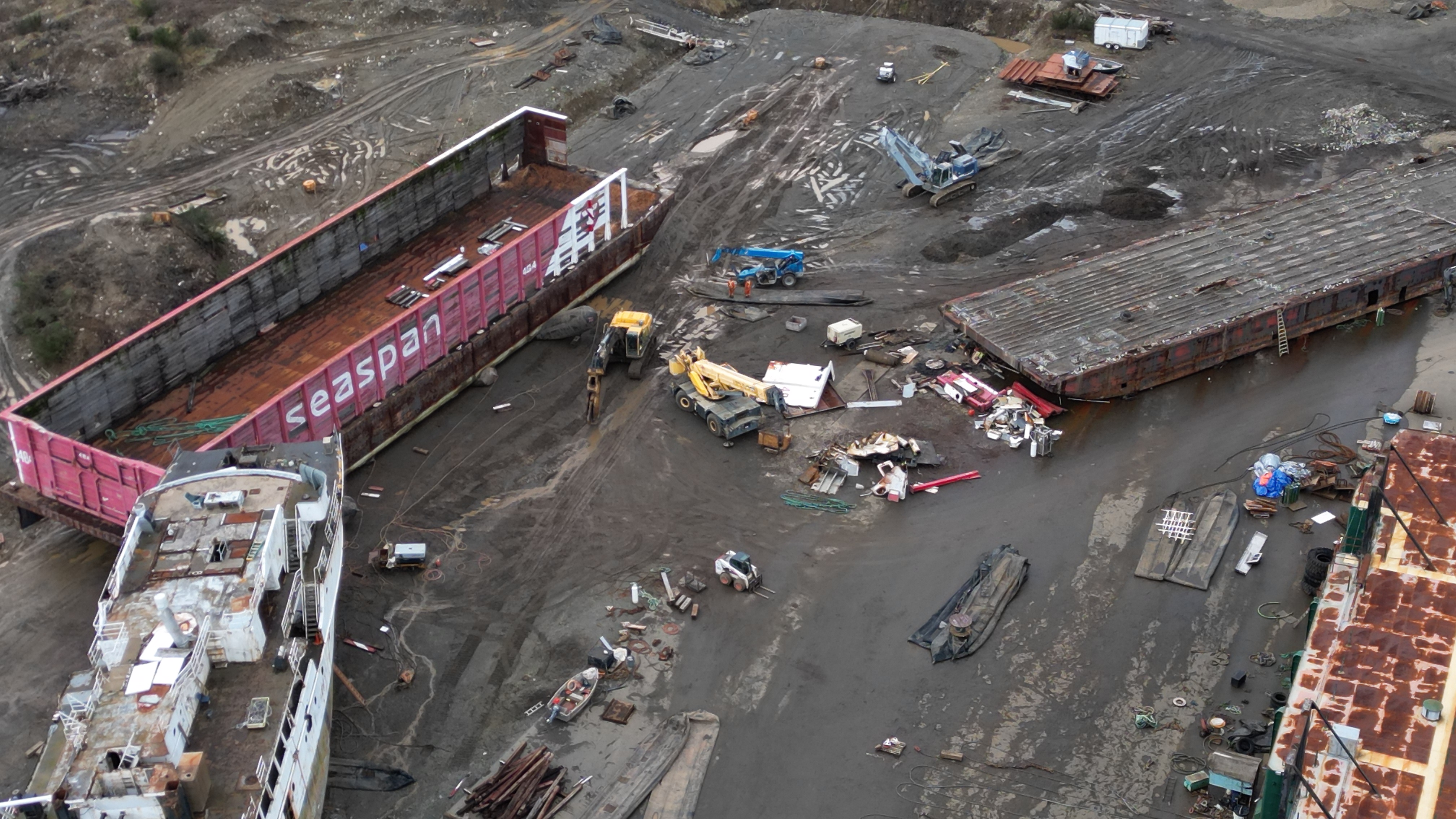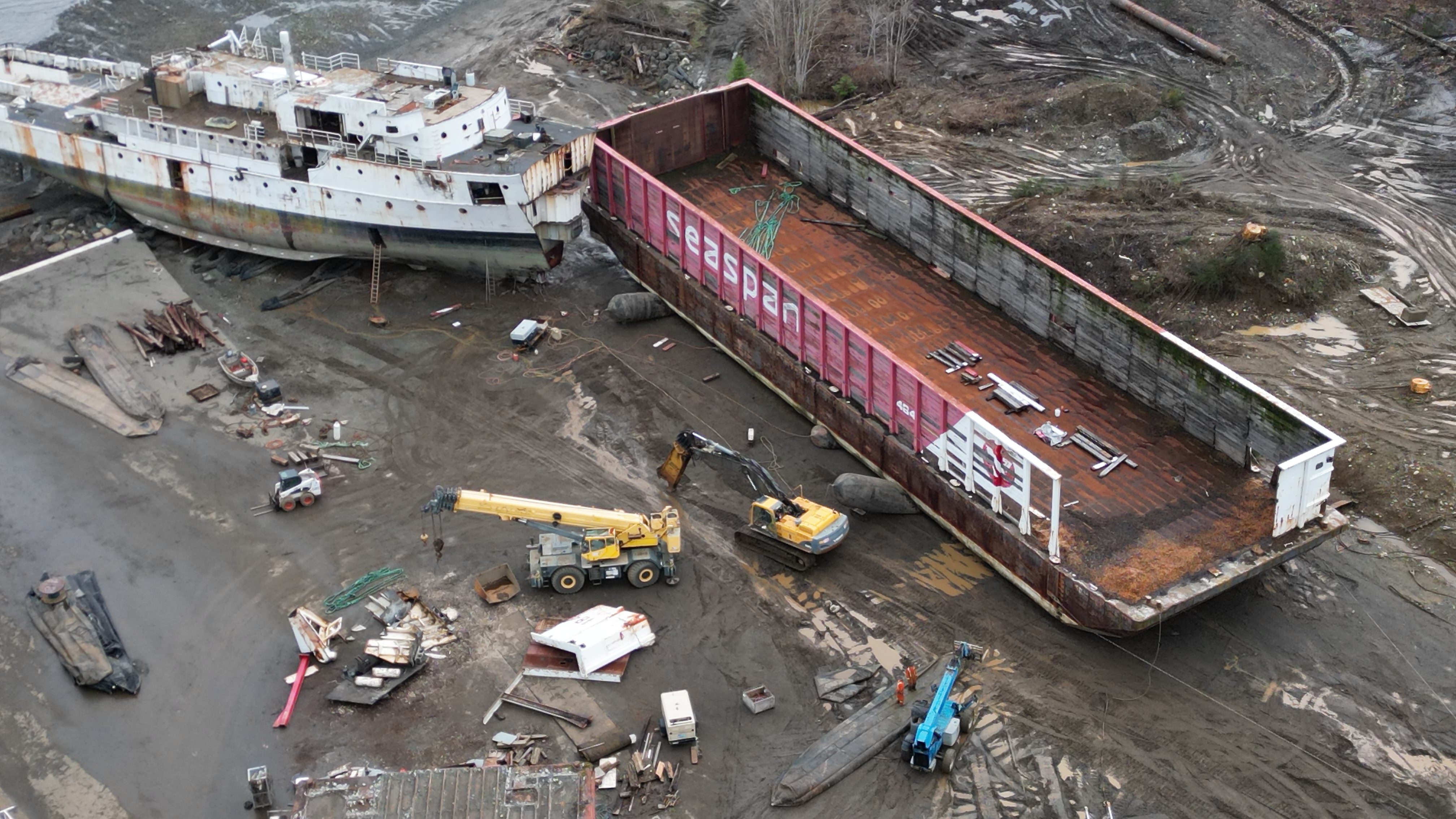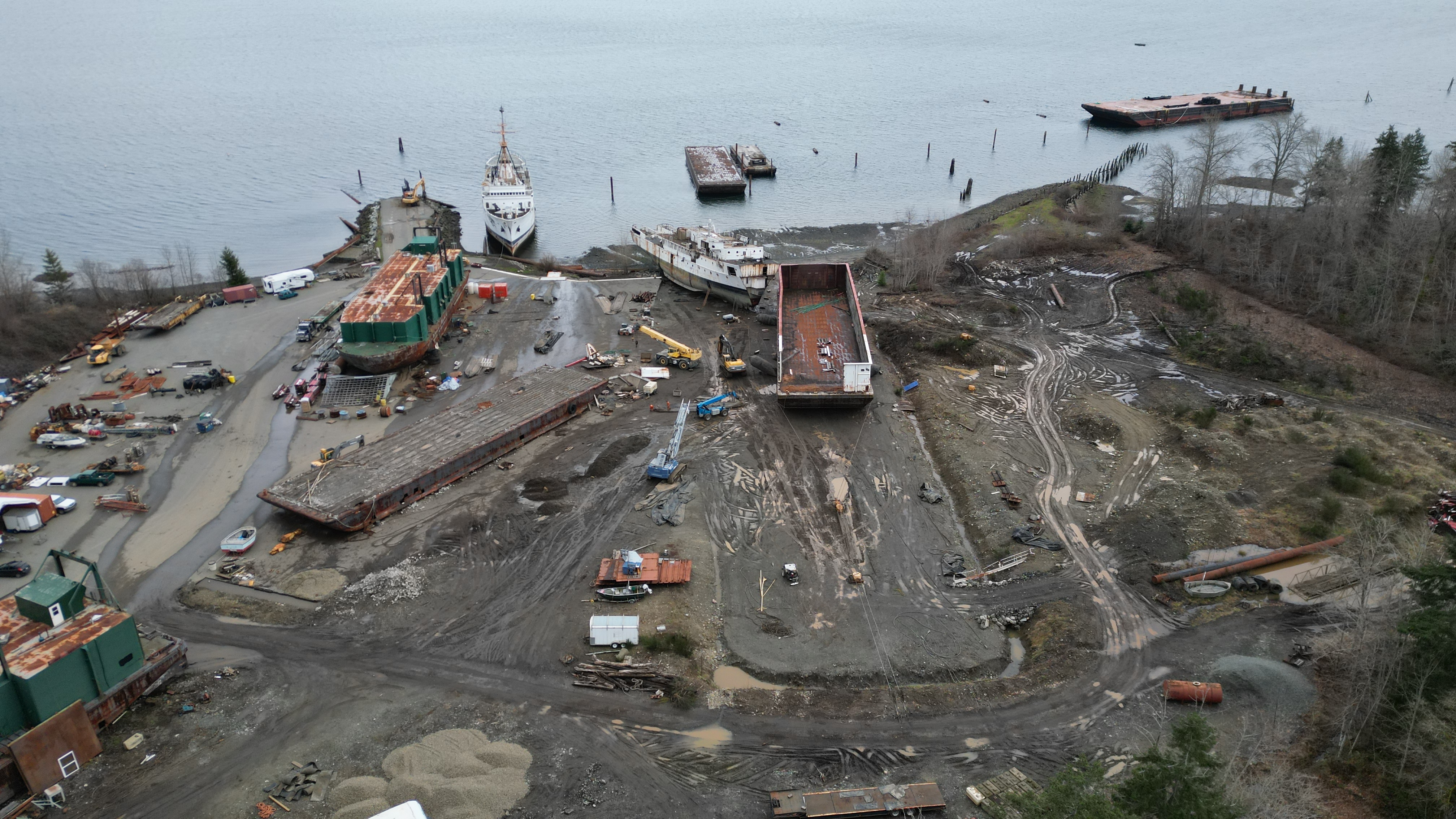 Another barge arrived in the last 48 hrs. 2 pieces of equipment out on the spit.