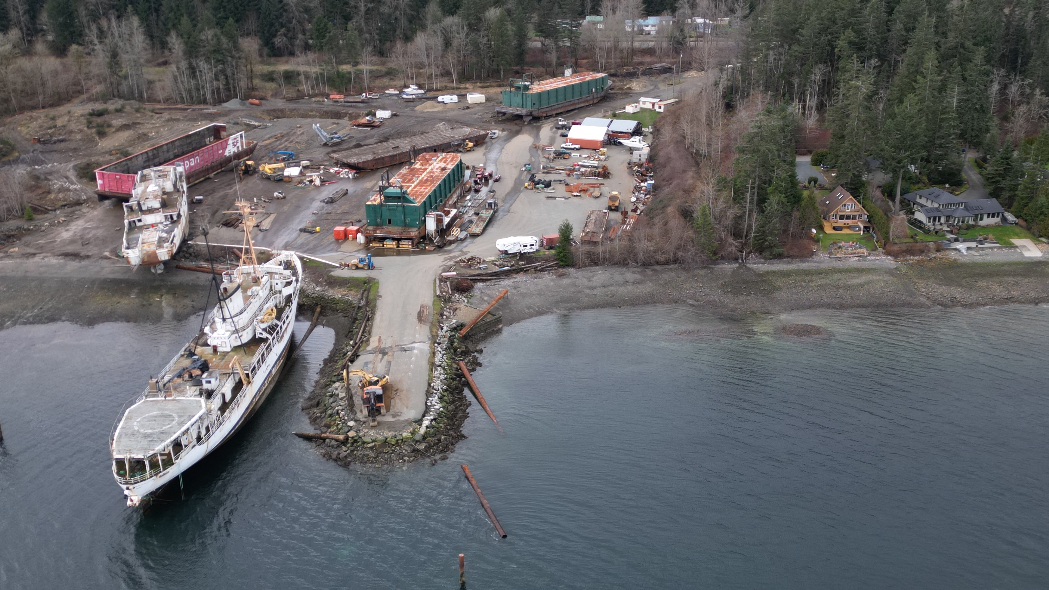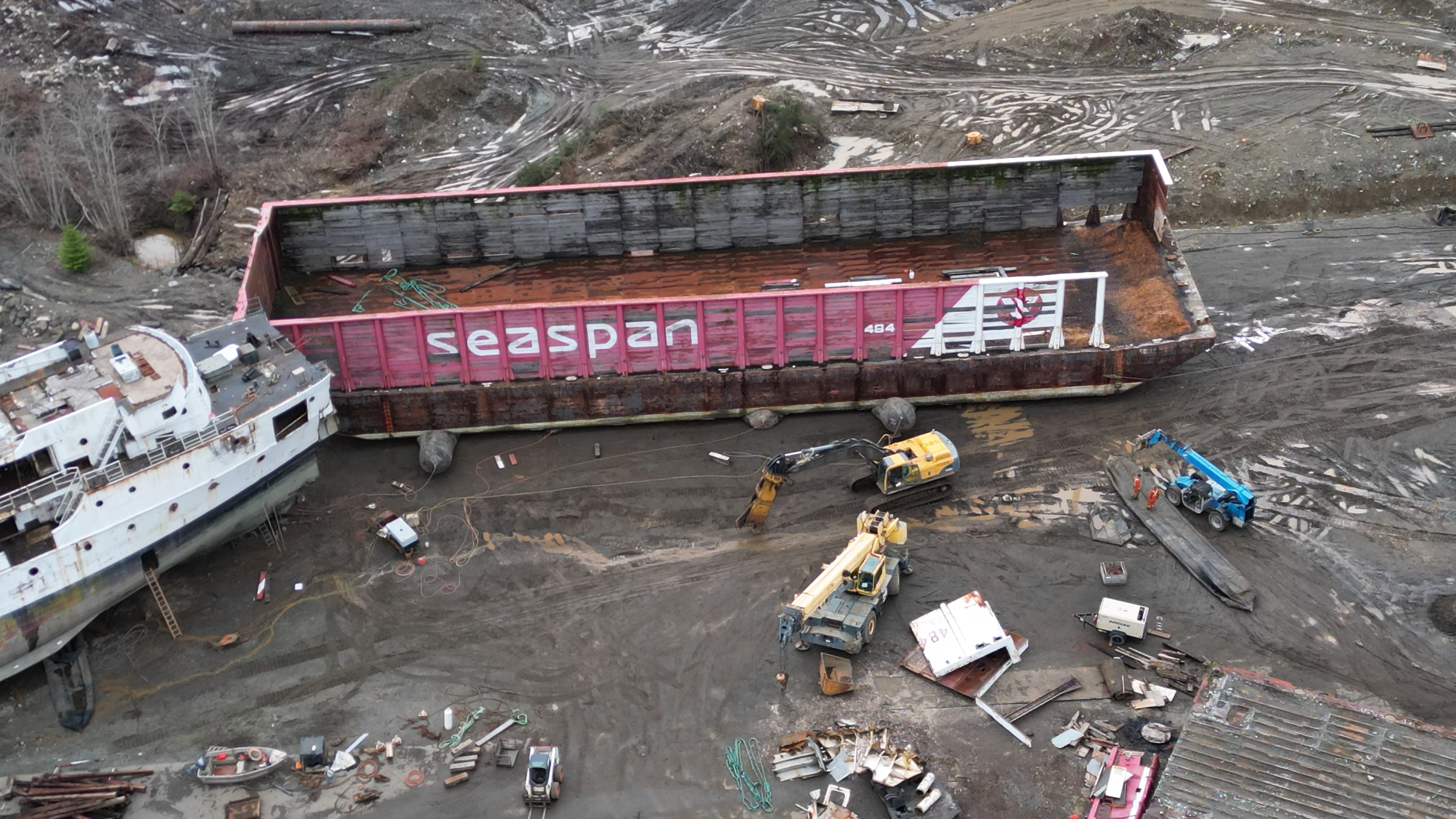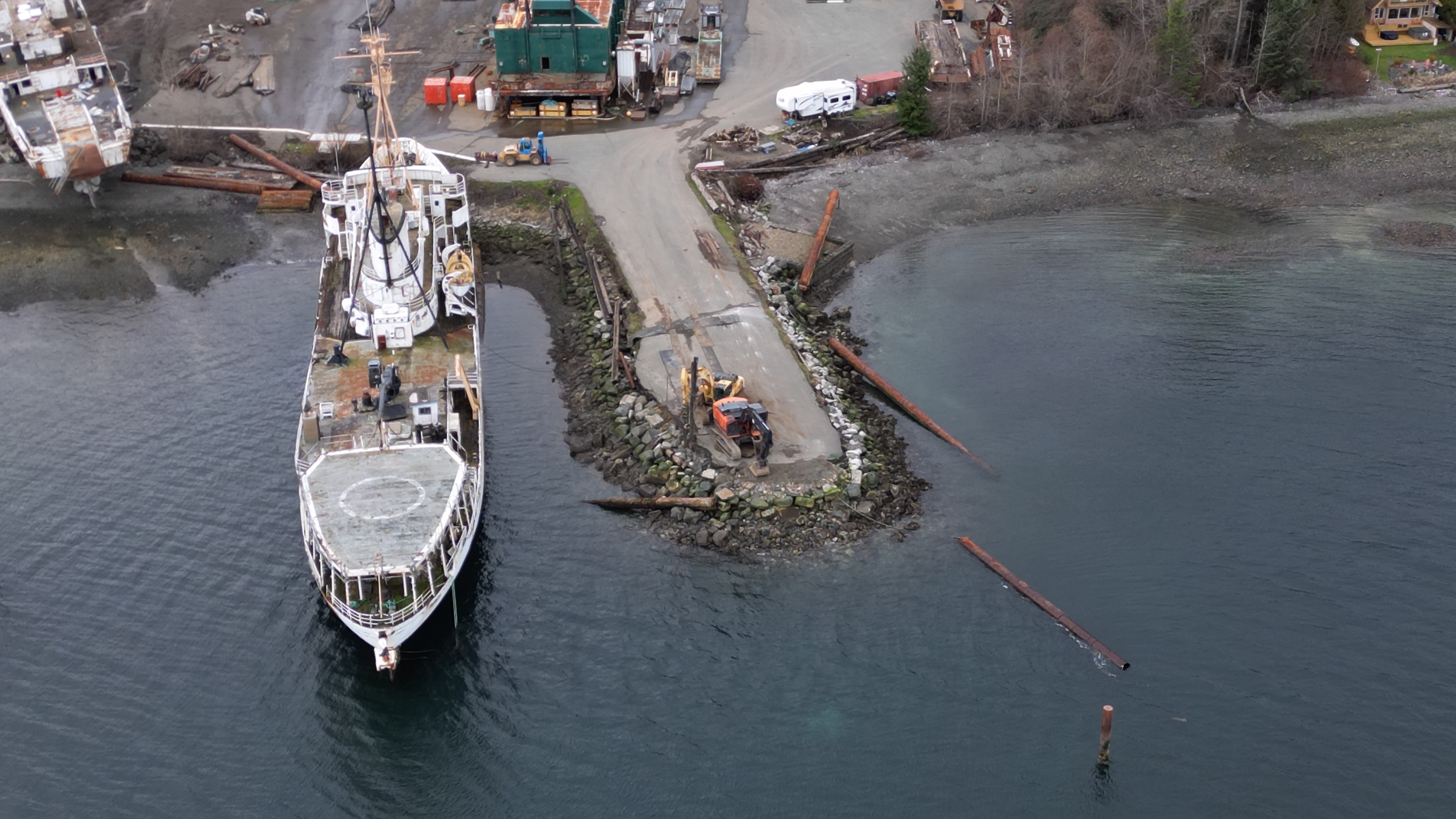 Another barge arrived in the last 48 hrs. 2 pieces of equipment out on the spit.
