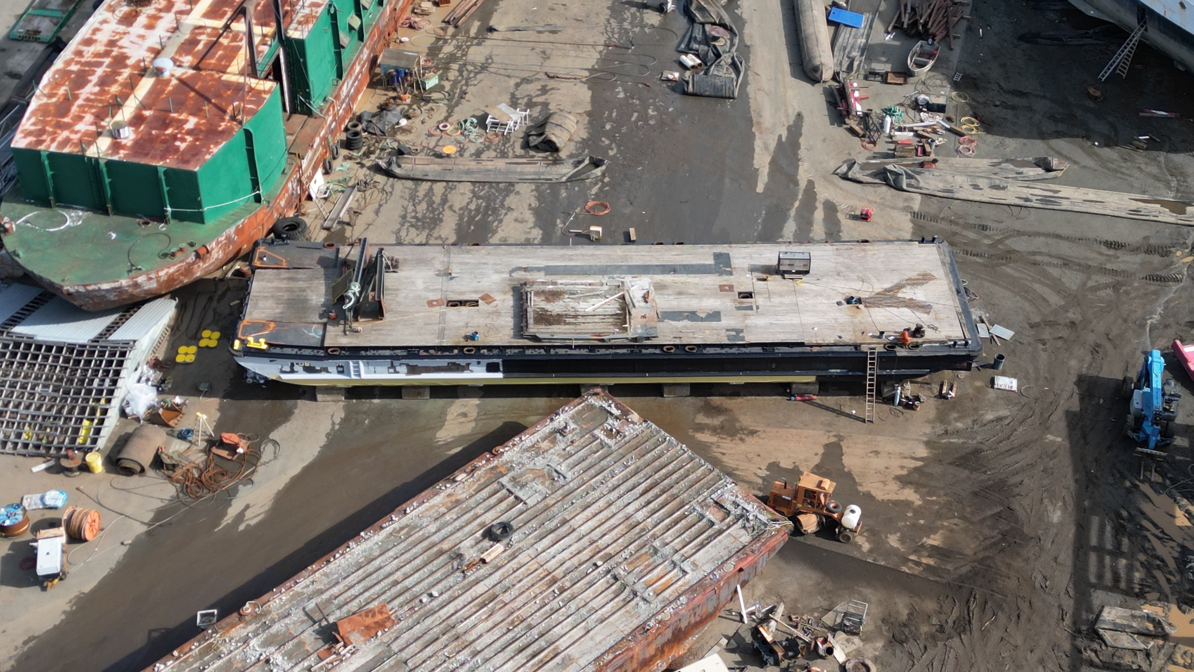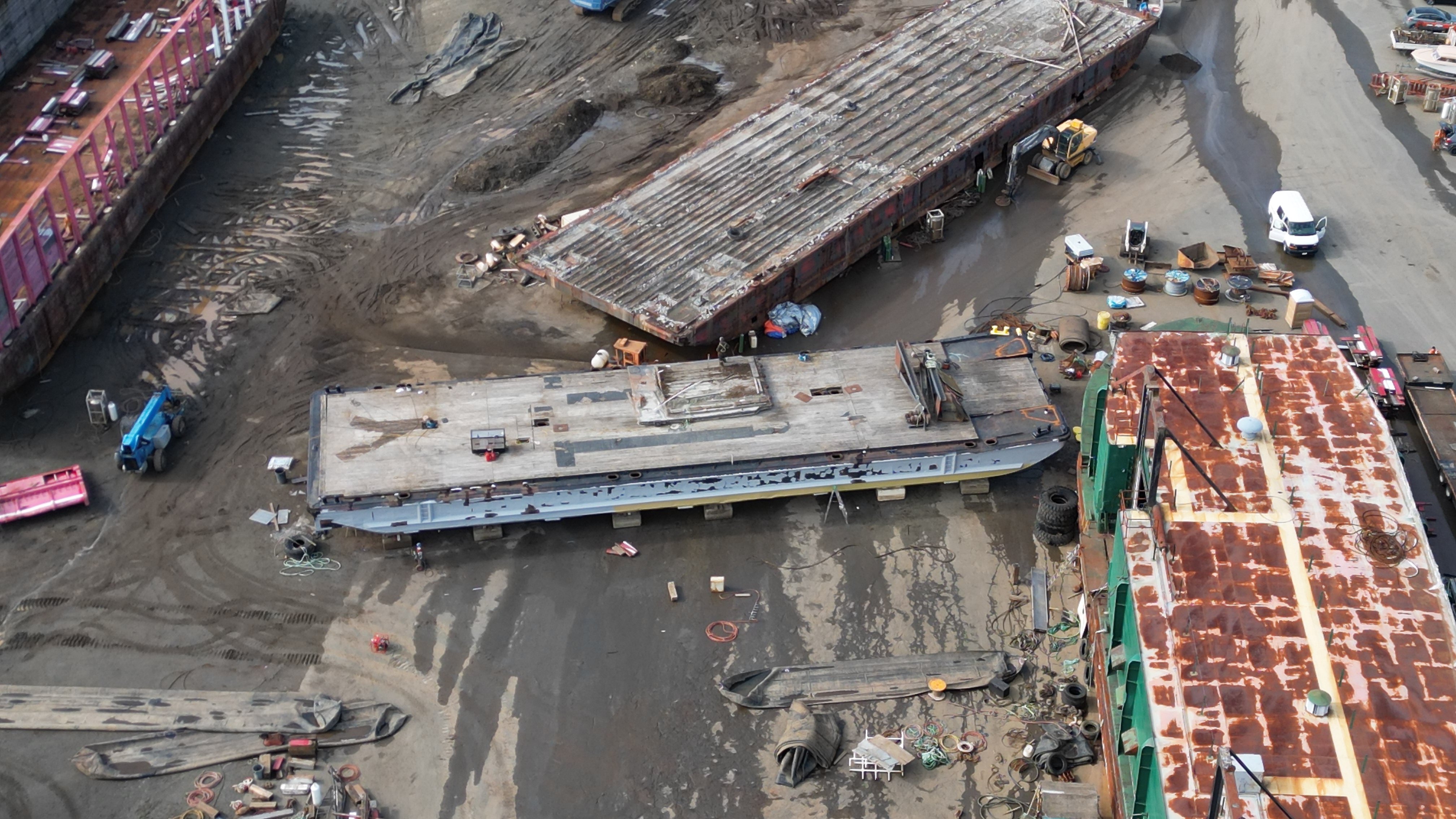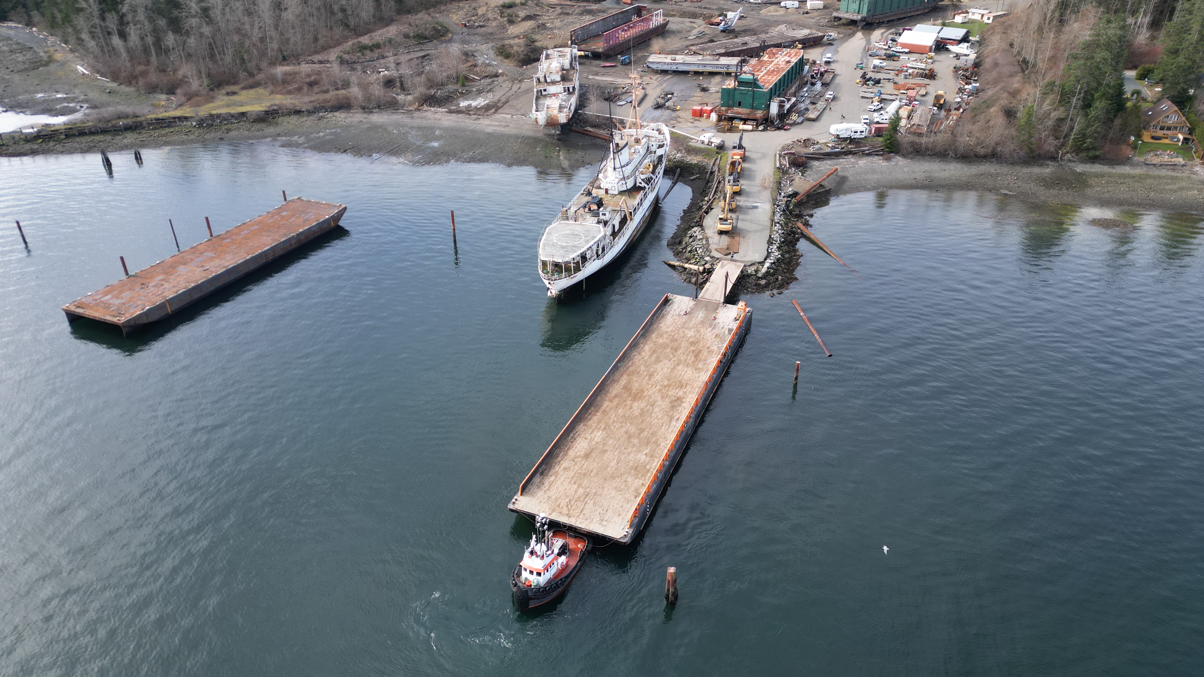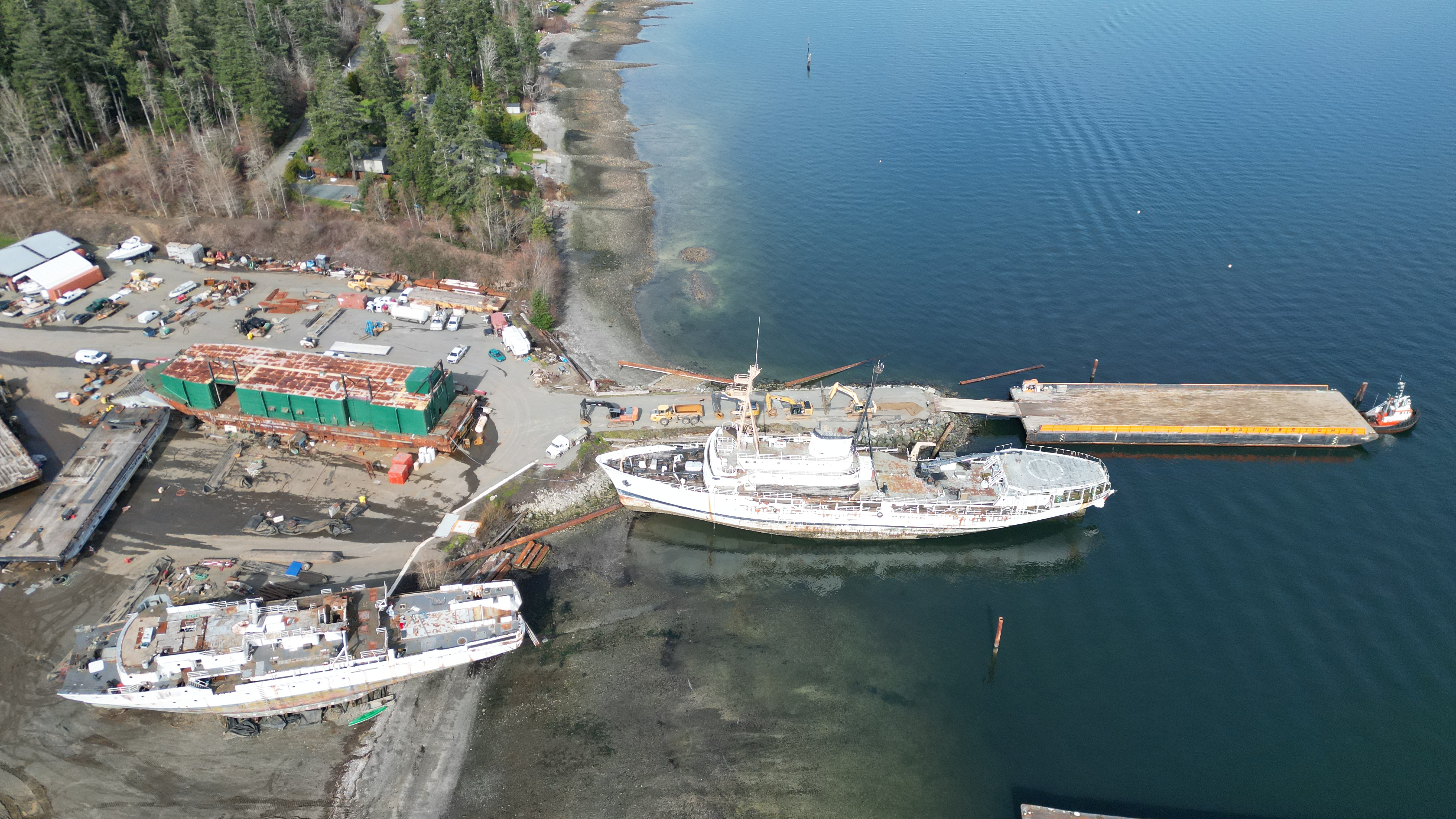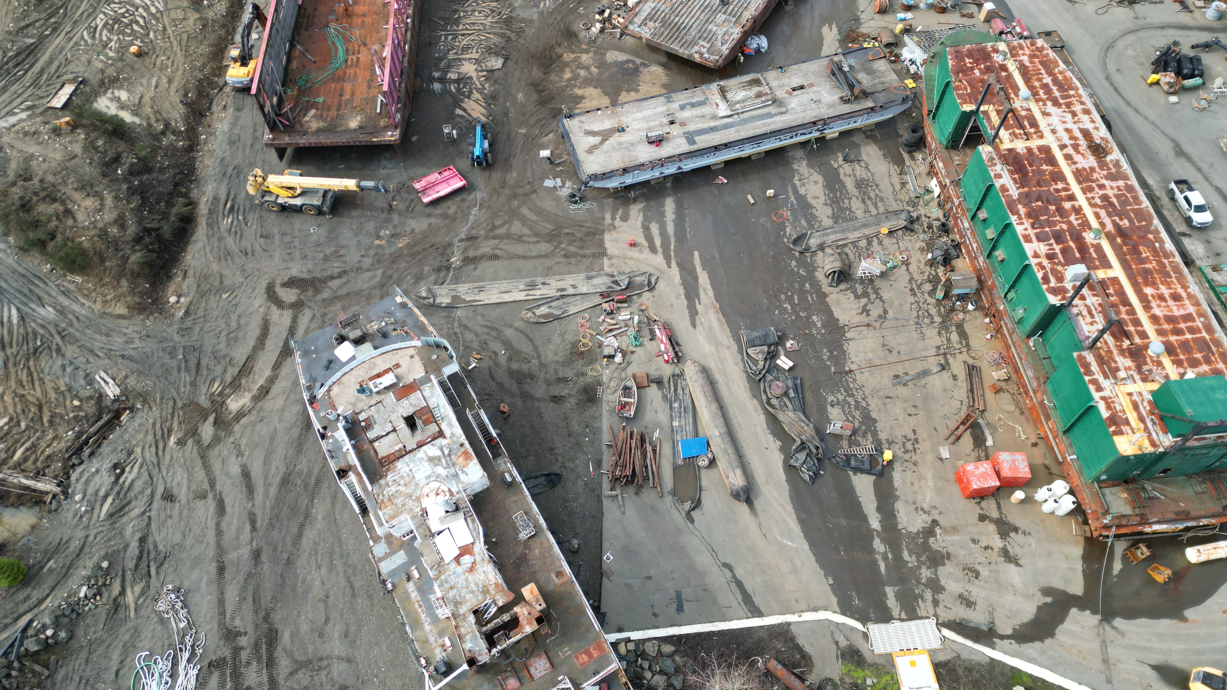 Area A Director, CVRD, Deep Water Recovery LLC Union Bay, Deep Water Recovery Ship Breaking in Union Bay, Government, Union Bay Ship Breaking Deep Water Recovery ship breaking Mar. 13, 2024. Tug, barge, fuel trucks and heavy equipment. Date: March 13, 2024Author: allthingsunionbay 0 Comments Applying black paint/primer with a roller on the deck of the barge up on concrete blocks. Filtration system – rectangle at the bottom right of photo. Share this: Click to share on X (Opens in new window) X Click to email a link to a friend (Opens in new window) Email Click to share on Facebook (Opens in new window) Facebook Click to print (Opens in new window) Print Like Loading...