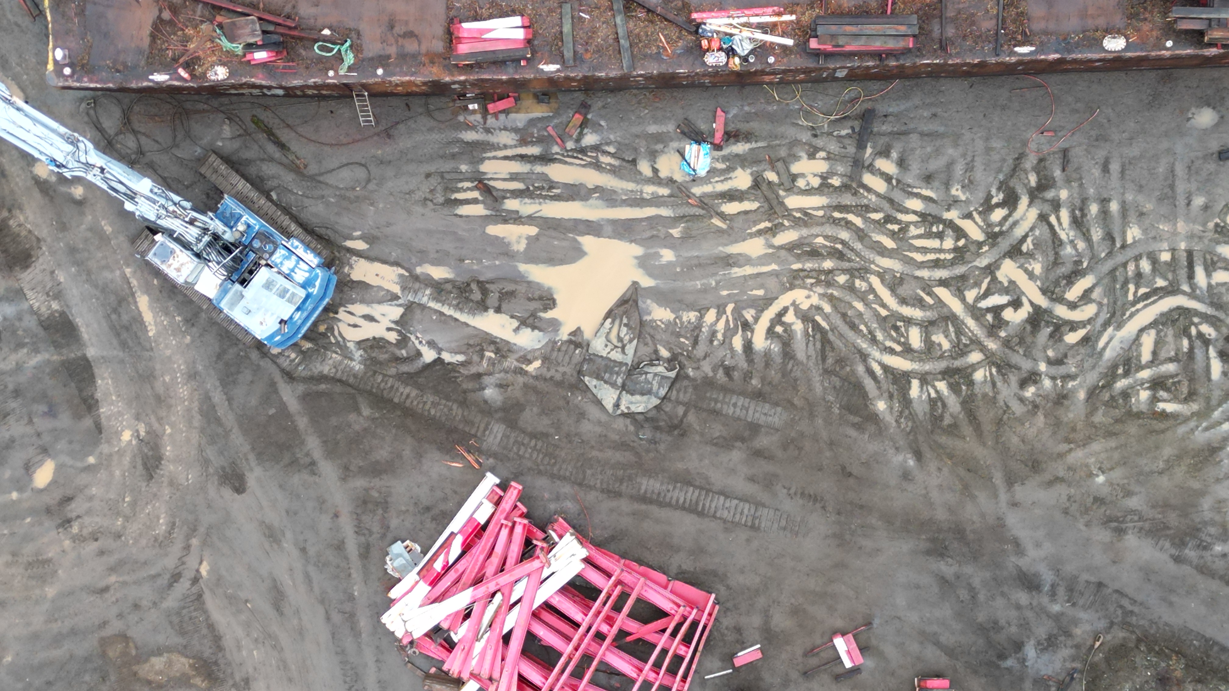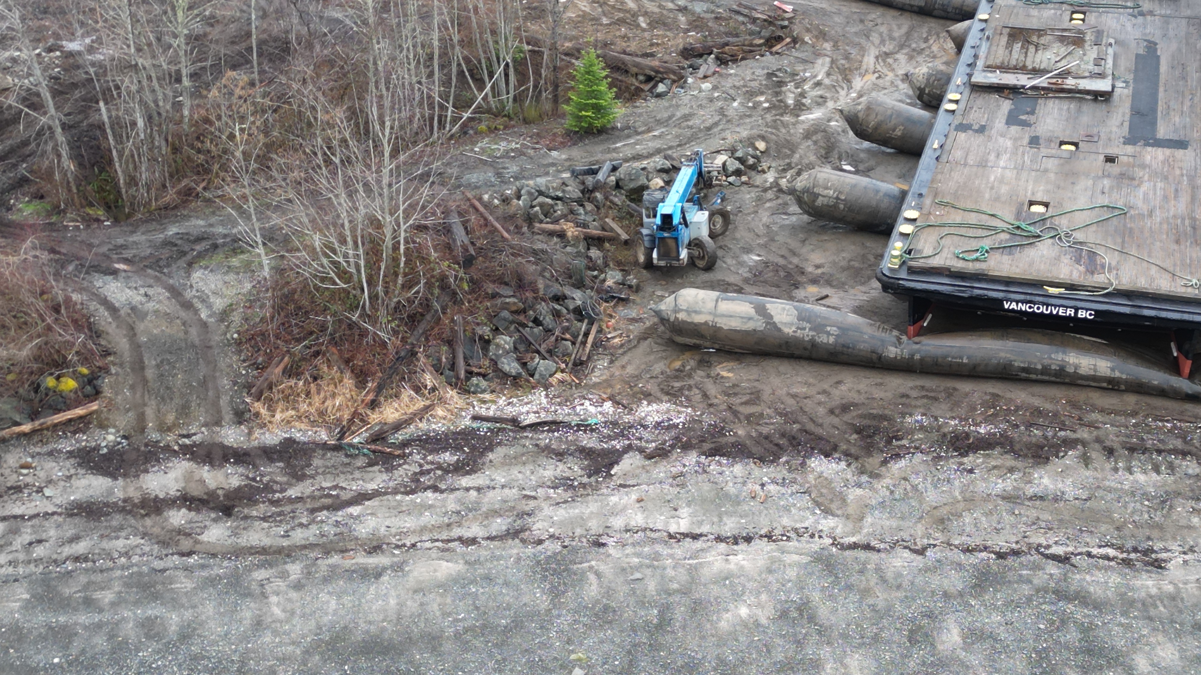 Looks like they’re waiting for high tide. Just ignore what’s embedded in the soil and/or runs down into the pristine waters of Baynes Sound.
