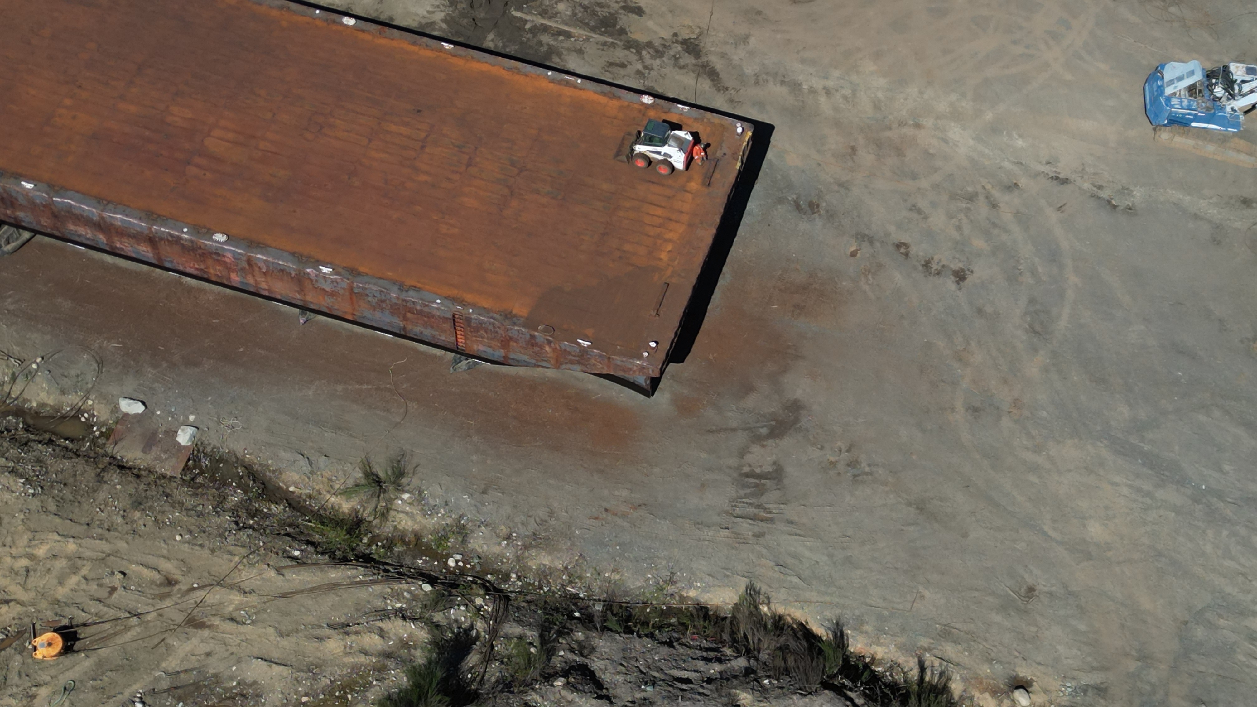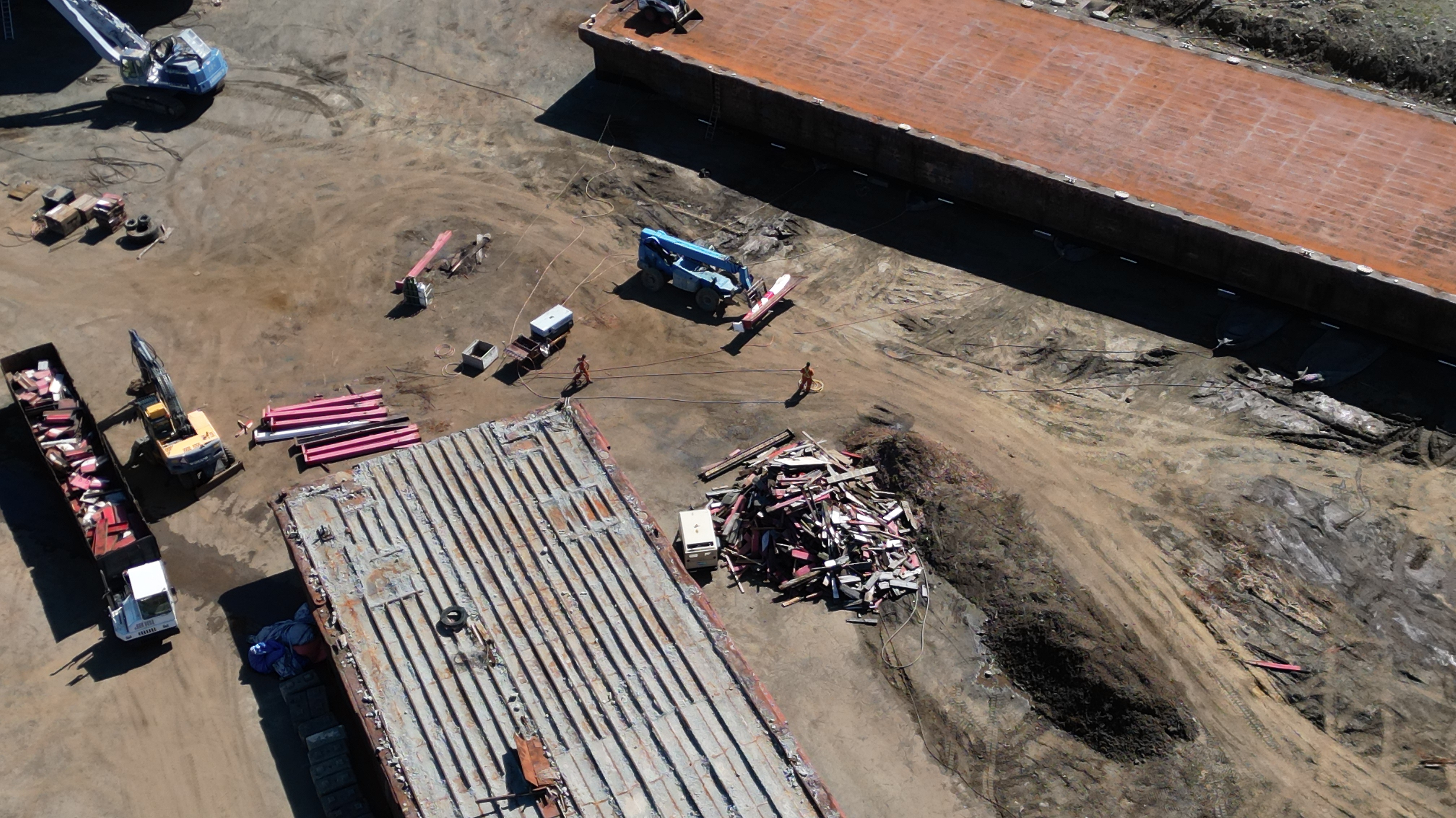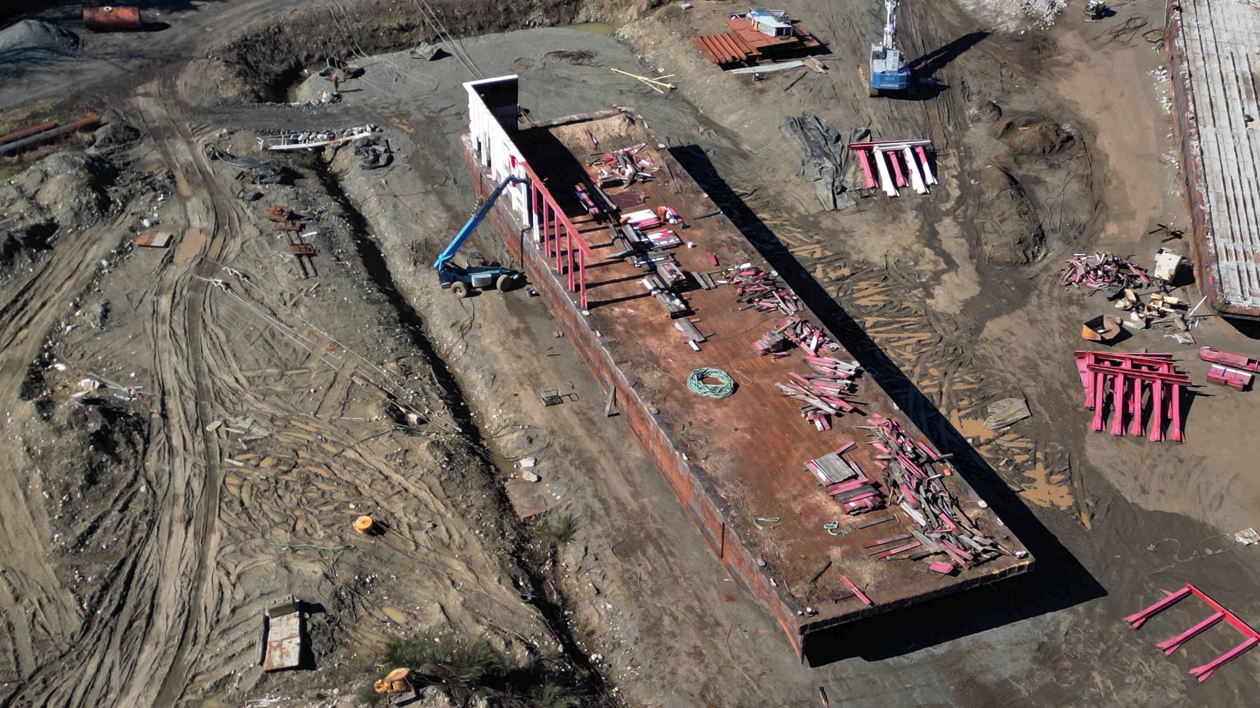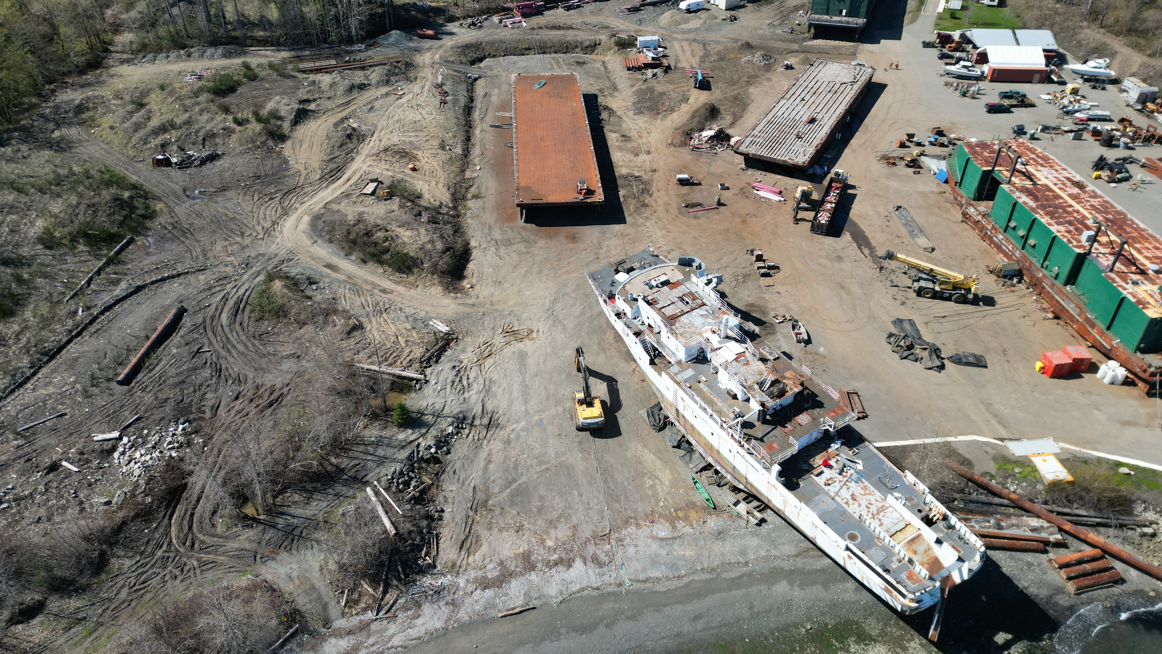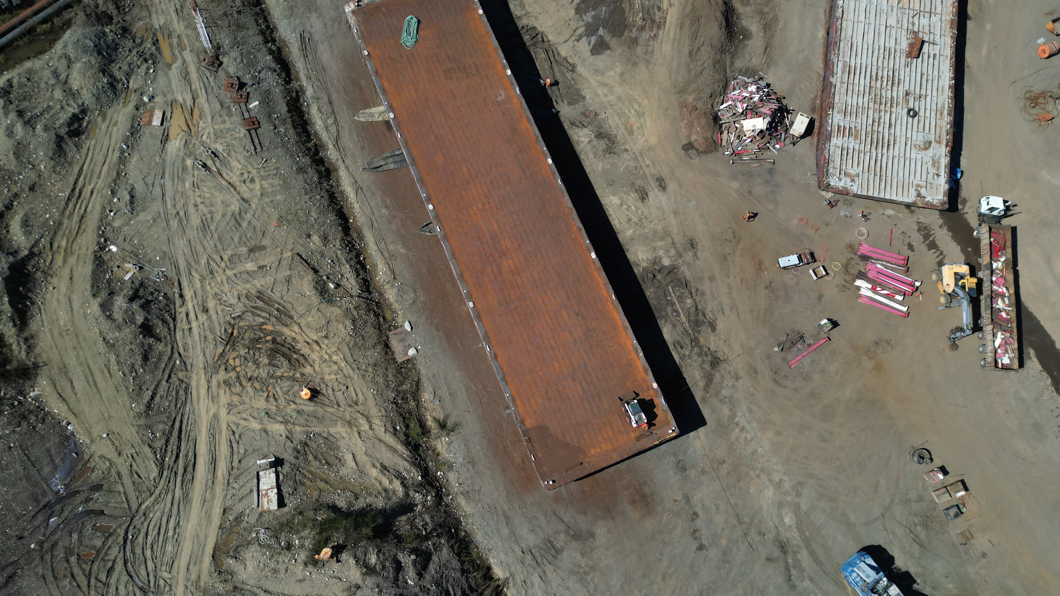 He says the barges are dismantled on land, on a sealed asphalt surface, and that the barges are “basically big square, steel boxes” that don’t contain any hazardous materials. He says they have never taken apart any sort of motorized vehicle.