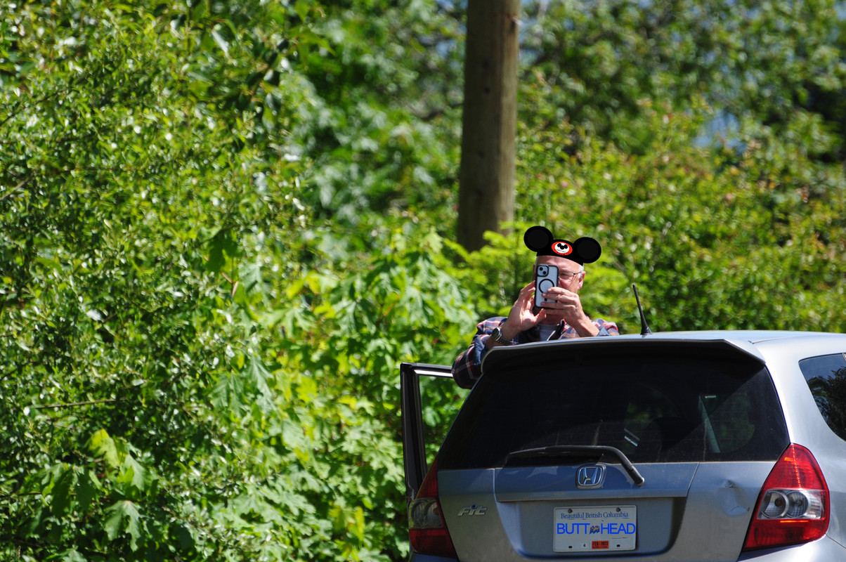 Ha ha. What a butthead. Is he using one eye while taking a picture with a cell phone?