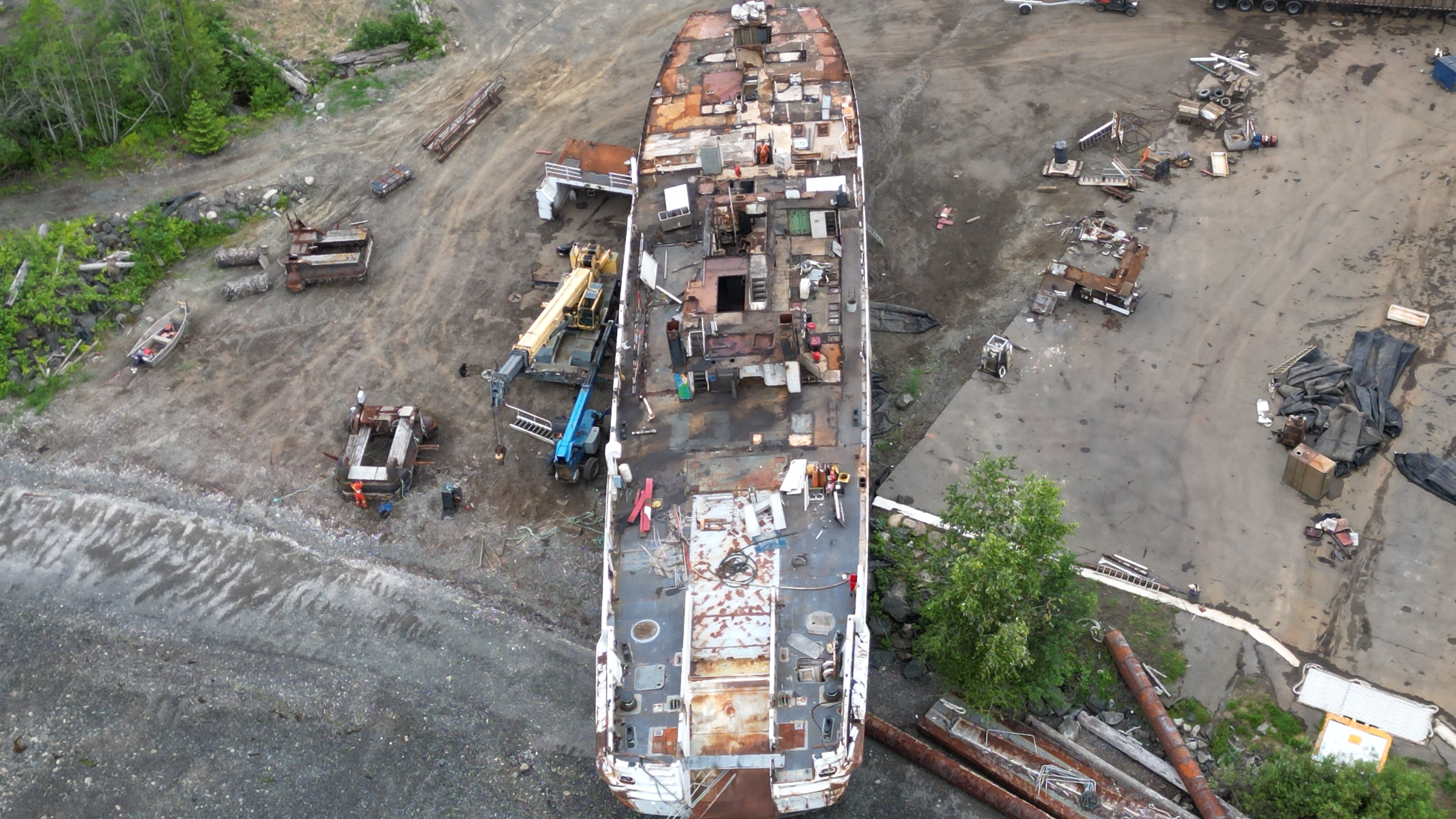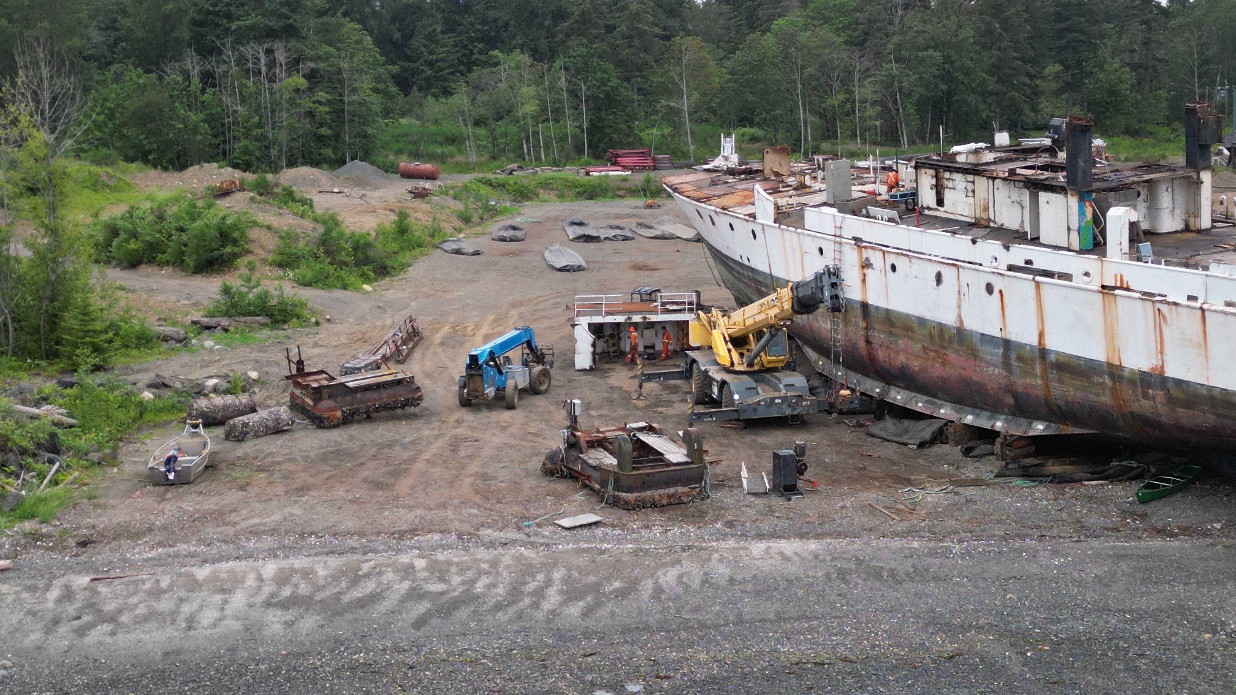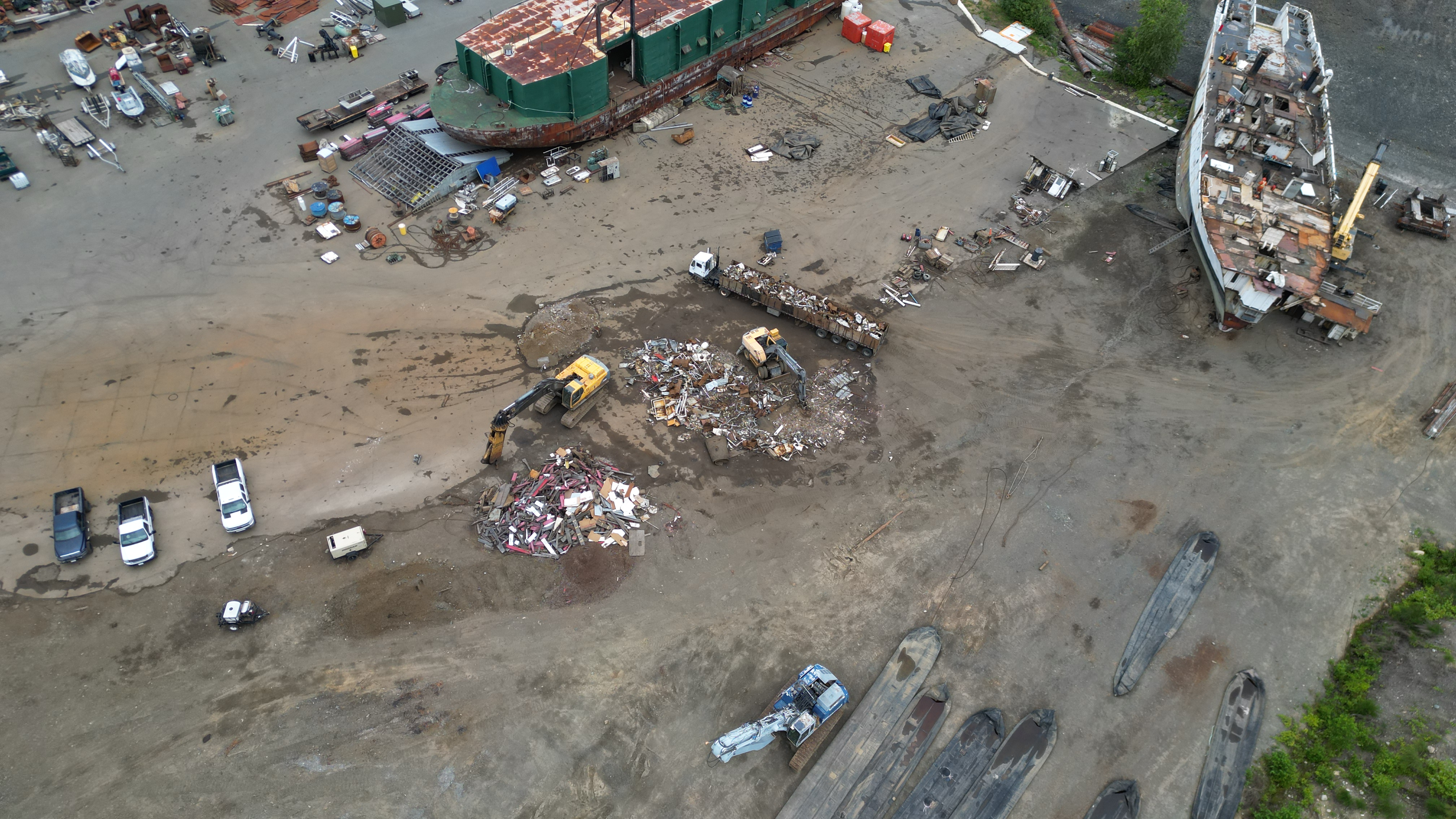 The Miller Freeman was 215 ft long before they removed a portion on the front. It’s a good scale to show I’m much further away than 100 ft (per drone rules) from any workers.