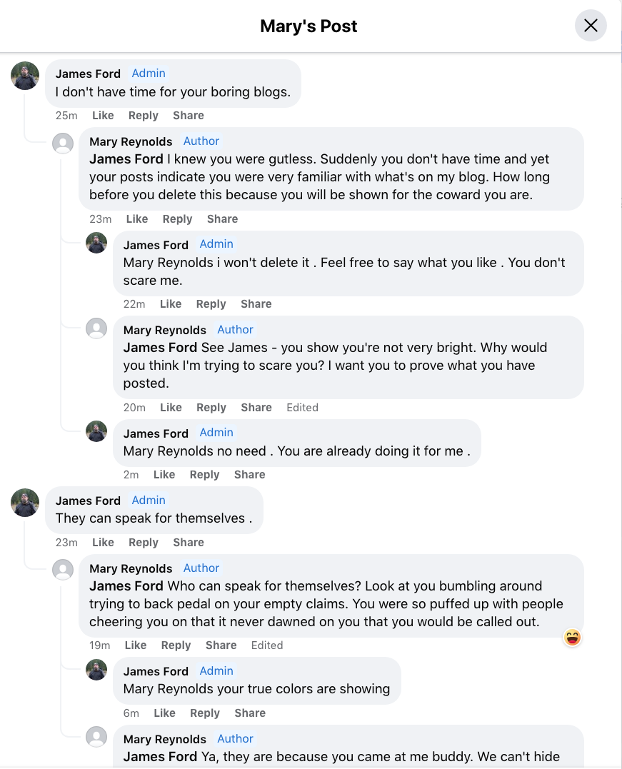 Within minutes this mouthpiece started backpedaling. After all the shit he posted about me, he suddenly didn’t have time. So puffed up with himself and the idiot peanut gallery praising him that it never entered his mind that he would ever be called on it.