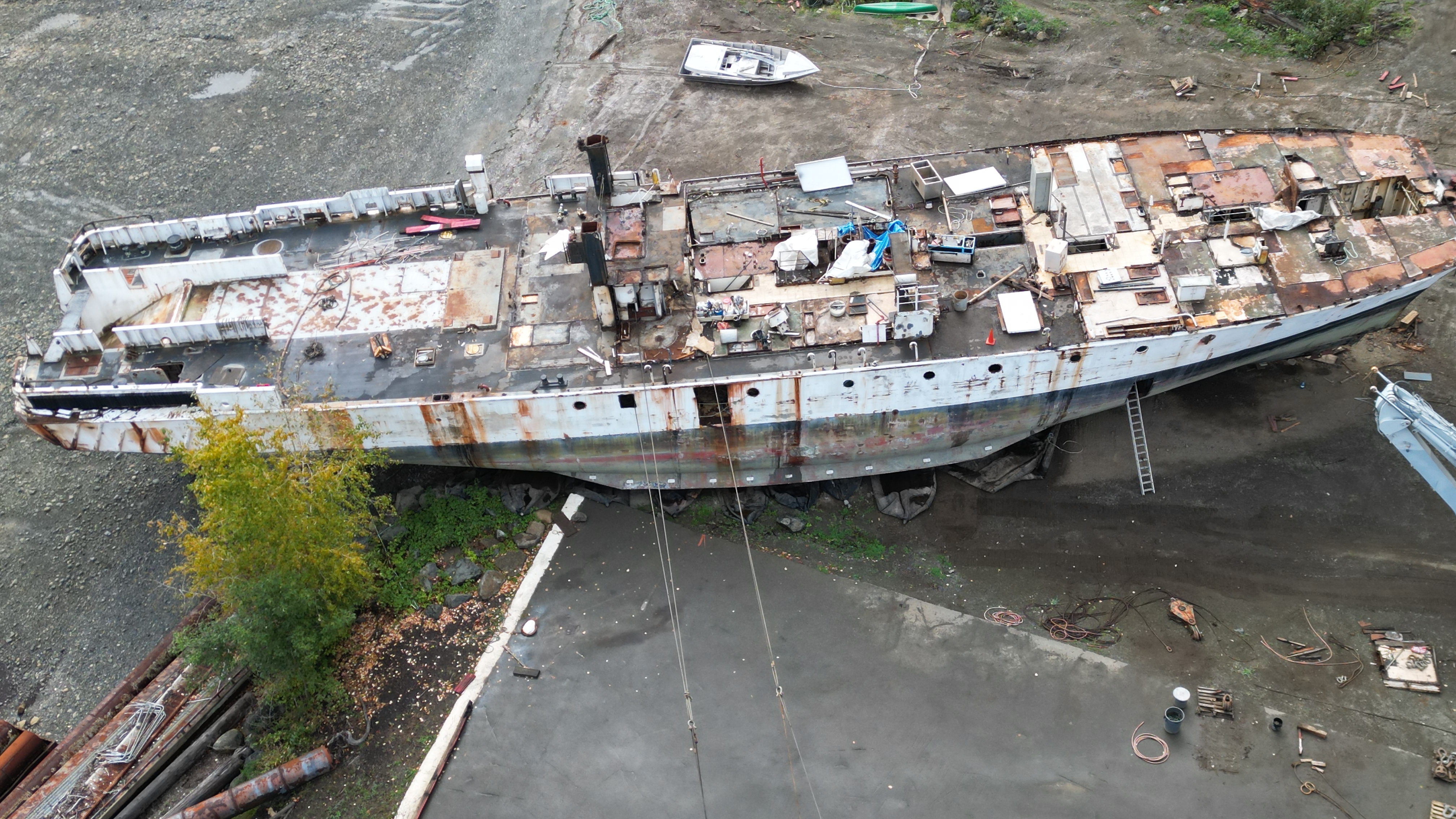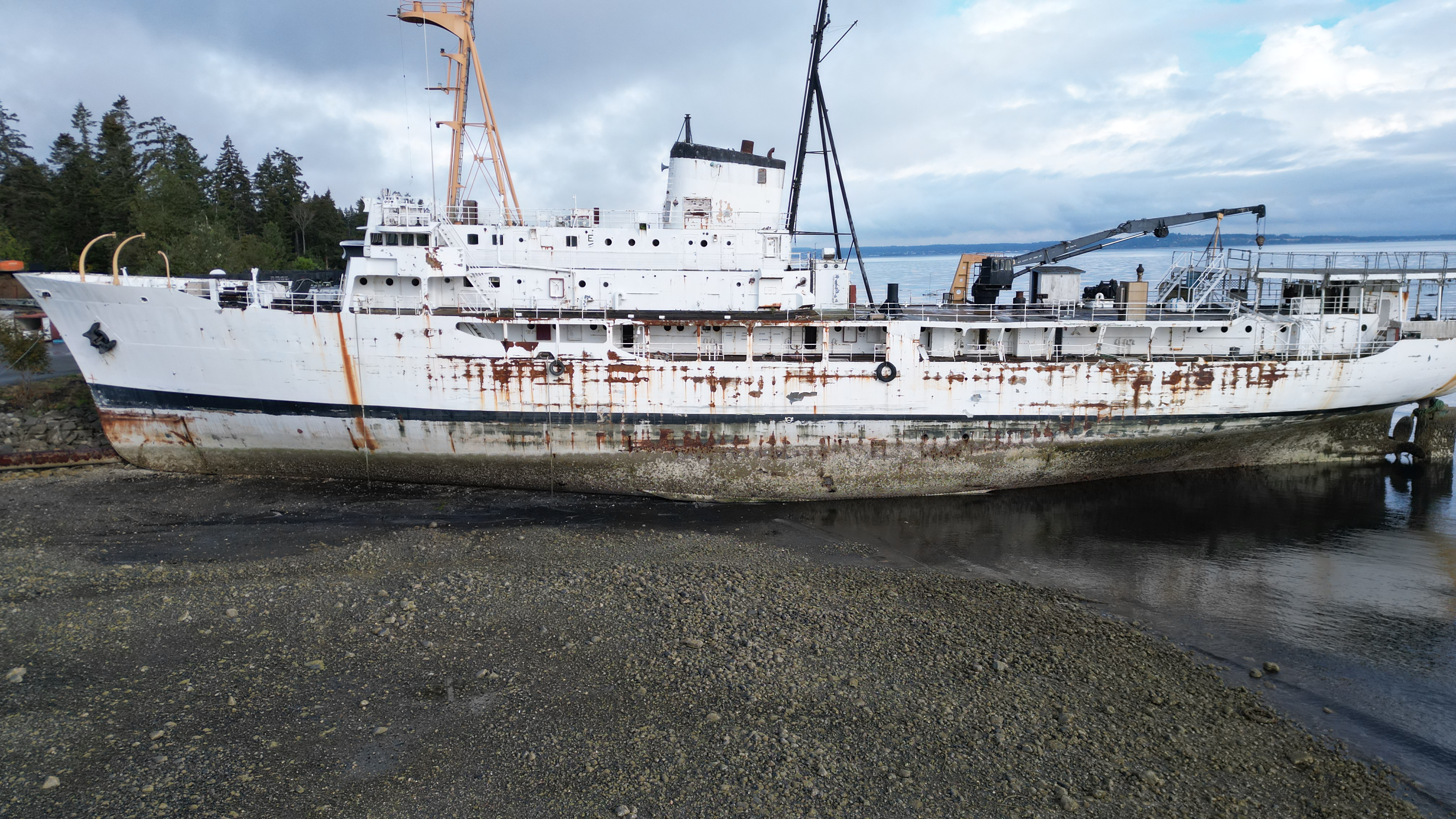 Jurisich is claiming the Surveyor, below, has a hull like a barge – doesn’t look like a flat bottom to me – looks the same as the beached Miller Freeman.