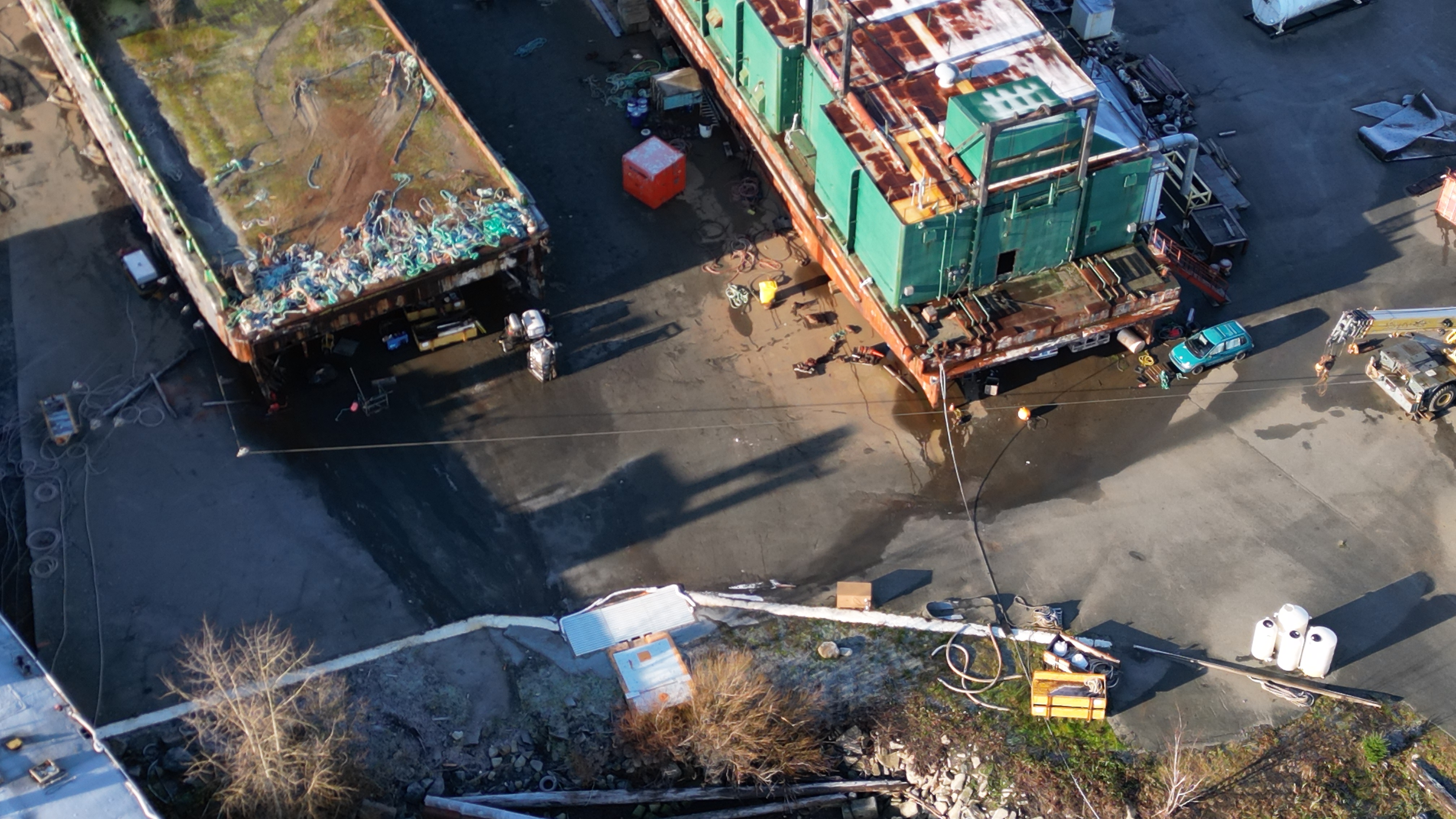 I don’t always make a post with Deep Water Recovery videos. All the videos are here: https://www.youtube.com/@dronevideos1617/videos. Looks like they are getting things ready on the parked red barge. Ropes visible now. Also, note they could have moved the rust bucket barge completely on asphalt but chose not to, ensuring toxin substances bypass their so called filtration system and enter the soil and marine life.