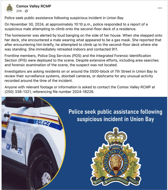 The “Serve and Protect” brigade doesn’t apply equally to all citizens. Look how they responded with Police Dog Services and Forensic Identification Section, etc., and put out the plea for information. Me – not so much – didn’t even rate a mention their Facebook page. https://allthingsunionbay.com/2024/07/10/my-car-vandalized-again-july-9-2024-windshield-smashed-passenger-side-windows-smashed-punctured-tire-stole-security-camera-and-spray-painted-cunt-on-the-passenger-side-of-my-vehicle-anyone/
