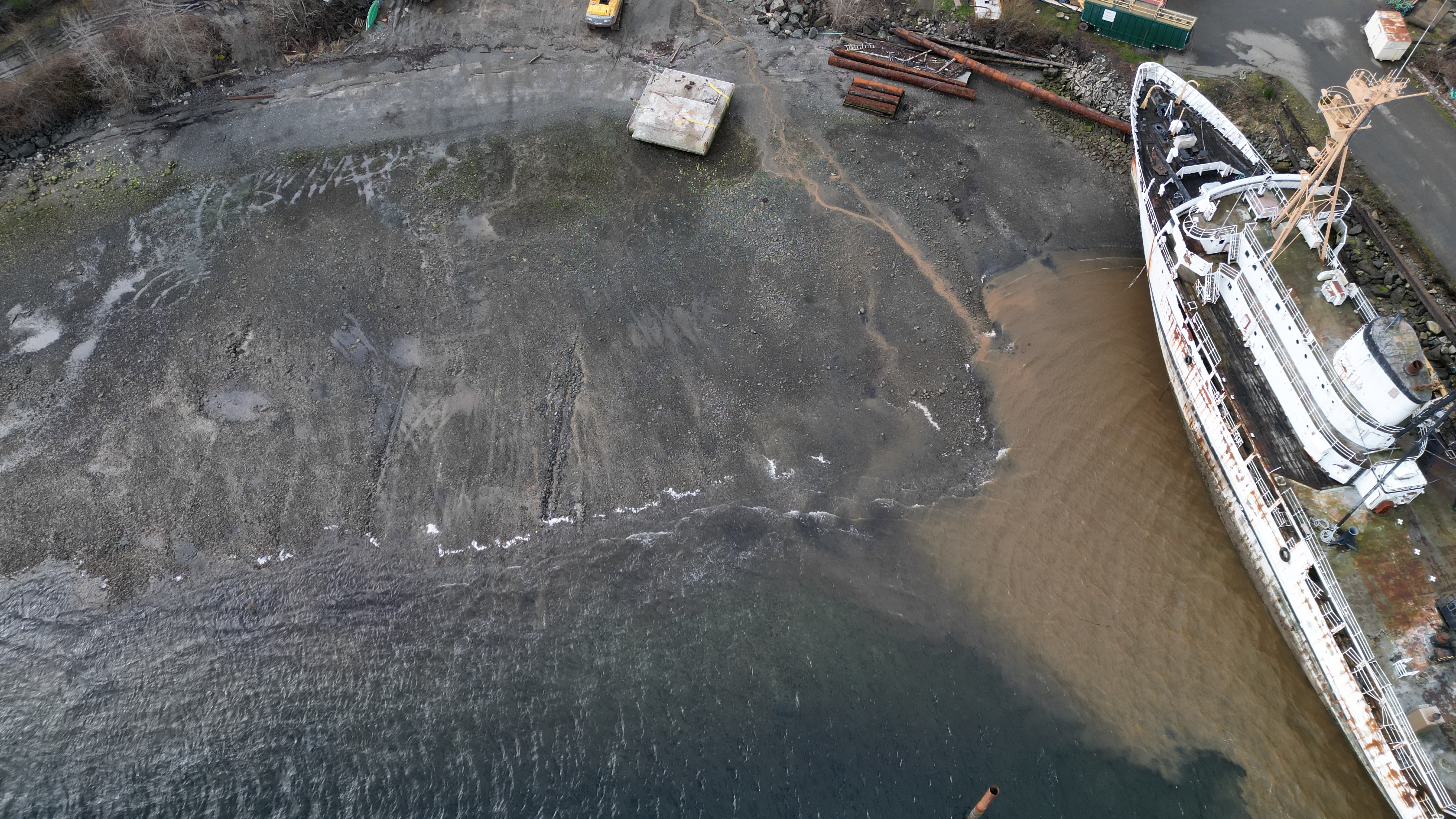 Is Dynamic Steel Repair actually going to paint the barge they’ve been working on right where it sits on the edge of the asphalt and soil? What kind of company does this willingly, knowing they are straddling the edge of the soil and knowing there is nothing protecting the ocean from what’s introduced from the work being done on their barge?