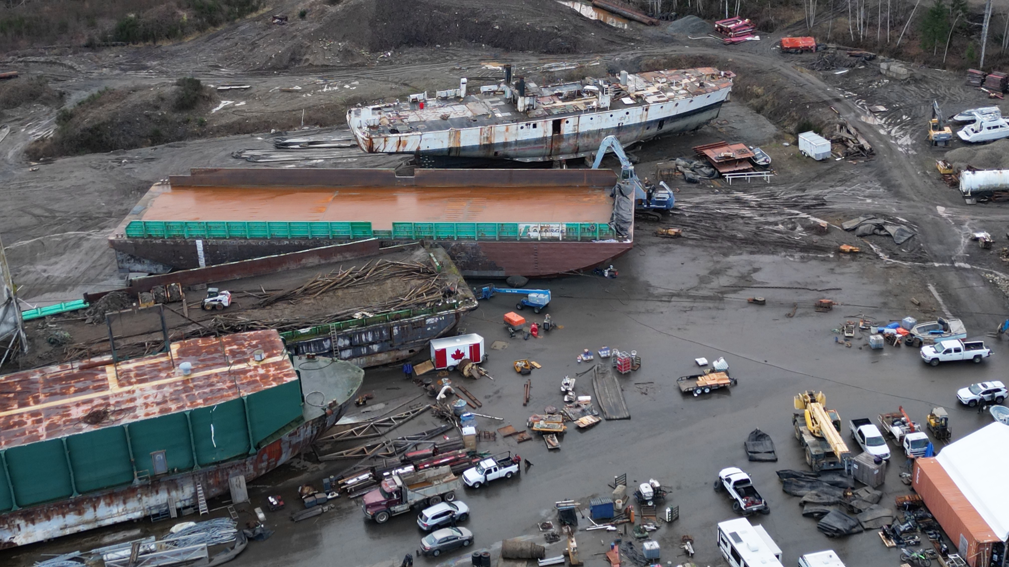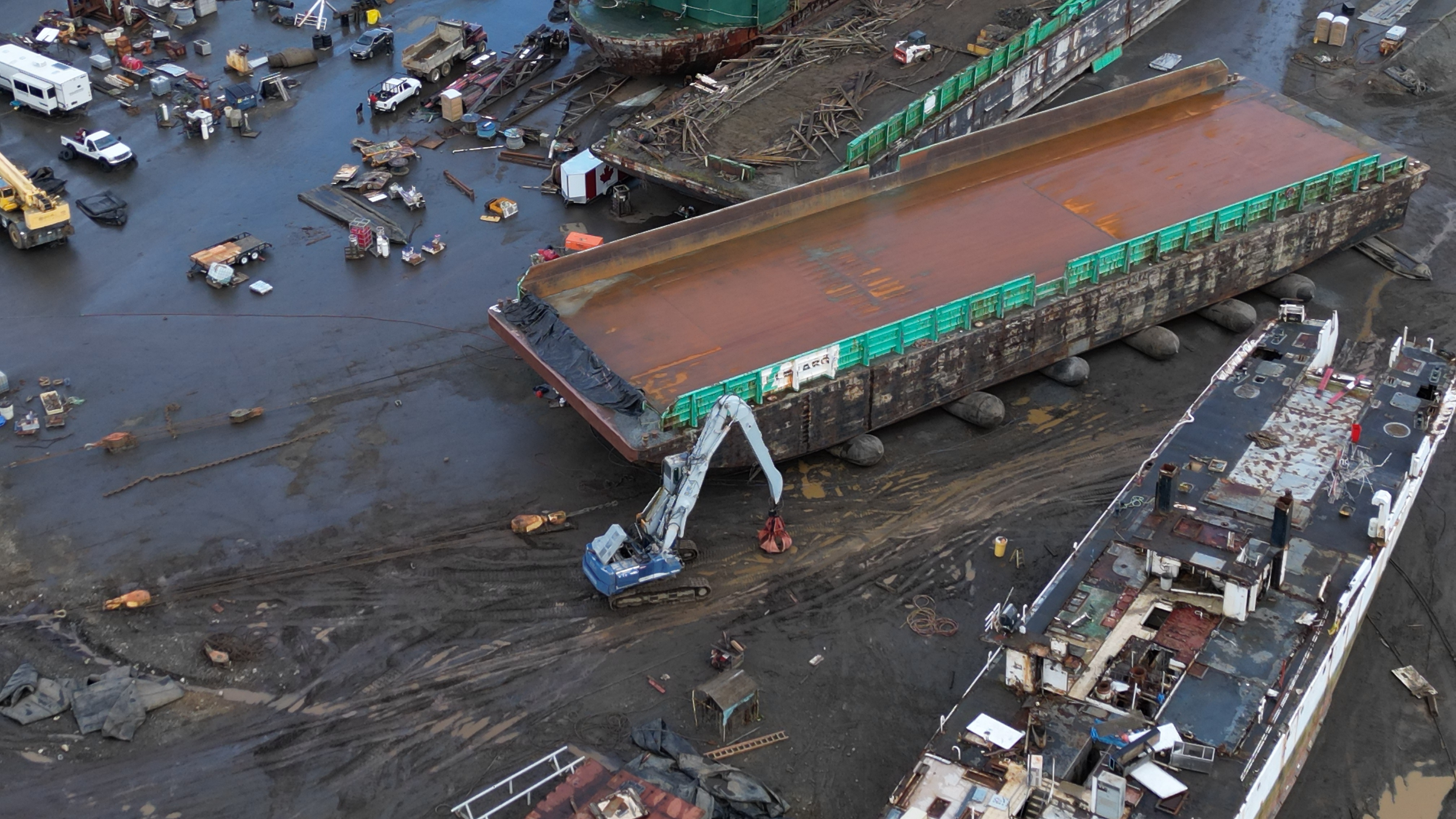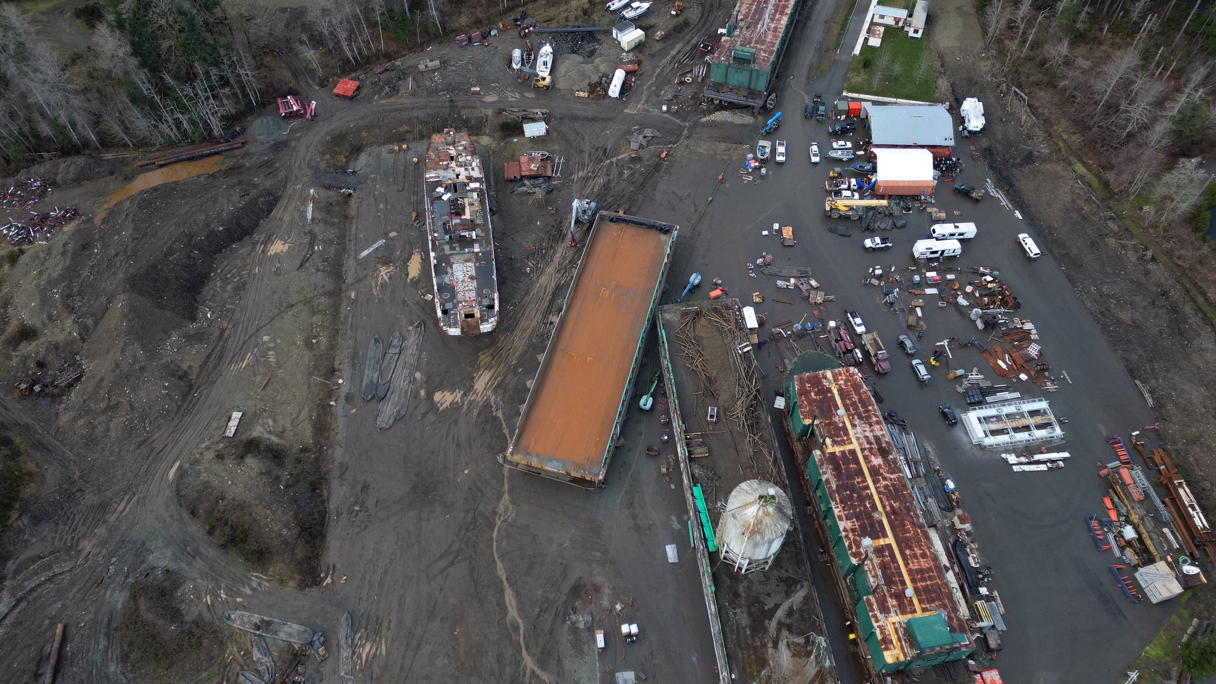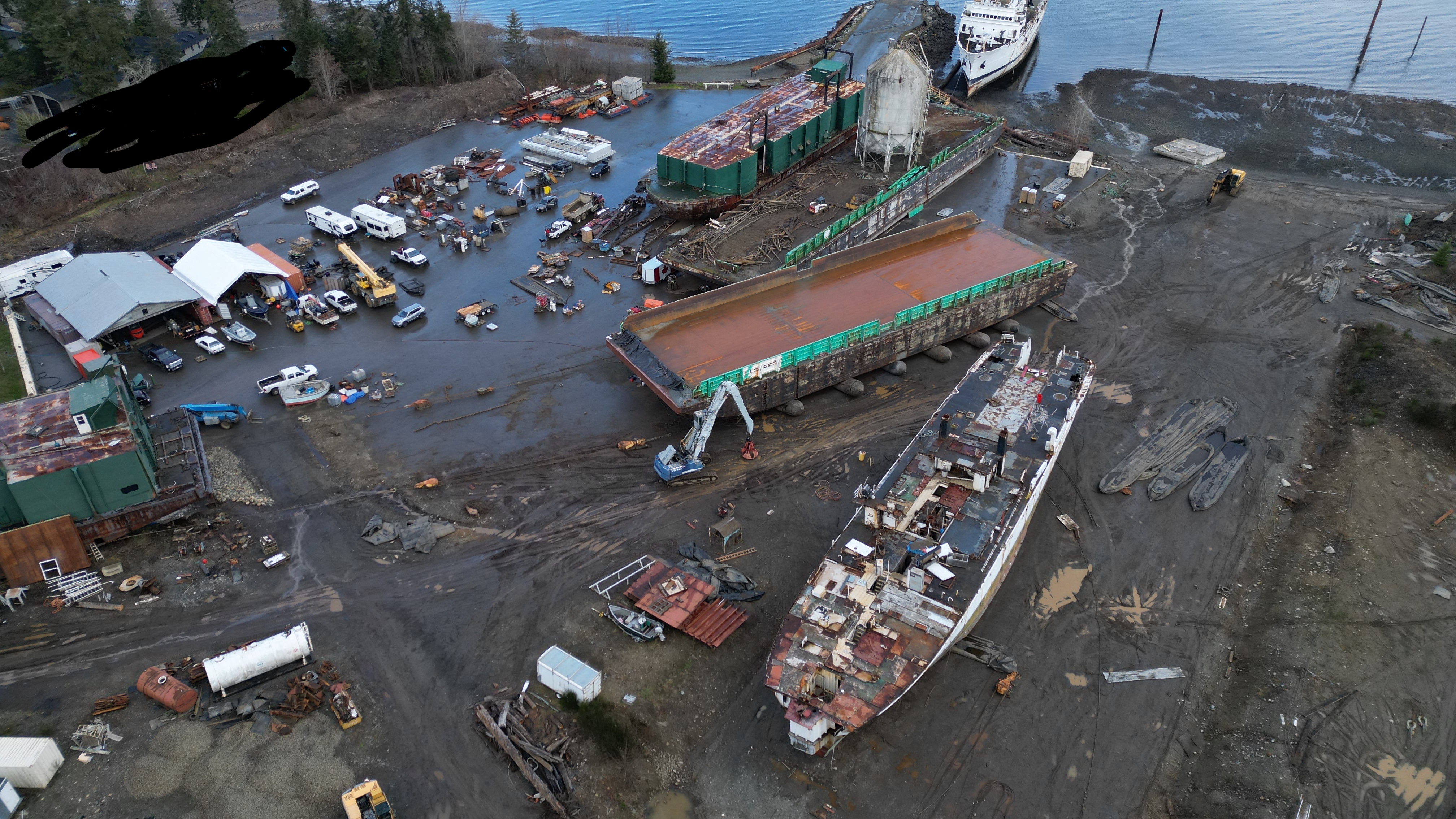 They’ve started priming the barge Dynamic Steel Repair is working on. Gee, do you think they’ll put anything in place to prevent paint, etc. from reaching the soil when they start priming the side of the barge straddling the asphalt and soil?