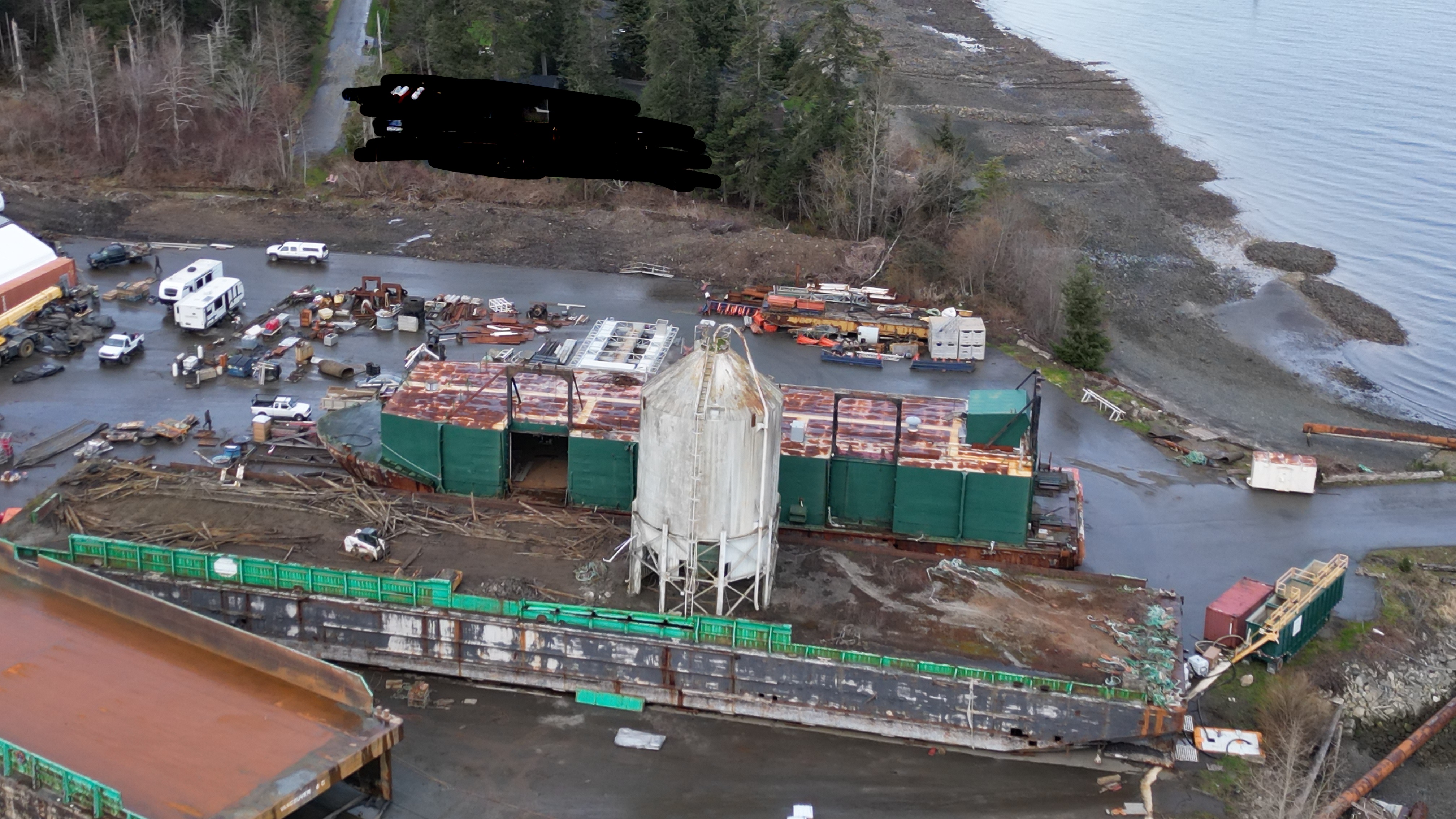 They’re dumping the concrete and debris from the barge with the silo – visible in the beginning of the video.
