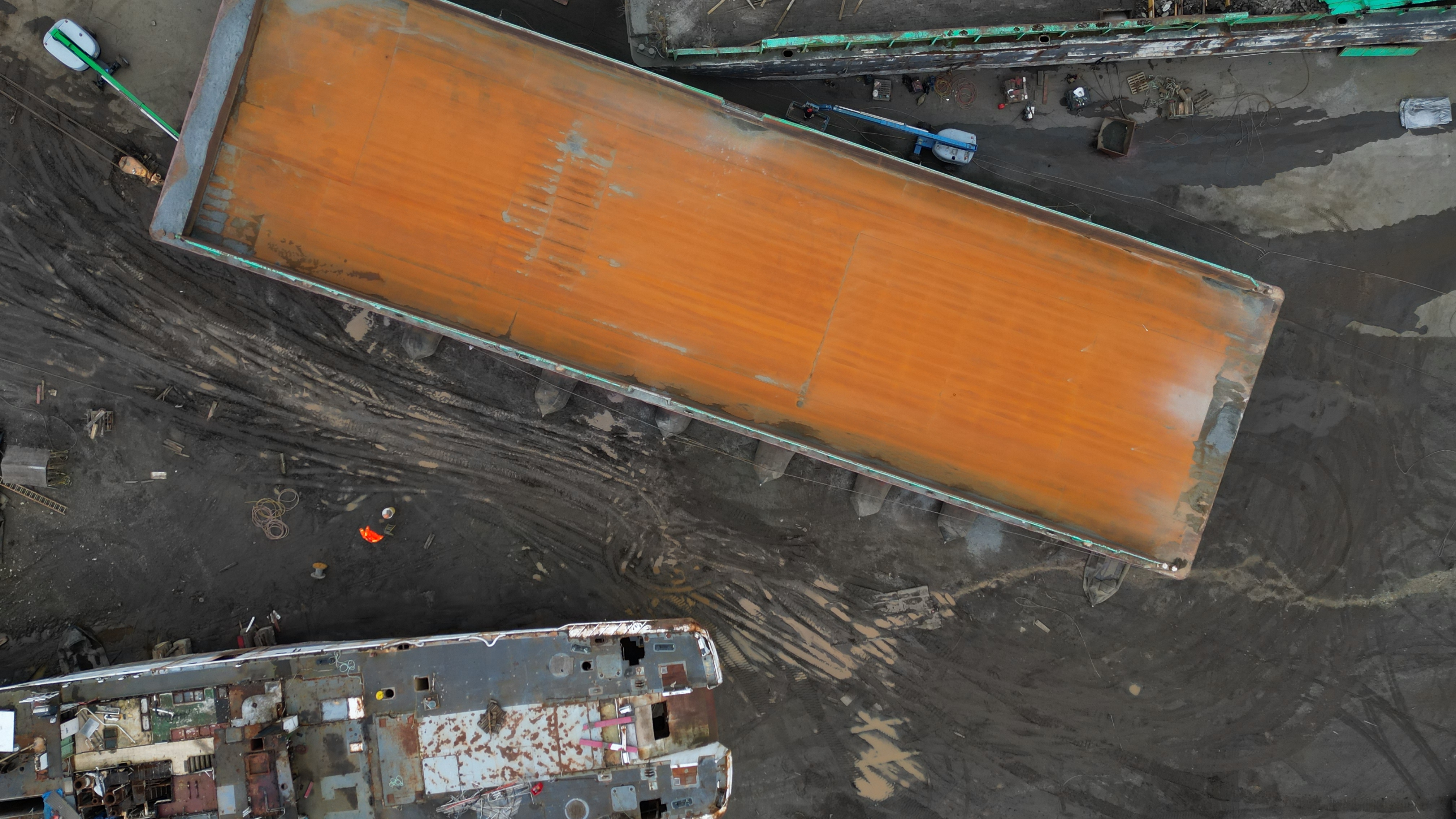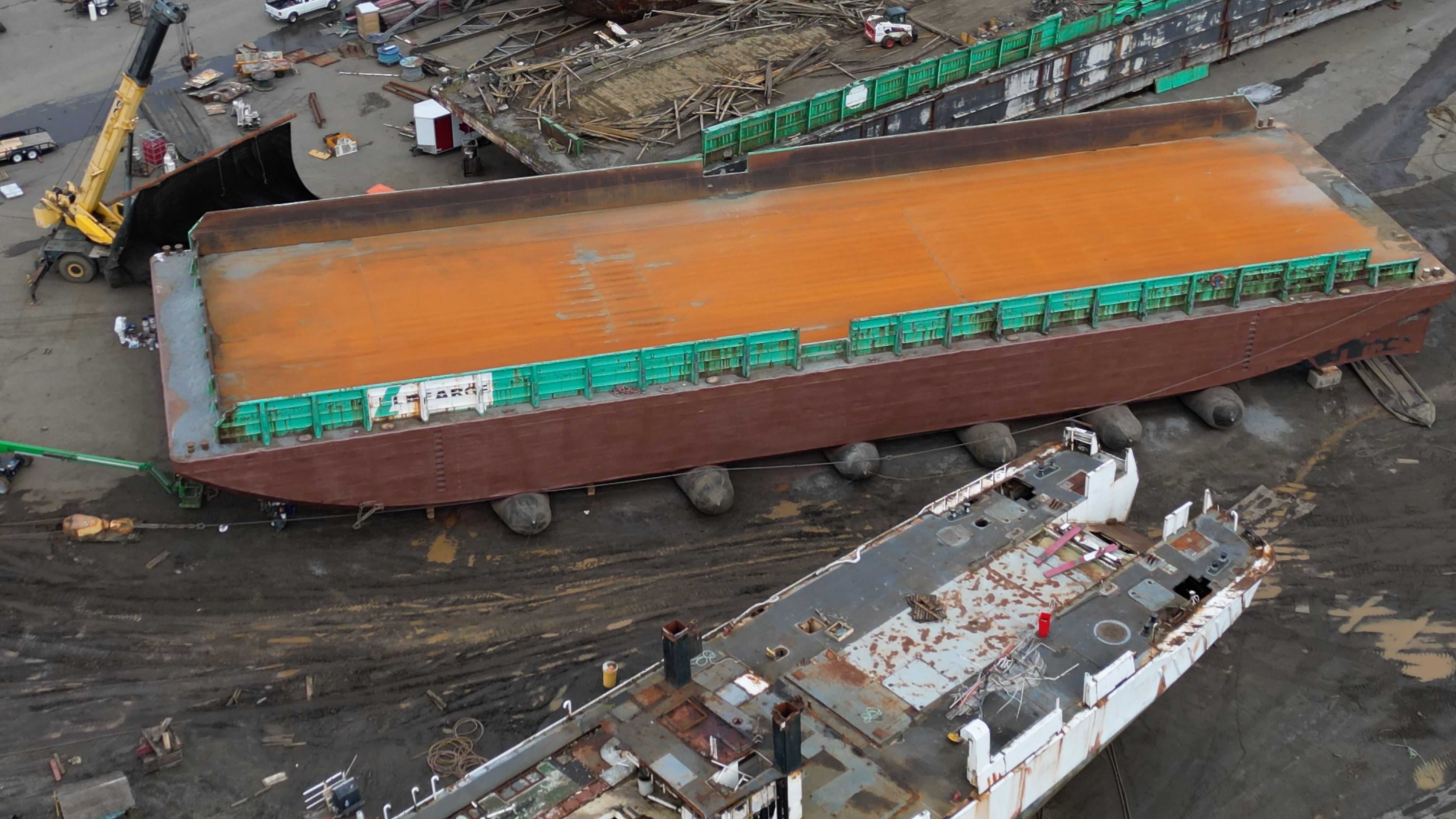 I guess it’s okay to apply primer and paint on this barge straddling the edge where asphalt ends and soil begins.