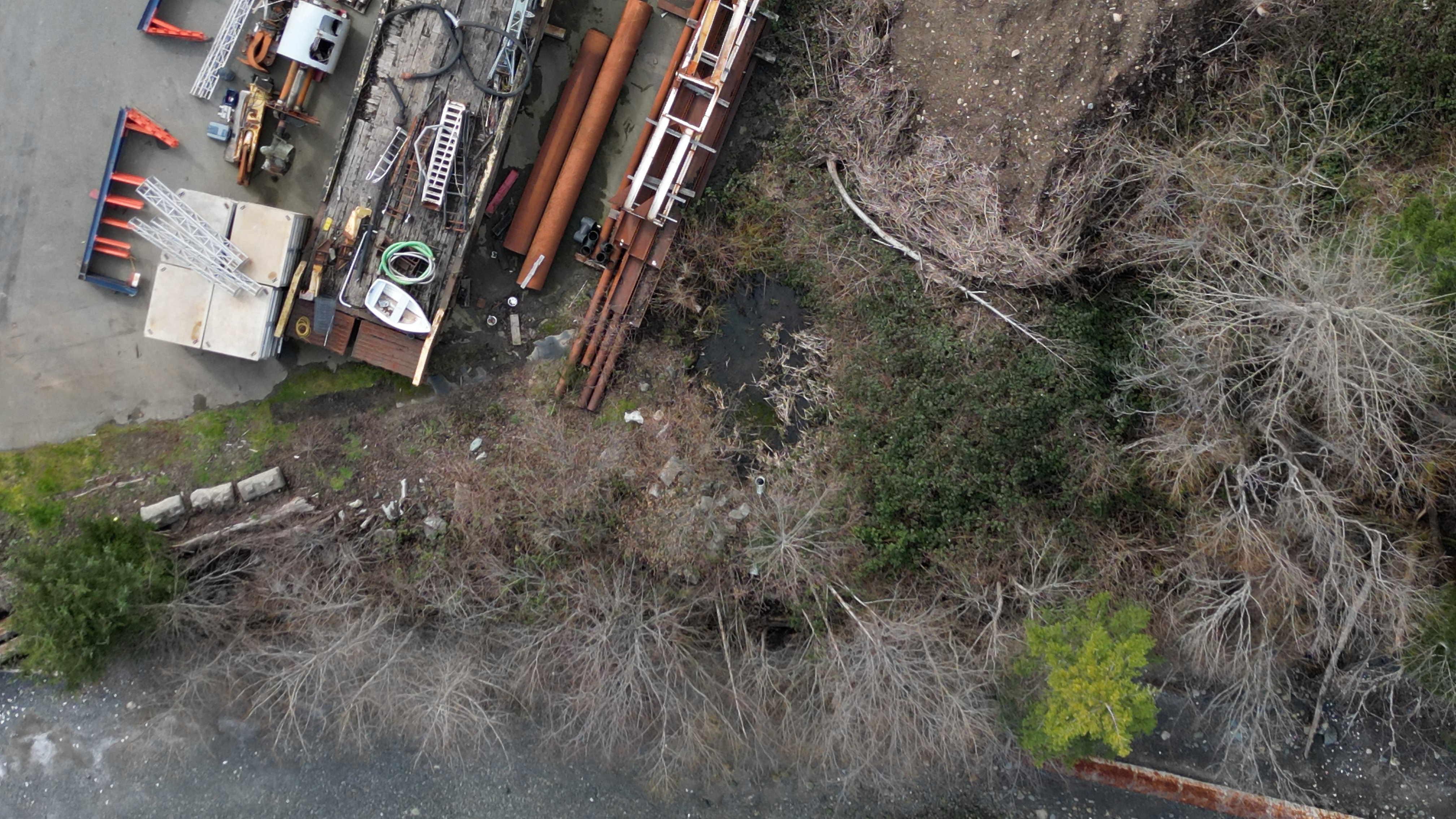 I guess it’s okay to apply primer and paint on this barge straddling the edge where asphalt ends and soil begins.