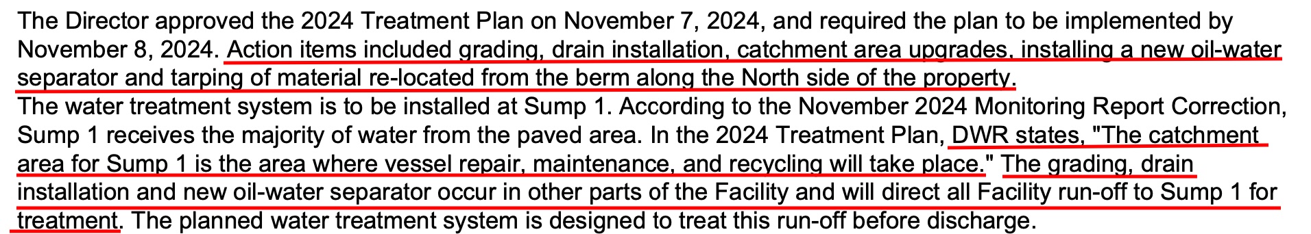 The catchment area for Sump 1 is the area where vessel repair, maintenance and recycling will take place.