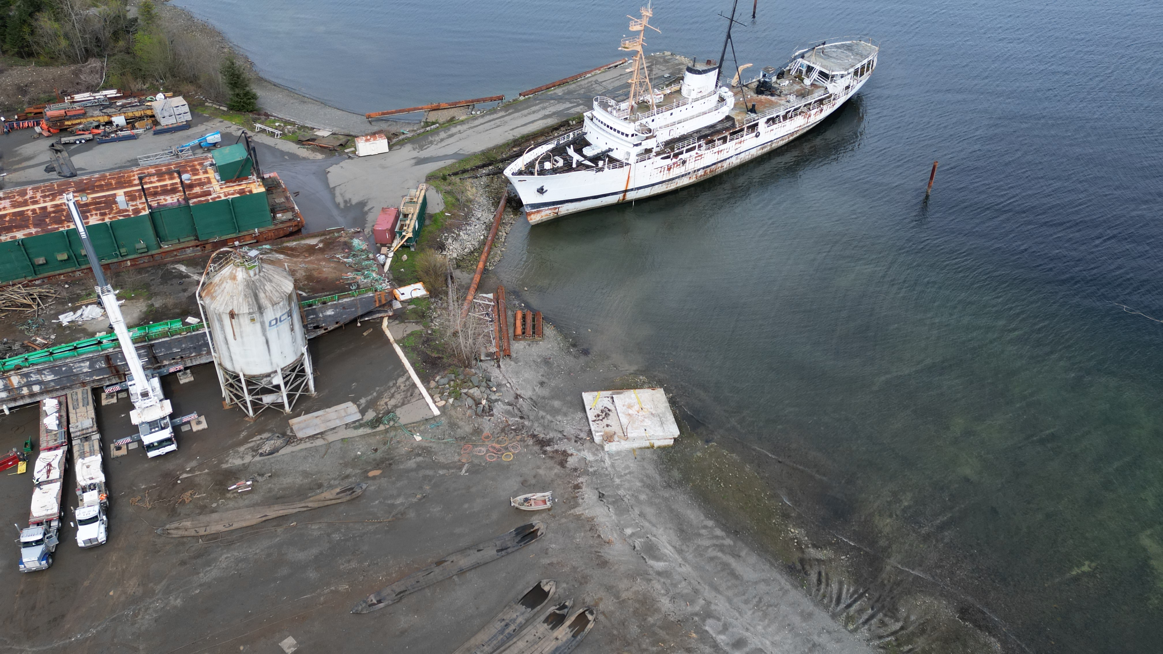 Area A Director, Convicted felon Robert Bohn Sr., CVRD, Deep Water Recovery LLC Union Bay, Deep Water Recovery Ship Breaking in Union Bay, Government, Prov. NDP government, Thugs, Union Bay Industries, Union Bay Ship Breaking Deep Water Recovery ship breaking managed to remove the silo from the rust bucket barge. Date: April 7, 2025Author: allthingsunionbay 0 Comments Wood from rust bucket barge that they didn’t manage to burn. Maybe will start burning in that spot again. Share this: Click to share on X (Opens in new window) X Click to email a link to a friend (Opens in new window) Email Click to share on Facebook (Opens in new window) Facebook Click to print (Opens in new window) Print Like Loading...